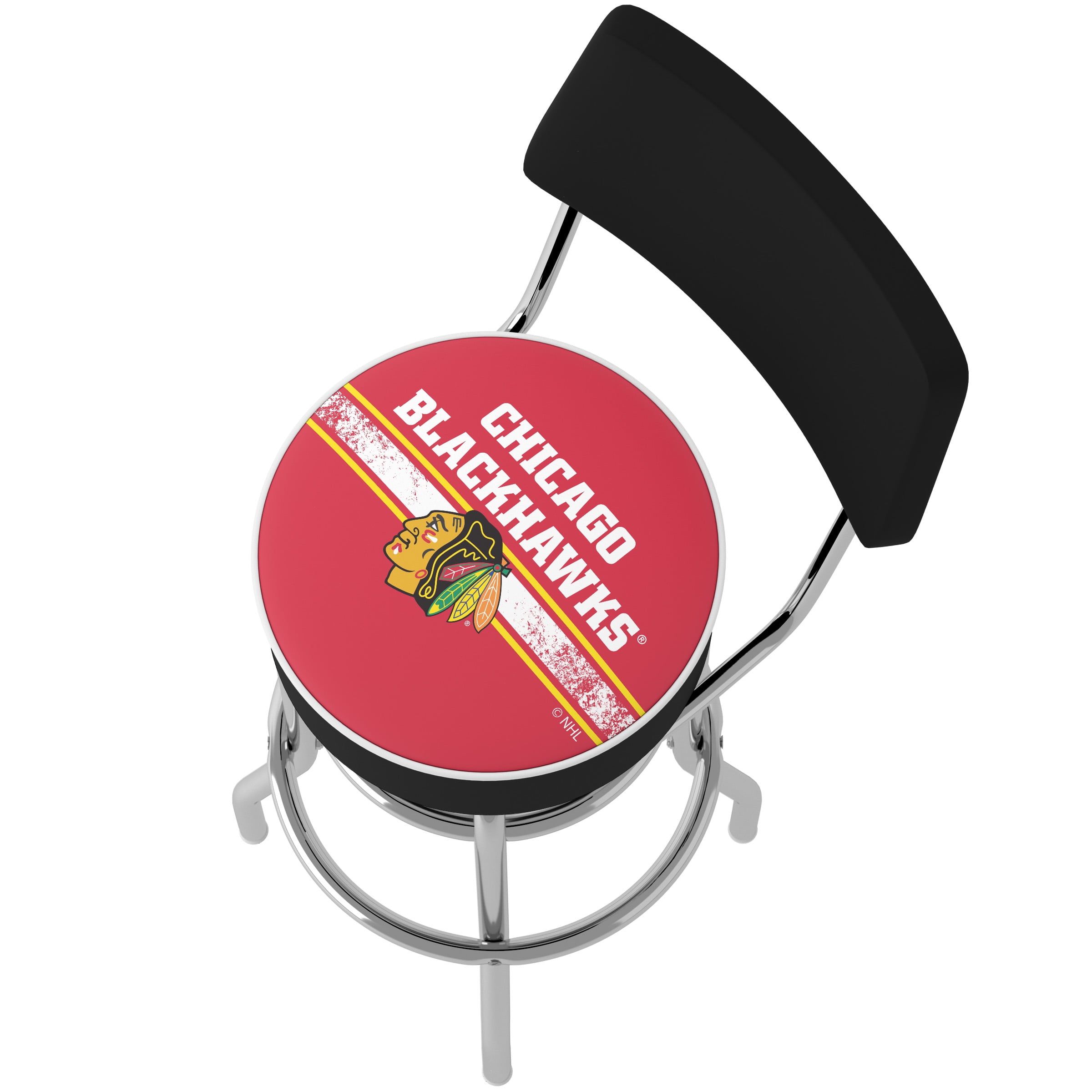 OFFICALLY LICENSED BARSTOOLS – The bar stools with back are sure to bring style to any basement, garage, or man cave with the officially licensed Chicago Blackhawks logo. FOAM PADDED SEAT – The counter stool is equipped with plush foam padding, while the marine grade vinyl sides and quarter inch vinyl beaded top provide added durability. REINFORCED LEGS – The base of the garage stool is constructed from tubular steel with chrome double rung reinforced legs, making this industrial bar stool both lightweight and supportive. 360-DEGREE SWIVEL – The workbench stool features a 360-degree swivel rotation for added versatility and will make an excellent addition to any area of your home or bar. MATERIALS – Chrome Plated Steel, Marine Grade Vinyl, and Foam Padding. DIMENSIONS – (L) 20″ x (W) 20″ x (H) 41.75″; Seat: (L) 14″ x (W) 14″ x (H) 5″; Back Rest: (L) 16.75″ x (W) 2″ x (H) 8.5″; Vinyl Beading: 0.25″.