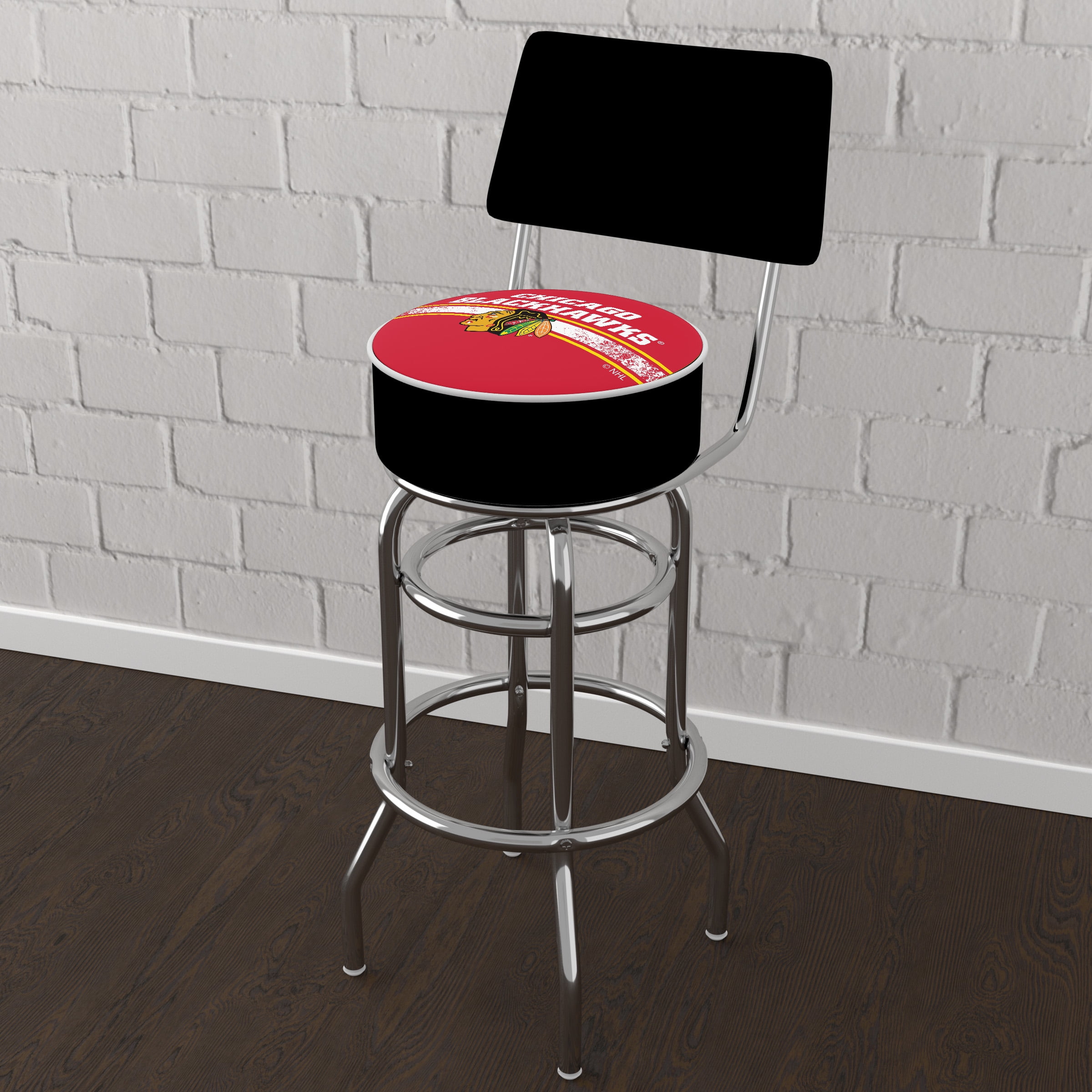 Trademark Gameroom Chicago Blackhawks Logo Bar Stool with Back Rest