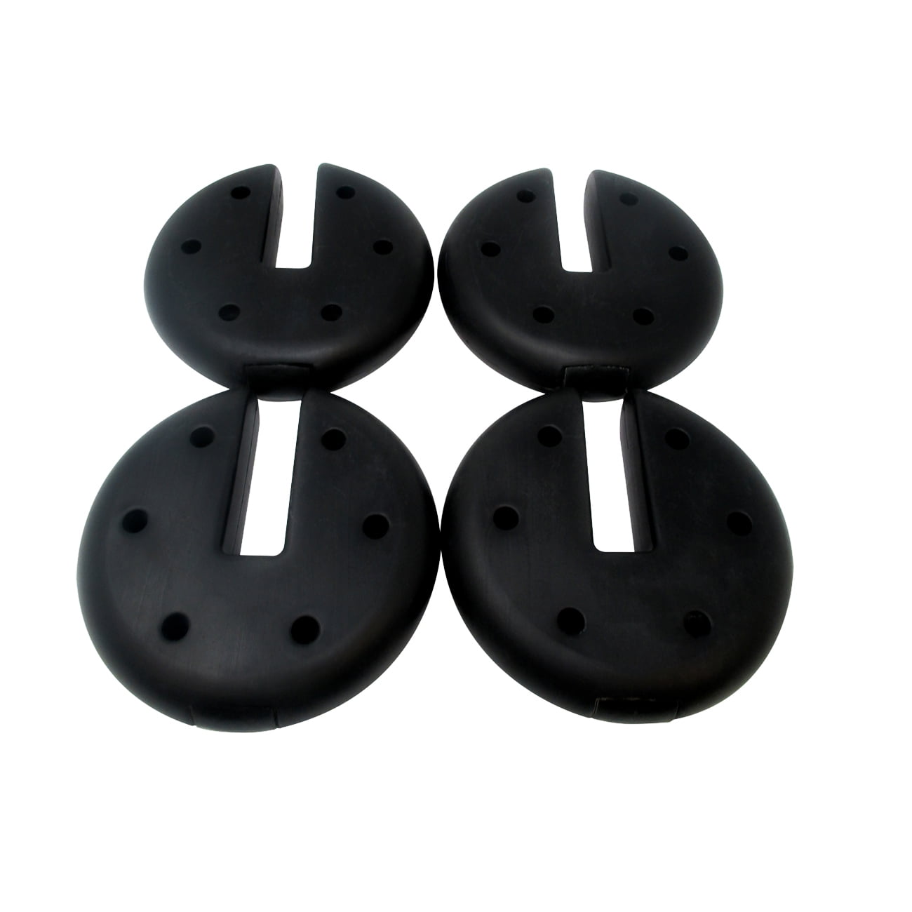 The set includes 4 weights each weighing 5lbs. With a diameter of 7.8″ each Each weight is filled with cement and the weights can be stacked for maximum stability Designed to fit canopy poles approximately 1 1/4″ wide We recommend securing each leg with at least 10lbs. Or 2 weights depending on how windy the weather By Trademark Innovations