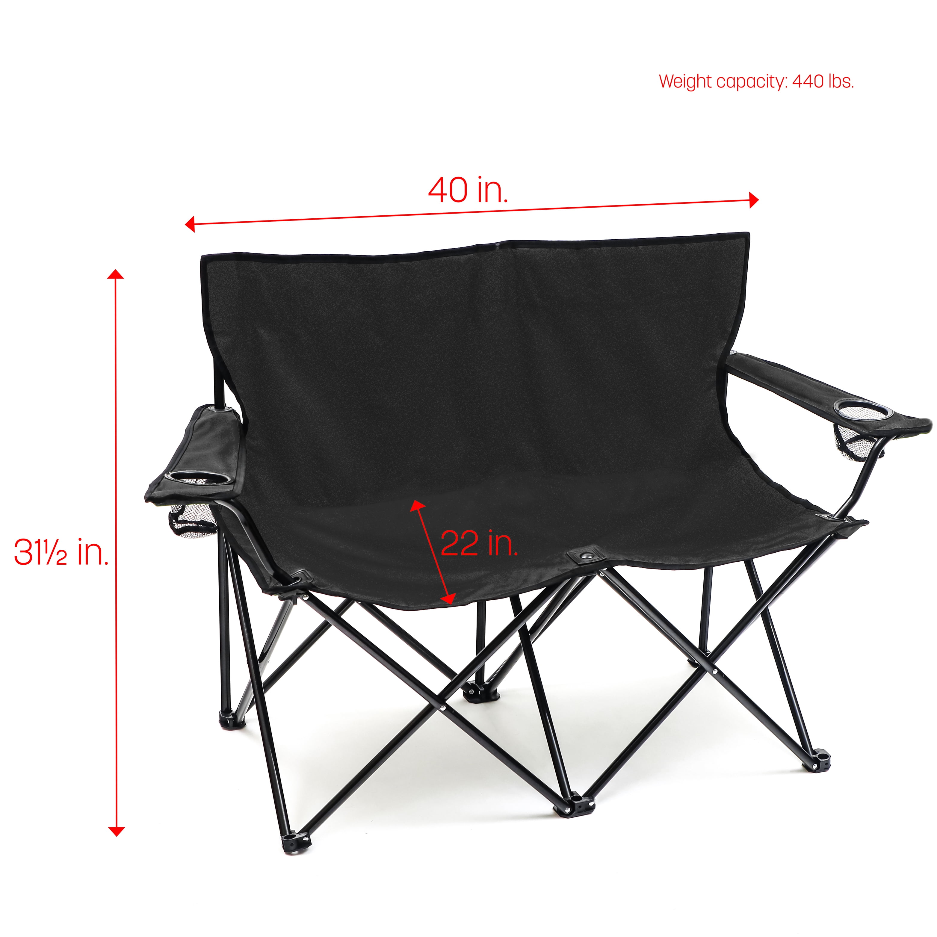 Steel Frame Measures 40″L x 22″W x 31.5″ overall height 440lb. Weight Capacity Polyester Fabric Seat and Back