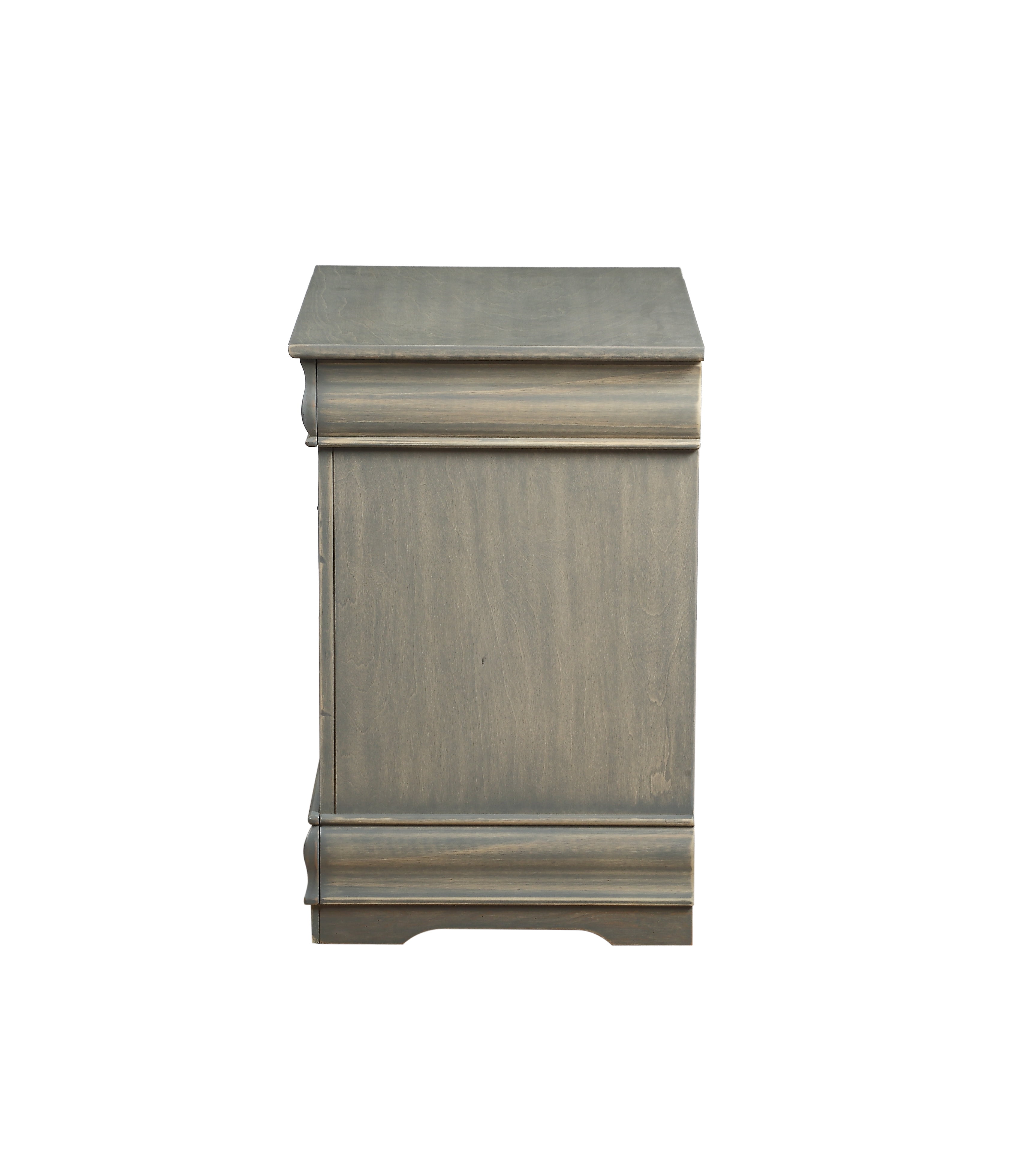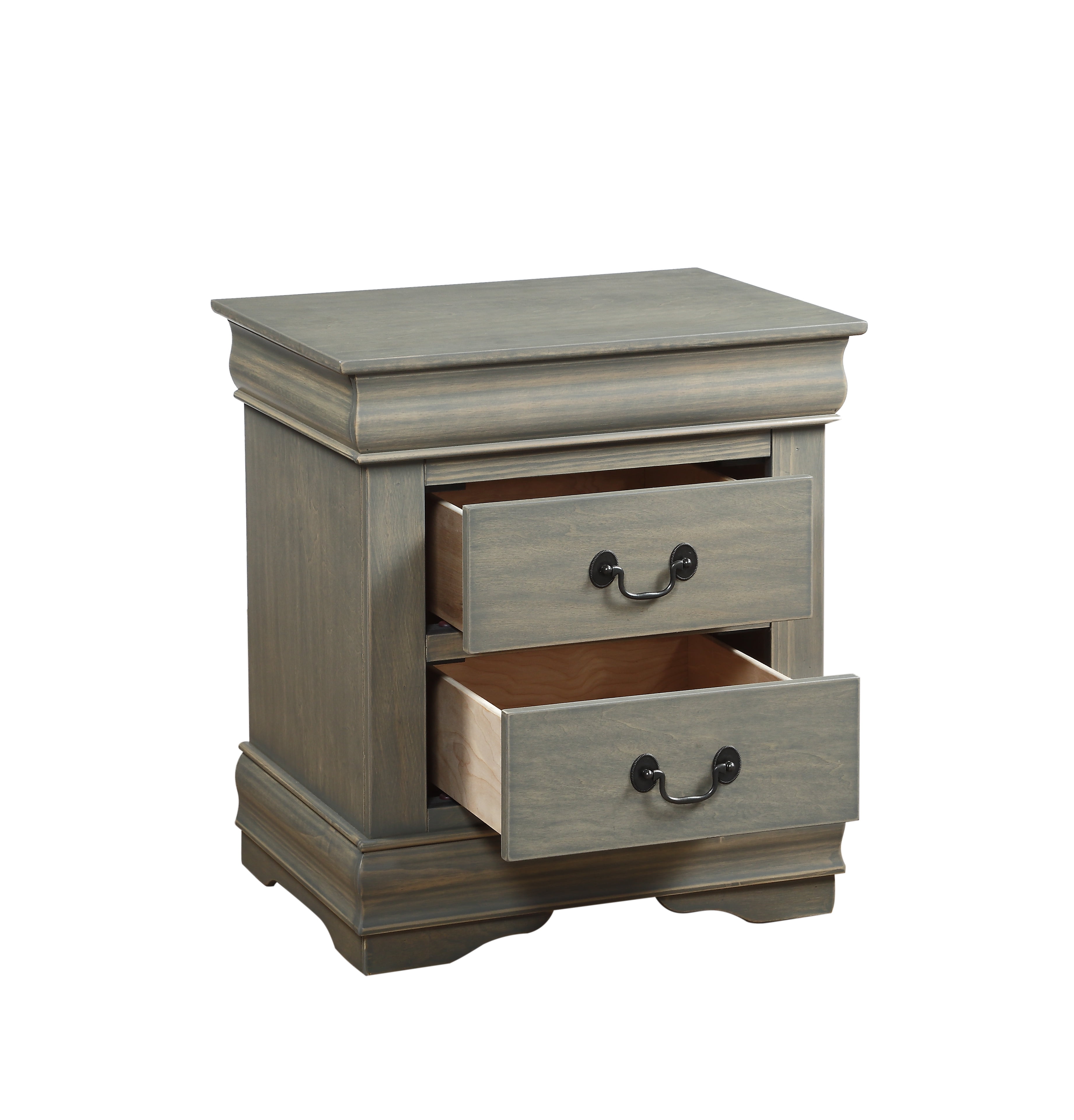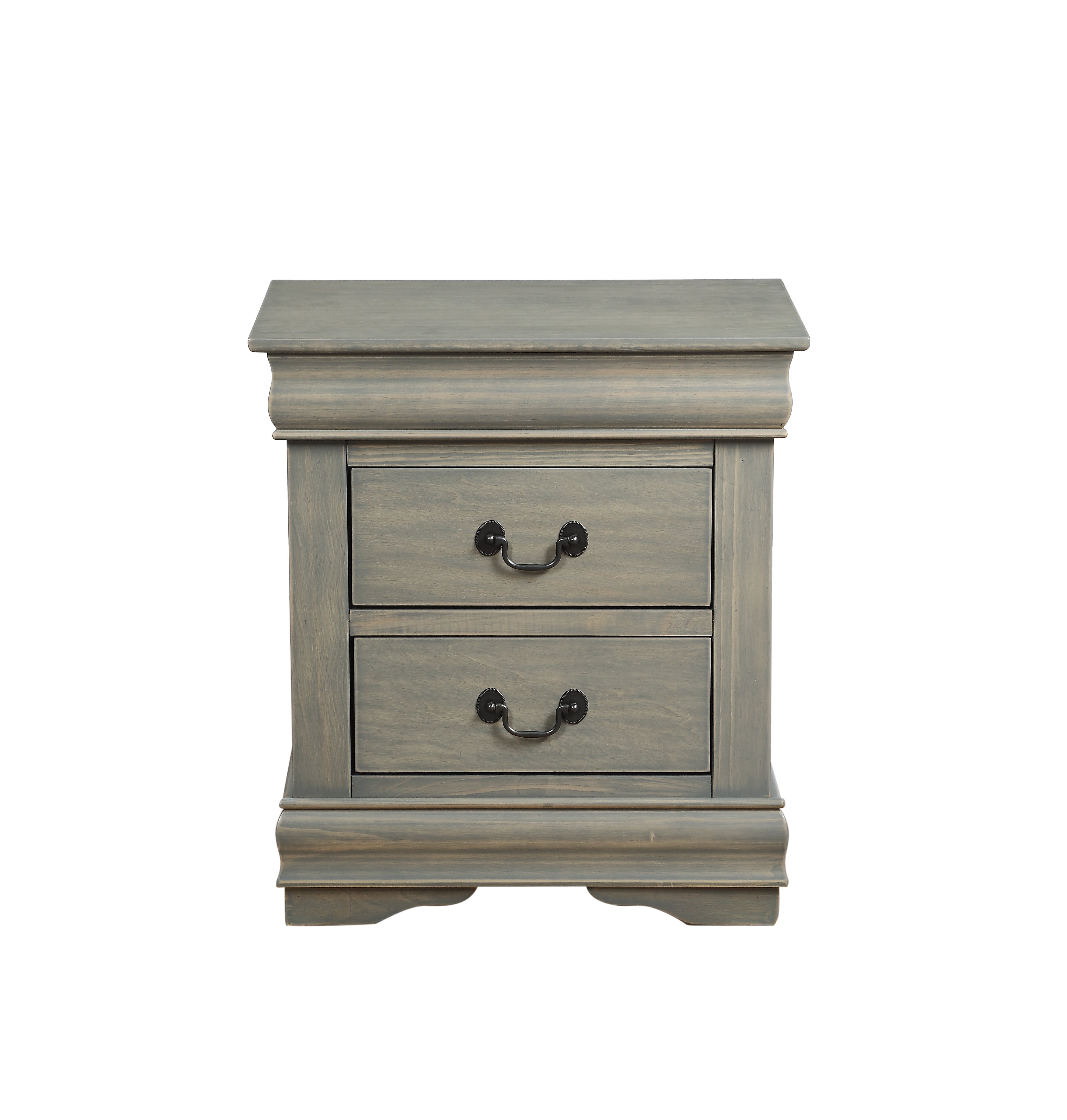Traditional Wood Nightstand, 2 Drawers, Antique Gray- Saltoro Sherpi Accent a neutral ensemble or tie together a carefully coordinated look with this 2-drawer nightstand, featuring decorative molding for classic appeal. It features two drawers with brushed nickel metal handle and finished in antique gray color. It is rich and timeless, reminiscent perhaps of furniture handed down through the generations, yet stylishly interpreted for todays homes. SPECIFICATION:- One Nightstand Only Can be used it for storing as well display purposes Two spacious drawers Wooden construction with antique gray finish