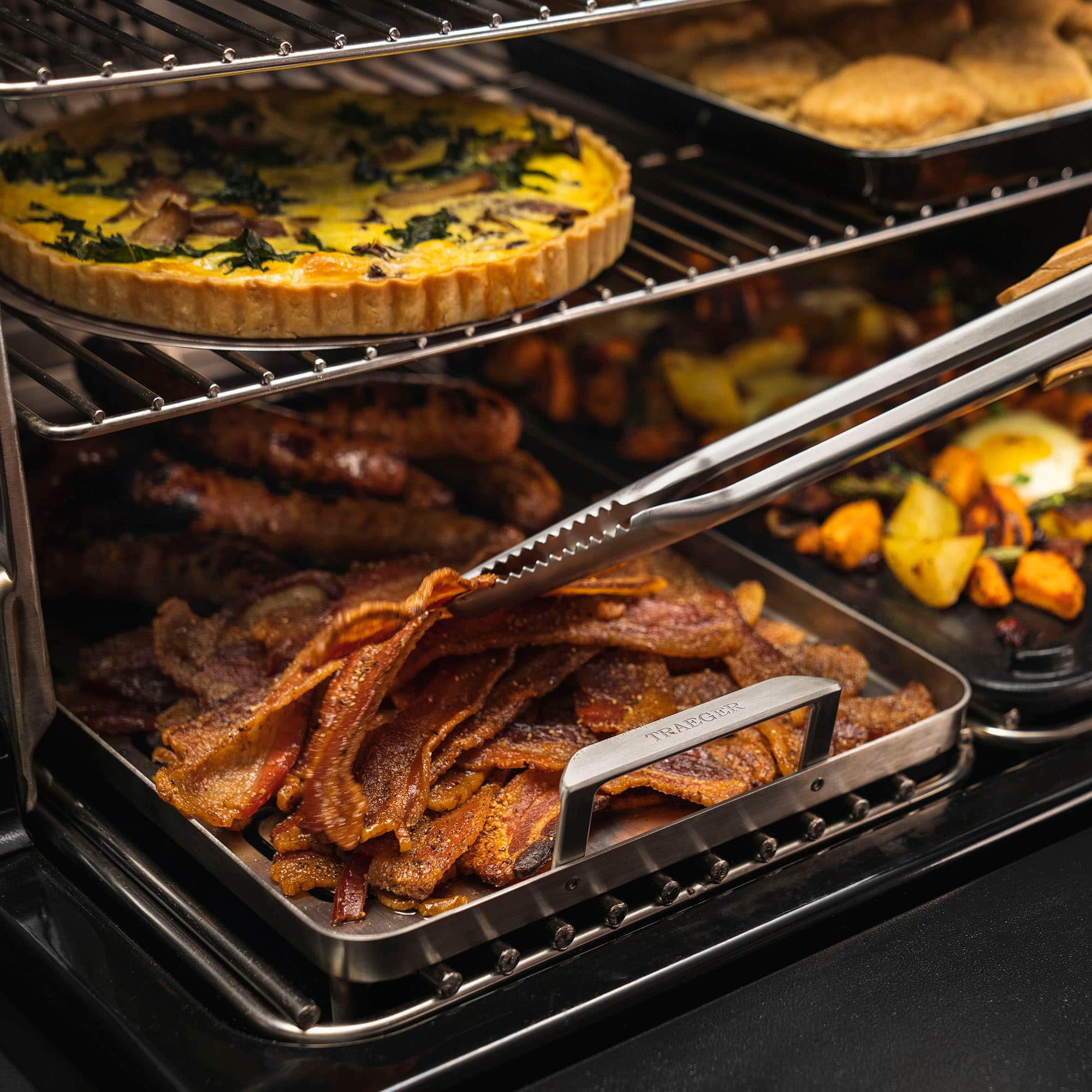 Prevent small food items such as shrimp, veggies, meatballs, and more from falling through grill grates with the Traeger ModiFIRE® Fish & Veggie Stainless Steel Grill Tray. It sits directly on the grates of Traeger wood pellet grills for convenience, and it’s made with stainless steel to prevent corrosion and allow easy cleaning. ModiFIRE accessories can be added or removed in seconds, letting you quickly change the cooking surface on your grill without needing to remove the grate.