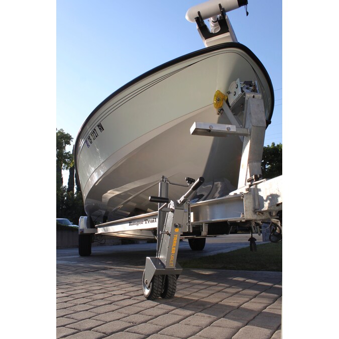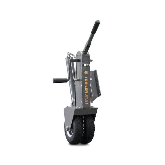 The Trailer Valet 5X is a trailer dolly system with a built-in heavy duty jack to make hitching and maneuvering your trailer much easier. The 5X has a towing capacity of 5,000lbs (tongue weight of 500lbs) and is rated on a flat, even surface. The Trailer Valet 5X hooks up to a standard trailer frame via a mounting bracket (included) that allows users to swivel and stow the 5X when it’s not in use. After hookup, just flip the Trailer Valet 5X up to store it alongside your trailer frame. Then, swivel it back down for use when you arrive at your destination. Simply use the jack function to raise the trailer so you can unhitch, then lower the Trailer Valet 5X to get your trailer level and into position. Designed to stay in the best working order and last for years, the 5X will detach from the frame mount to keep it out of fresh and sea water when launching your marine vehicles. The Trailer Valet 5X is best used to move RV campers, cargo trailers, or boat trailers weighing up to 5,000lbs and works well when paired with the Trailer Valet wheel dollies, an accessory used to turn a dual-axle trailer into a single-axle trailer.