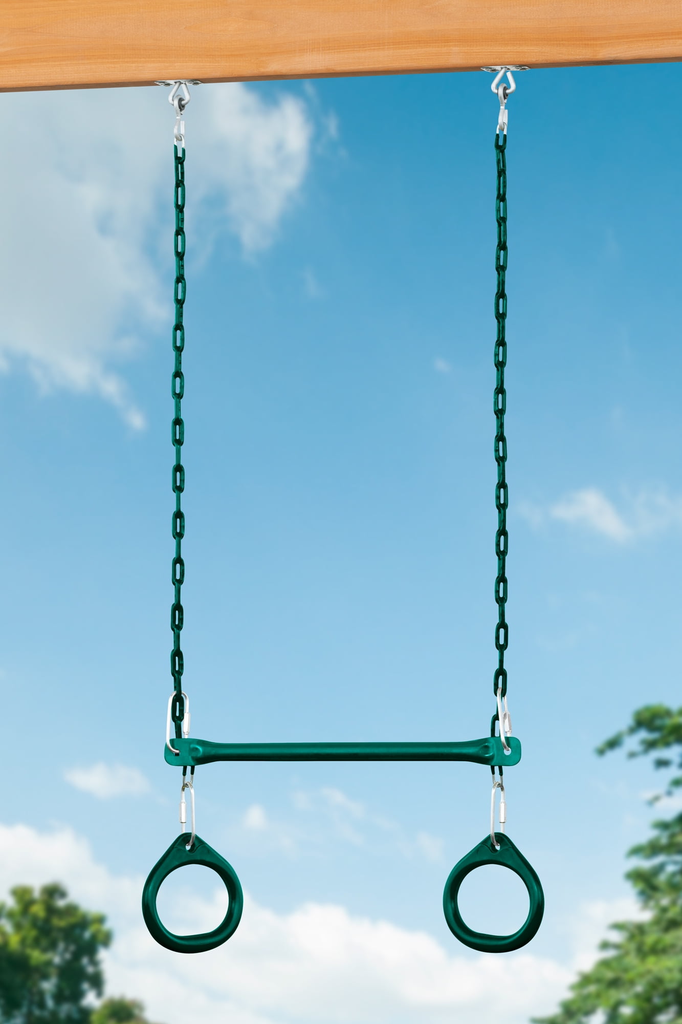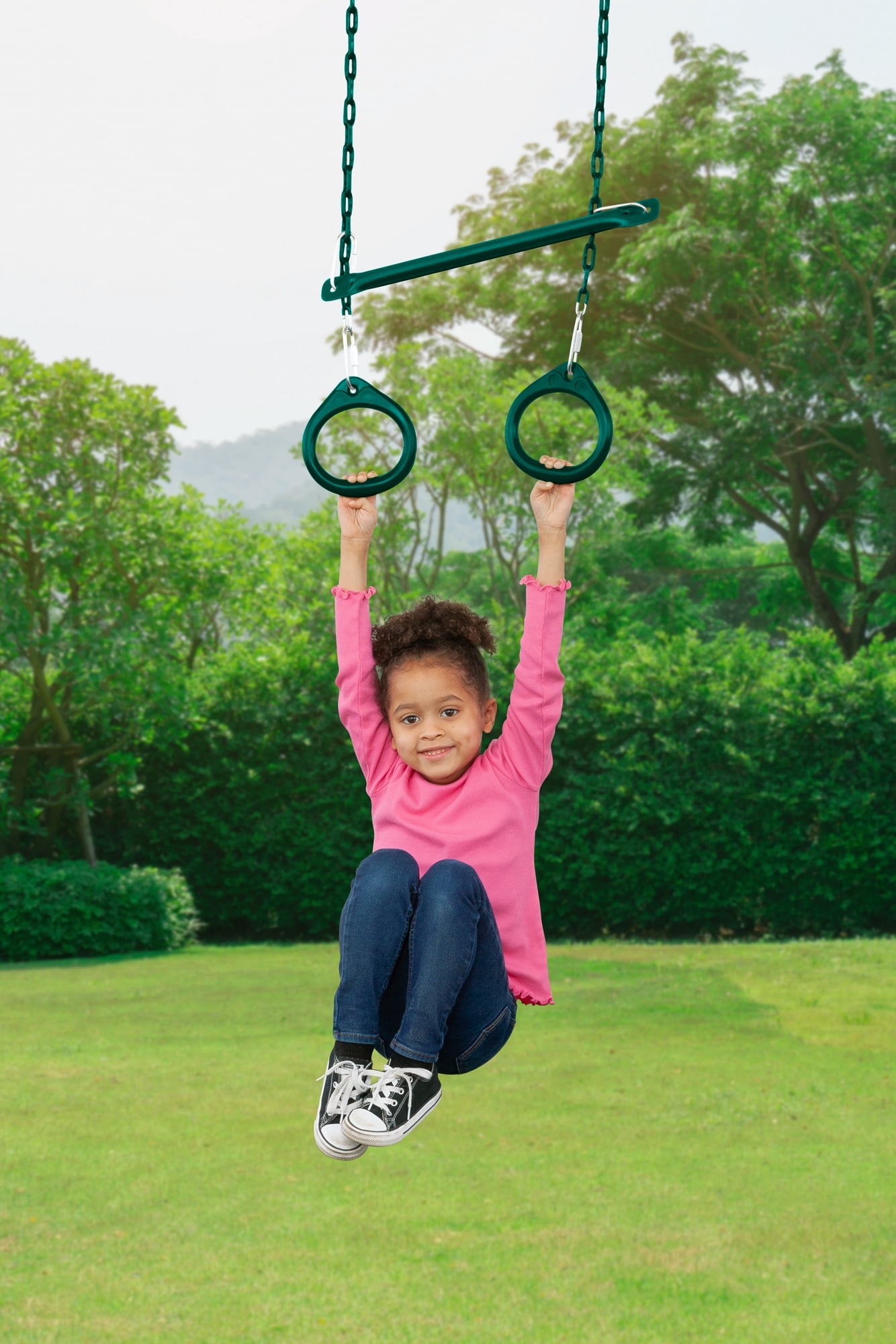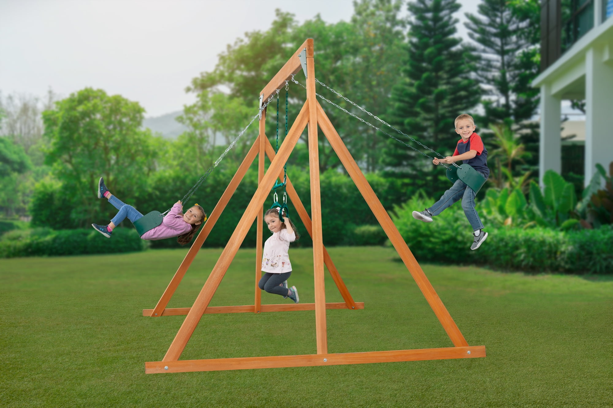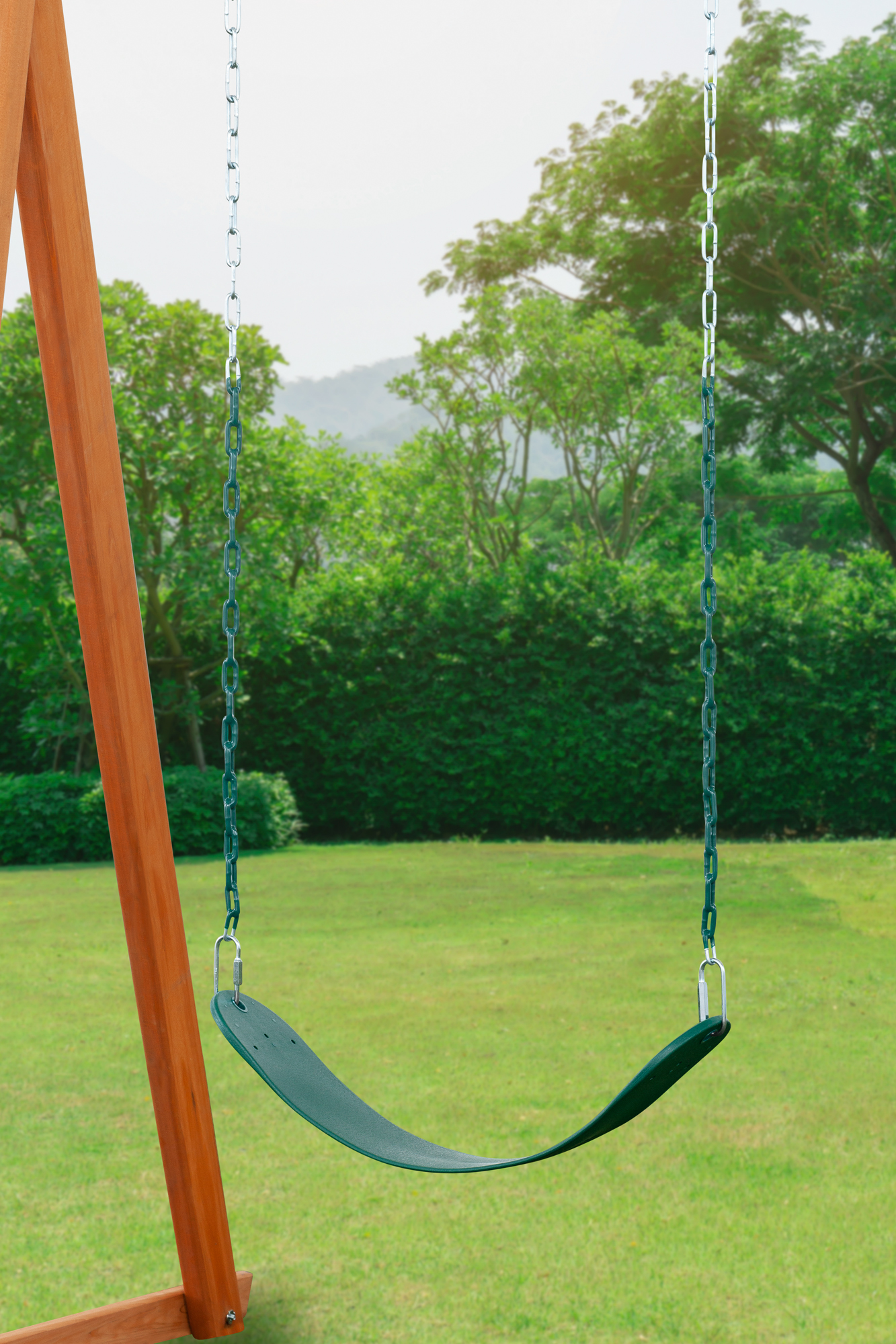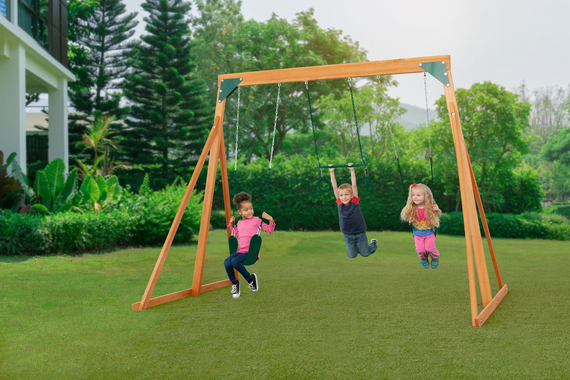 Offered in 7 color options, customize your backyard to blend into nature, customize to your favorite sports team’s colors, or indulge your child’s inner Princess and customize to all pink or purple! The Trailside Wooden Swingset can be easily setup in one afternoon. All wood, hardware, accessories, and instructions are included for assembly Easily unclip existing swings to replace with a baby swing, saucer swing, or other desired attachments