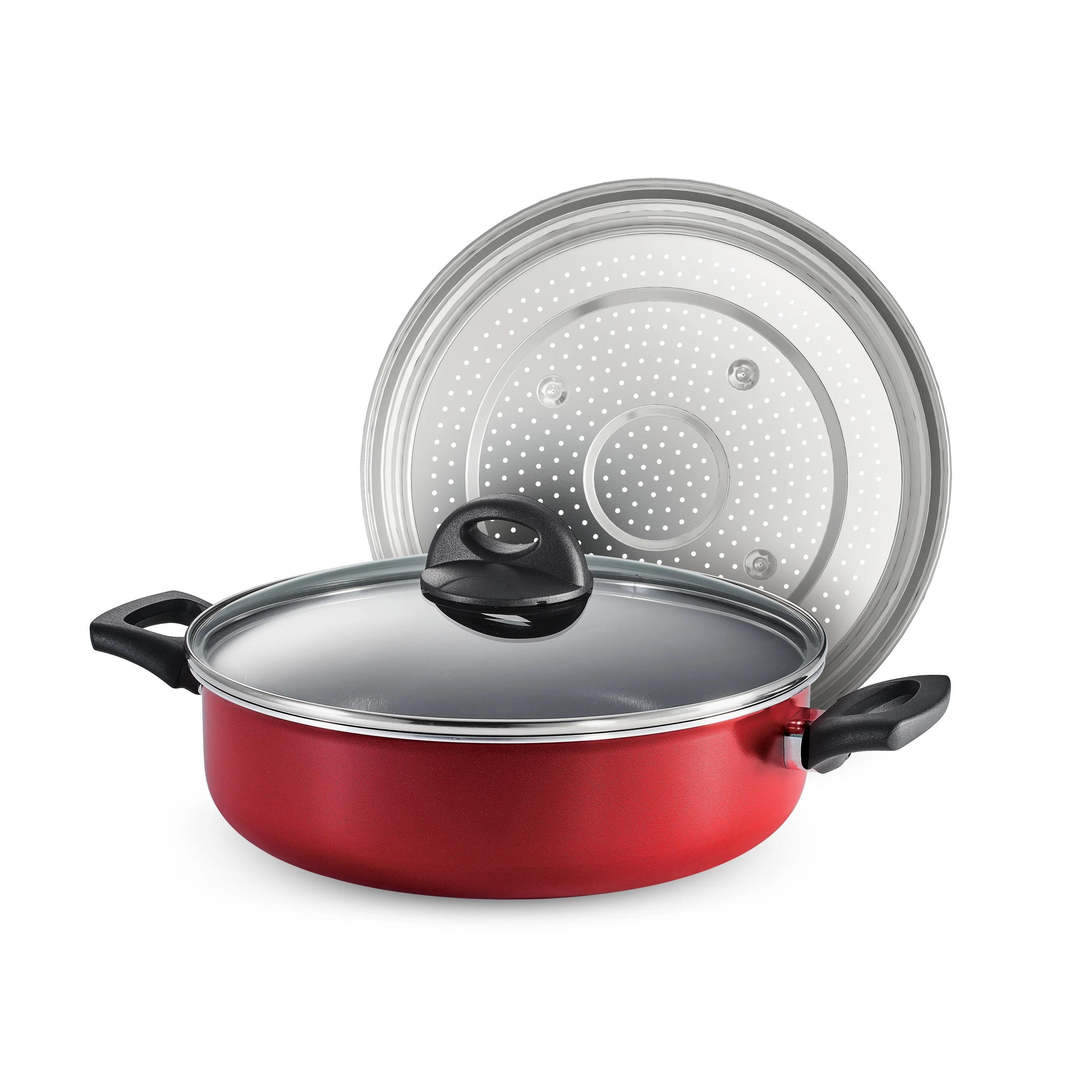 Tramontina 4-Quart Nonstick Everyday Pan with Steamer and Lid, Metallic Red, Dishwasher Safe