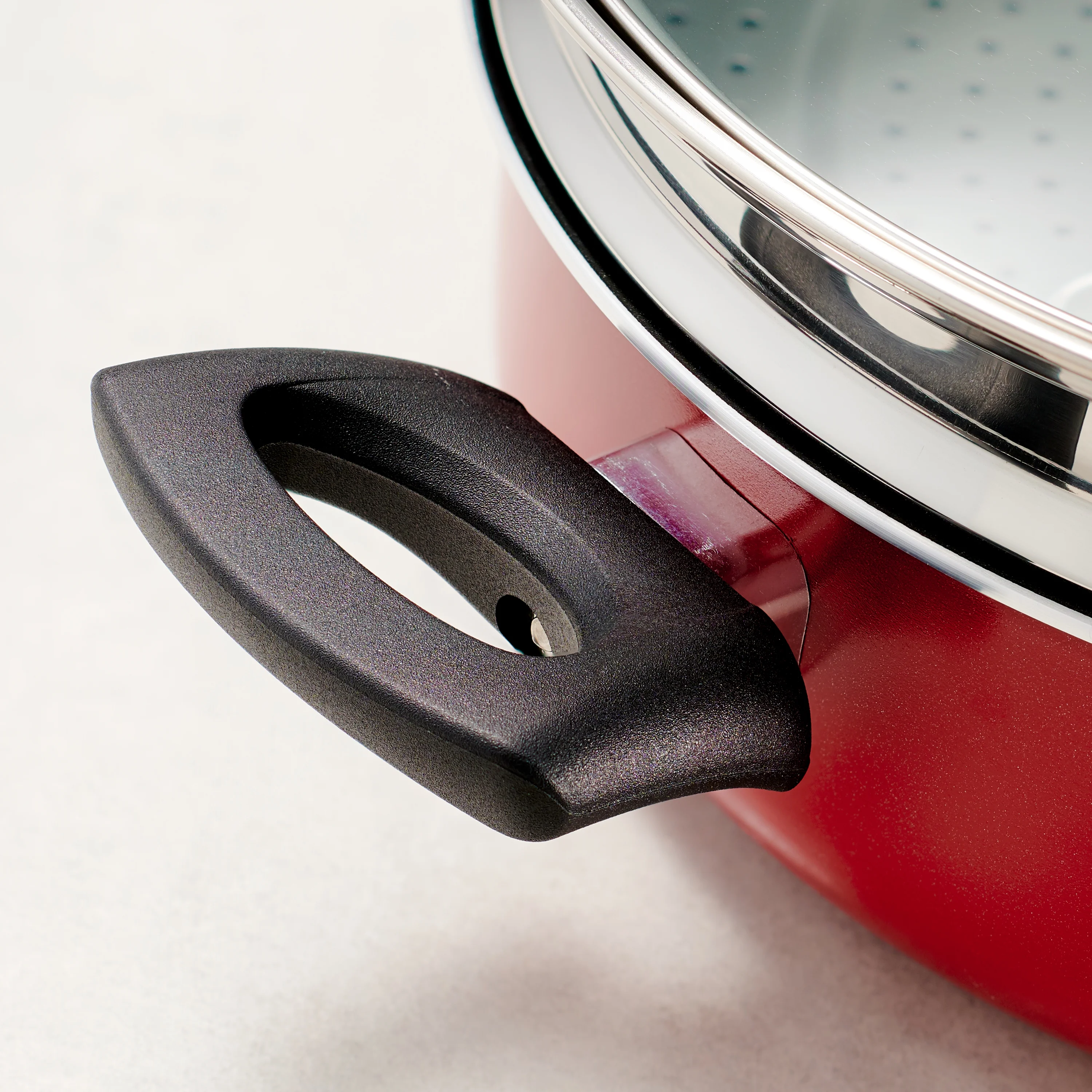 Aluminum construction Vibrant metallic red exterior finish Non Stick Cooking Surface: Porcelain enamel interior provides an easy-to-clean, nonstick surface that’s safe for all types of cooking. Stay-cool black bakelite handles Tempered glass lids Compatible with gas, electric and ceramic glass cooktops Dishwasher-safe 5-Year Limited Warranty