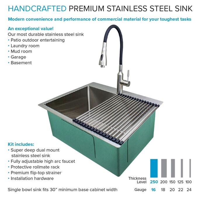 - Sink Gauge: 16