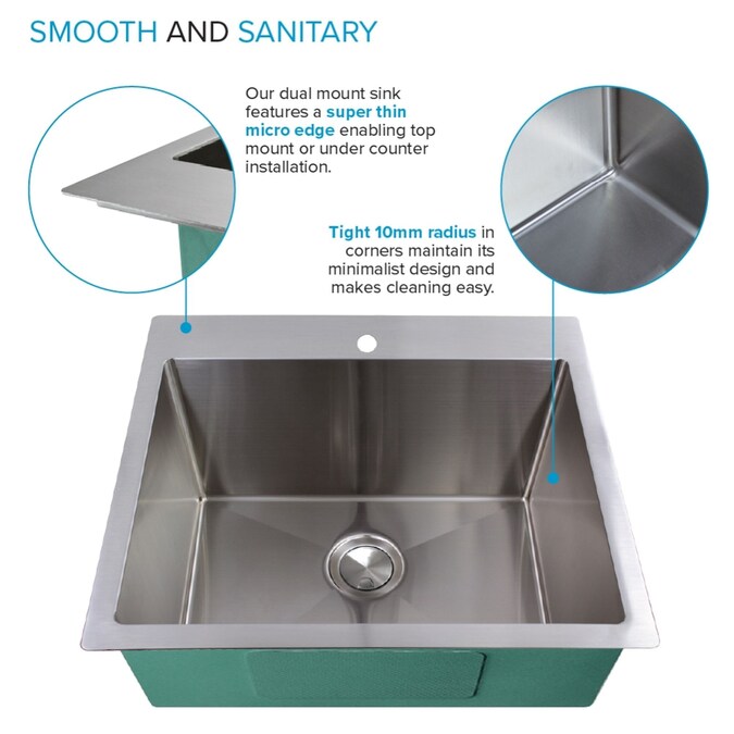 - VERSATILE INSTALLATION: Sink features a super thin micro edge which looks beautiful installed on the countertop (top-mount/drop-in) or can be installed under the counter (undermount)