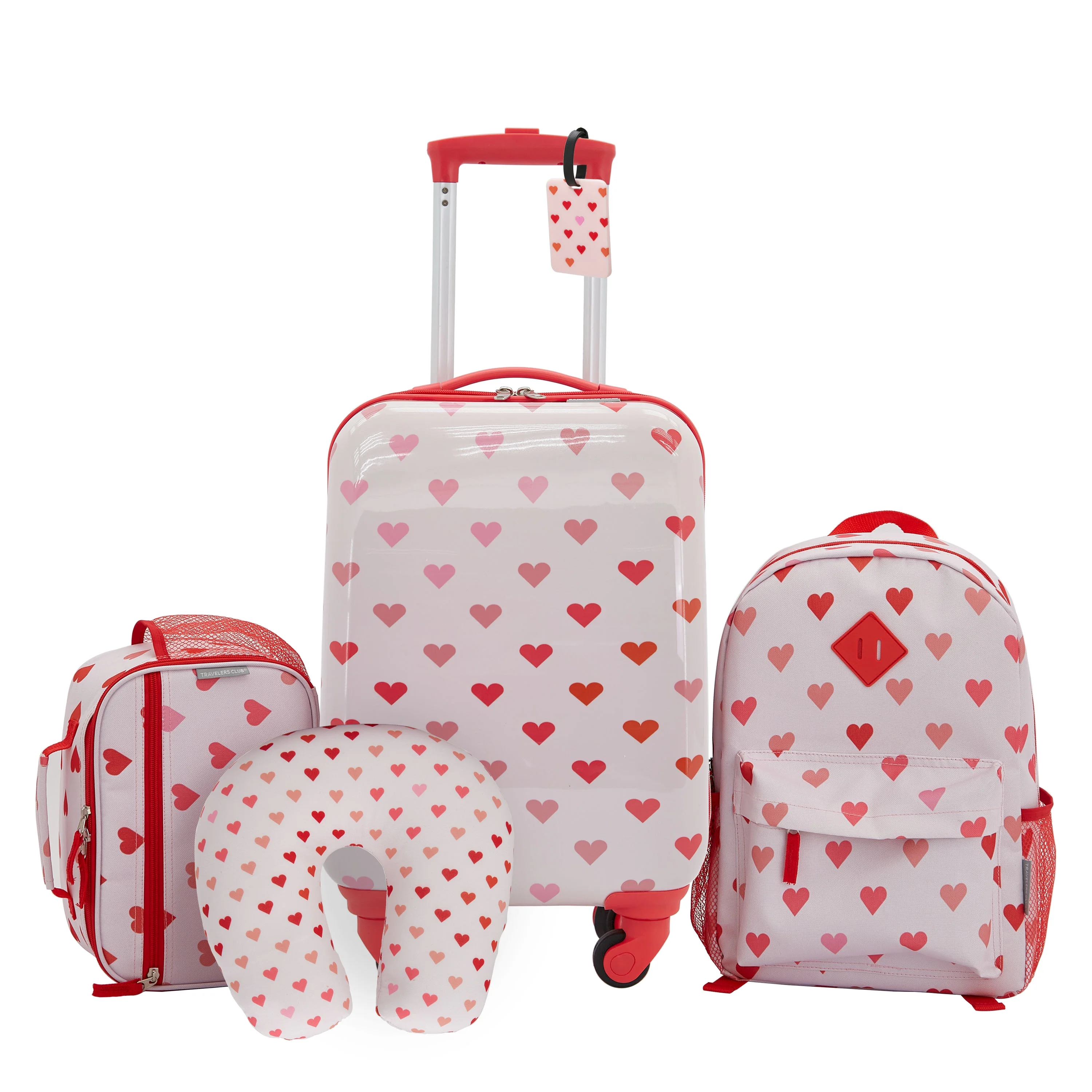 Travelers Club 5 Piece Kids Luggage Set with 360° 4-Wheel Spinner System, Heart
