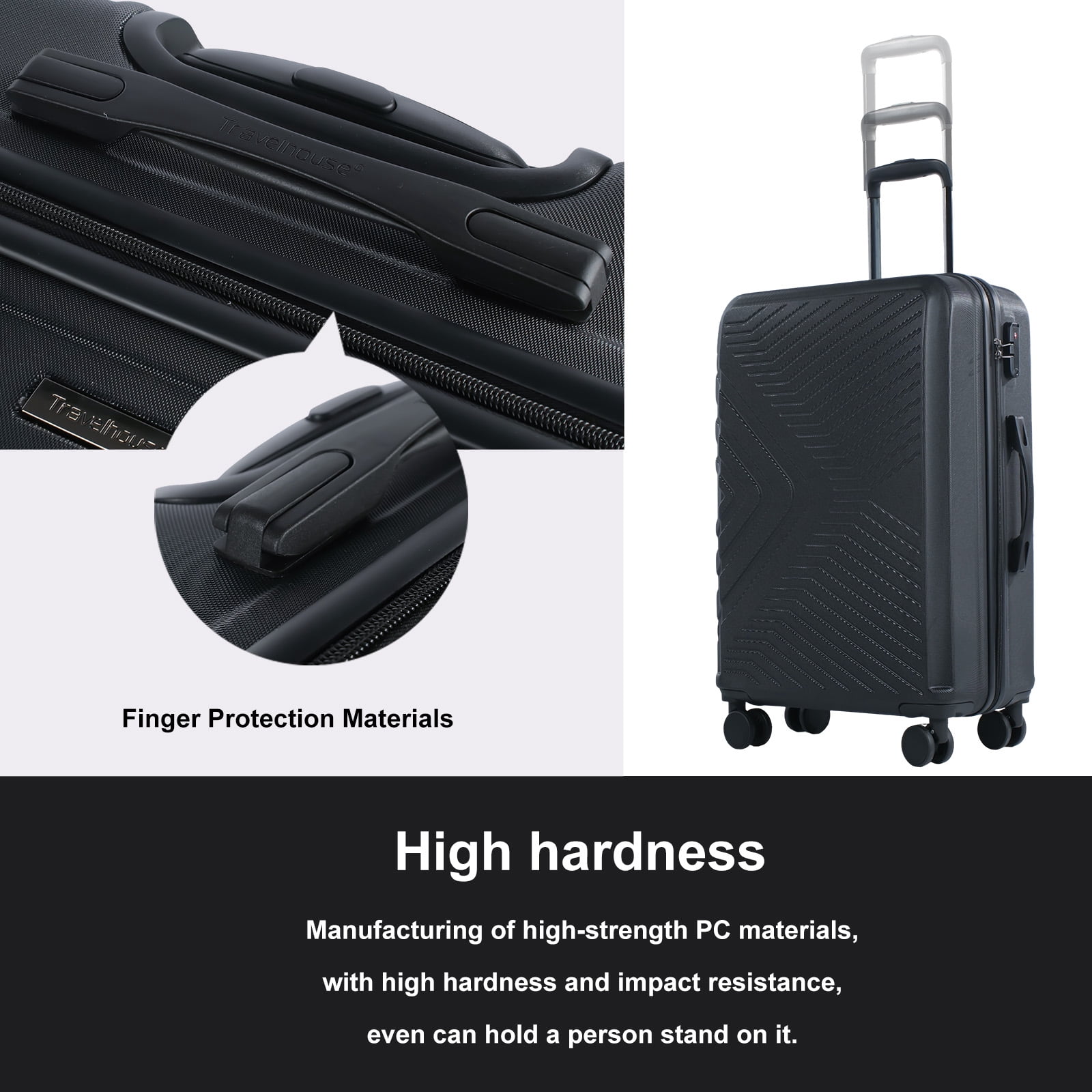 Travelhouse 3 Piece Hardshell Luggage Set Hardside Lightweight Suitcase with TSA Lock Spinner Wheels 20in24in28in.(Black)