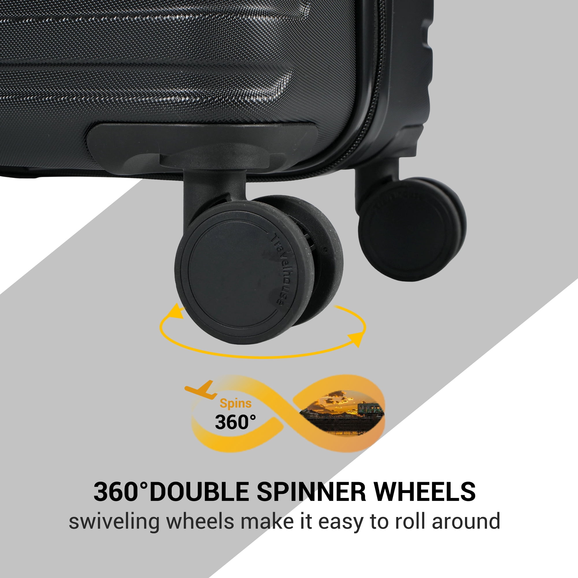 Travelhouse 5-Piece Hardside Luggage Set Spinner Lightweight Suitcase with TSA Lock & Duffel Bag,Black