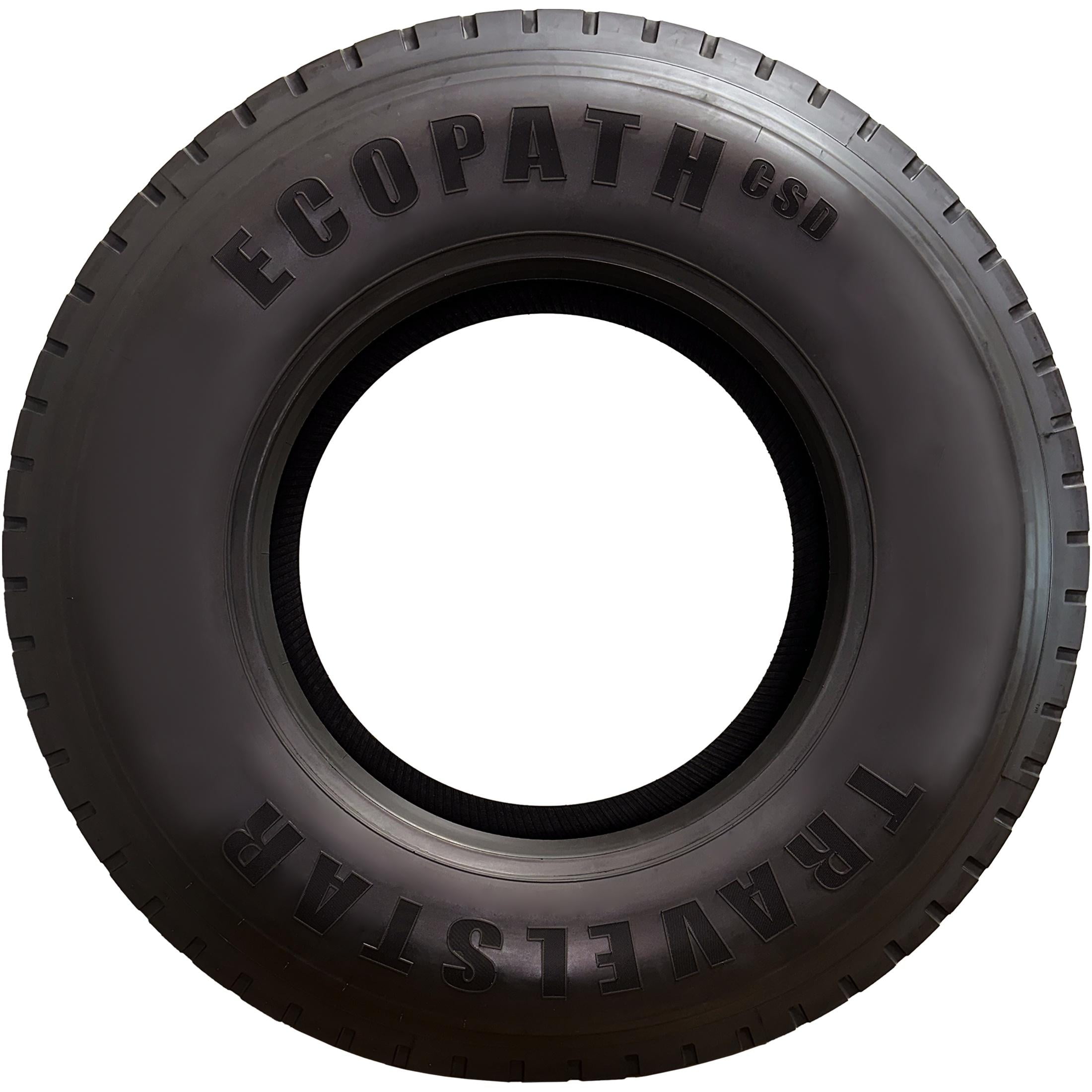 Travelstar ECOPATH CSD Close Shoulder Drive Position 285/75 R24.5 285/75R24.5 16 Ply 147/144L Load Range H Commercial Truck Tires Four belt construction for enhanced durability and retread ability Wide shoulders enhance stability and performance for even wear Optimized block design and stone ejectors prevent tread chunking Fuel efficient tread compound provides for greater cost savings Four zig-zag grooves enhances traction in both dry and wet conditions OVERVIEW Travelstar is a cost-effective tire brand renowned for its reliable performance and exceptional value. Our wide range of tires covers passenger cars, SUVs, light trucks, and trailers, offering excellent traction, durability, and a comfortable ride without compromising on quality. Manufactured by trusted overseas partners and supported by an extensive North American distribution network, Travelstar delivers modern technology at an affordable price, making it the ideal choice for customers seeking dependable, budget-friendly tires.