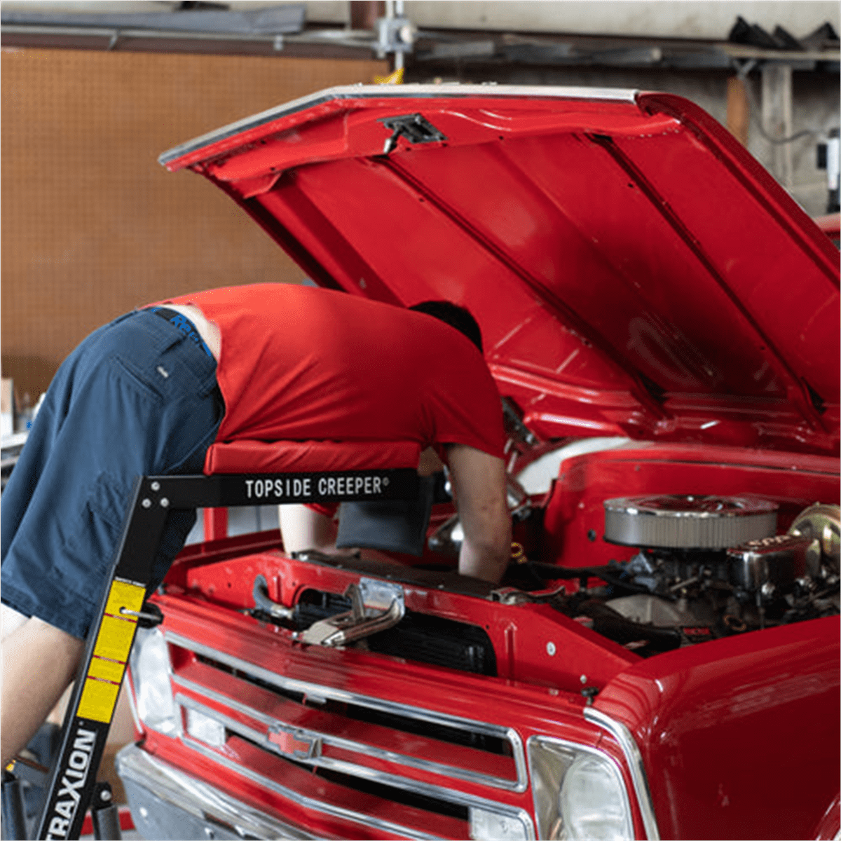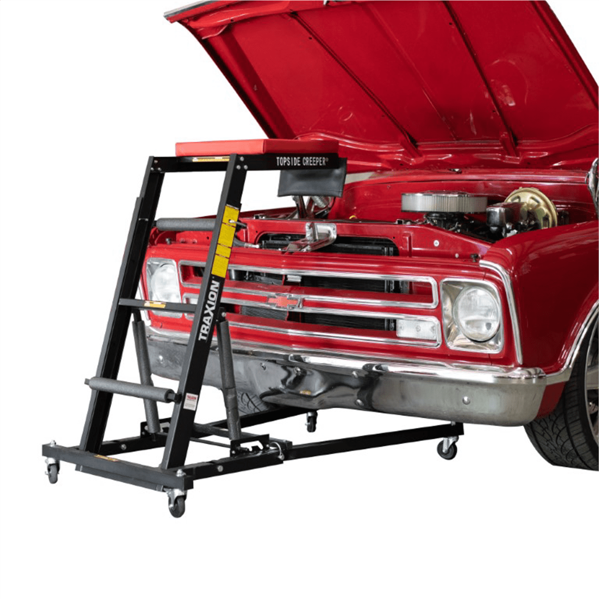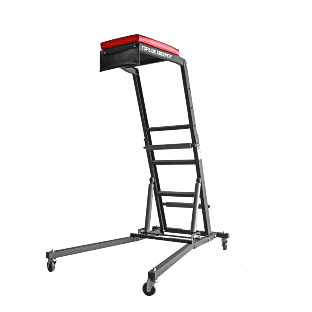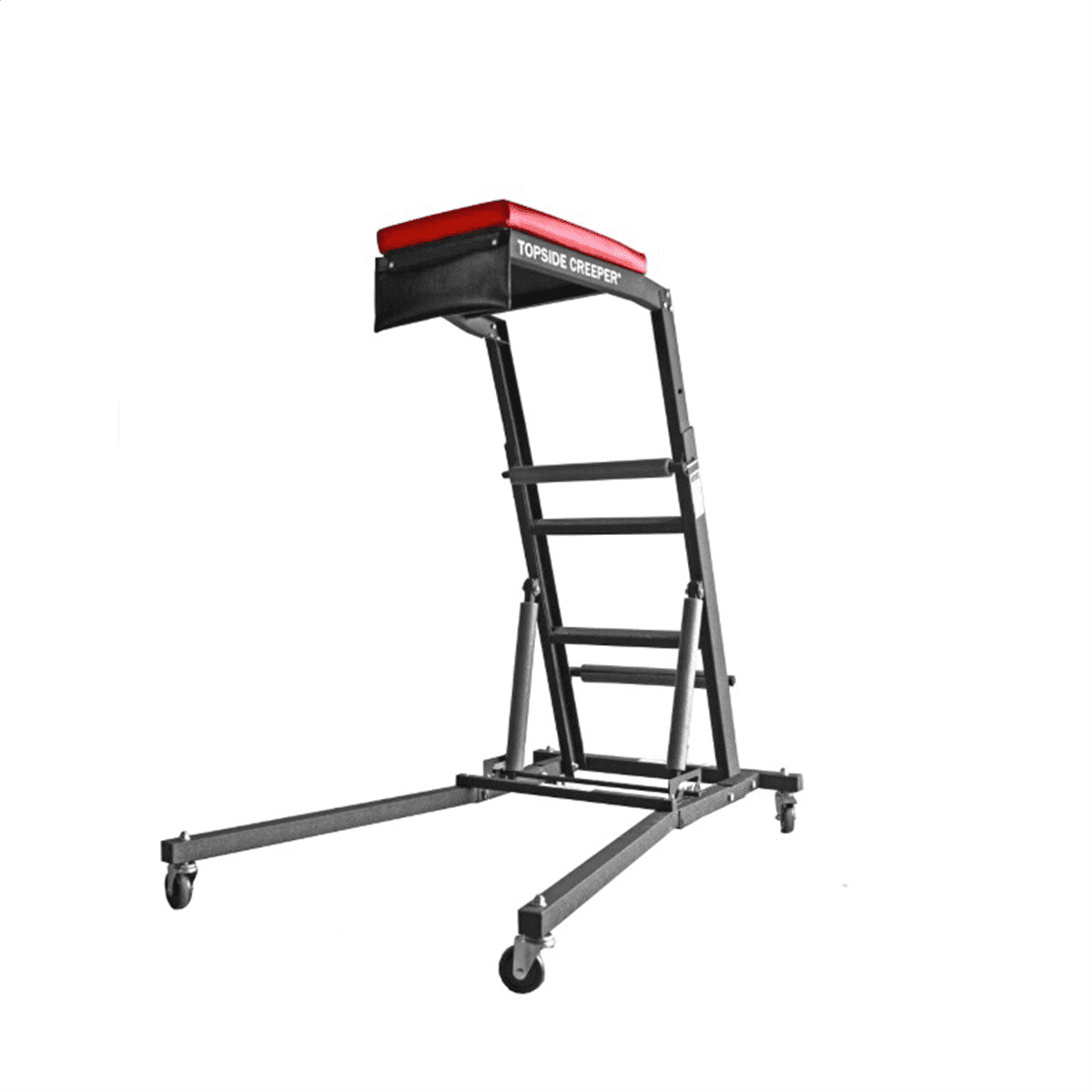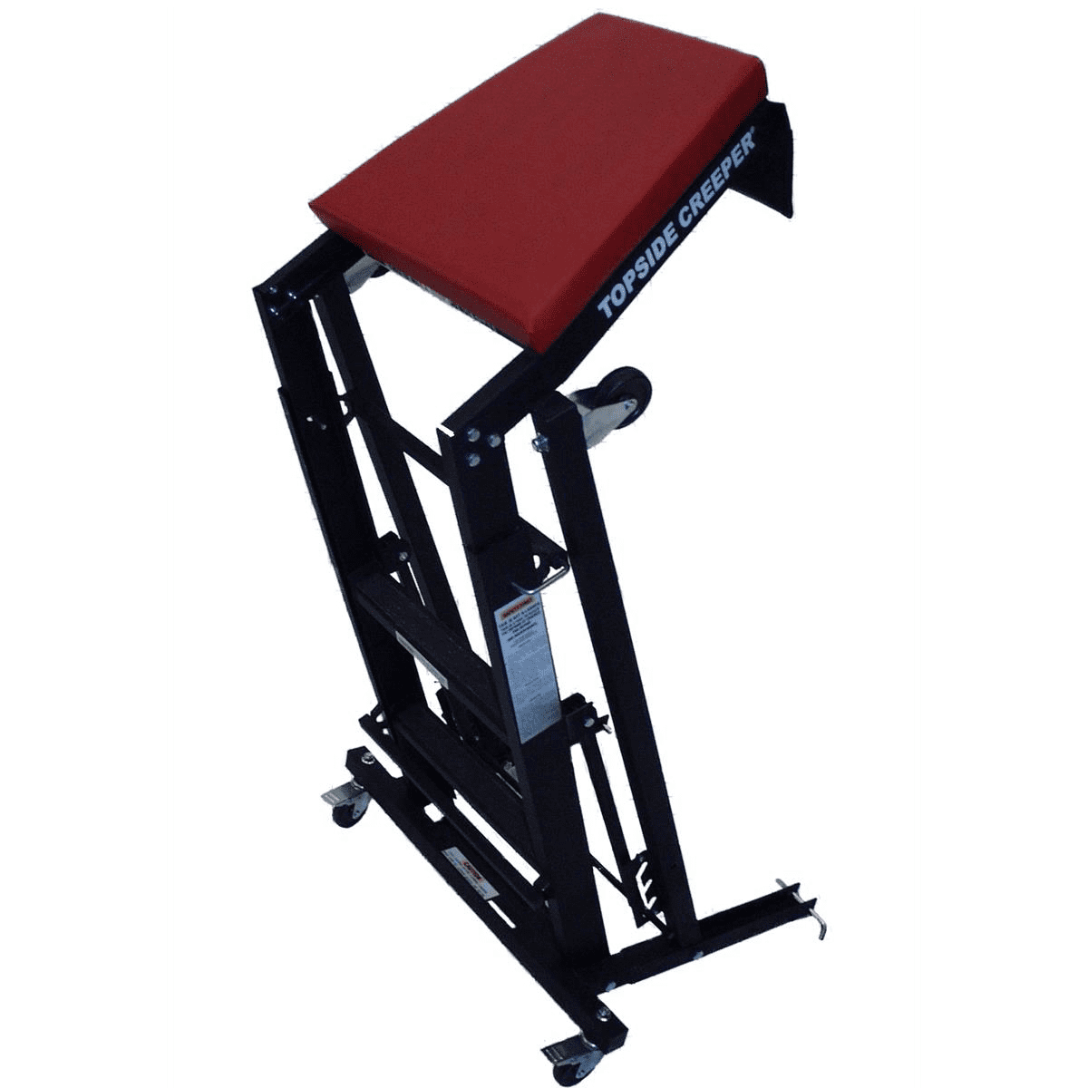 Adjustable Creeper height to fit your desired placement for your vehicle Padded deck allows for added comfort while working on your truck or car Topside Creeper easily folds away for a compact configuration when not in use Four swivel casters make moving the Topside Creeper into position smooth and easy Durable powder coated steel frame construction