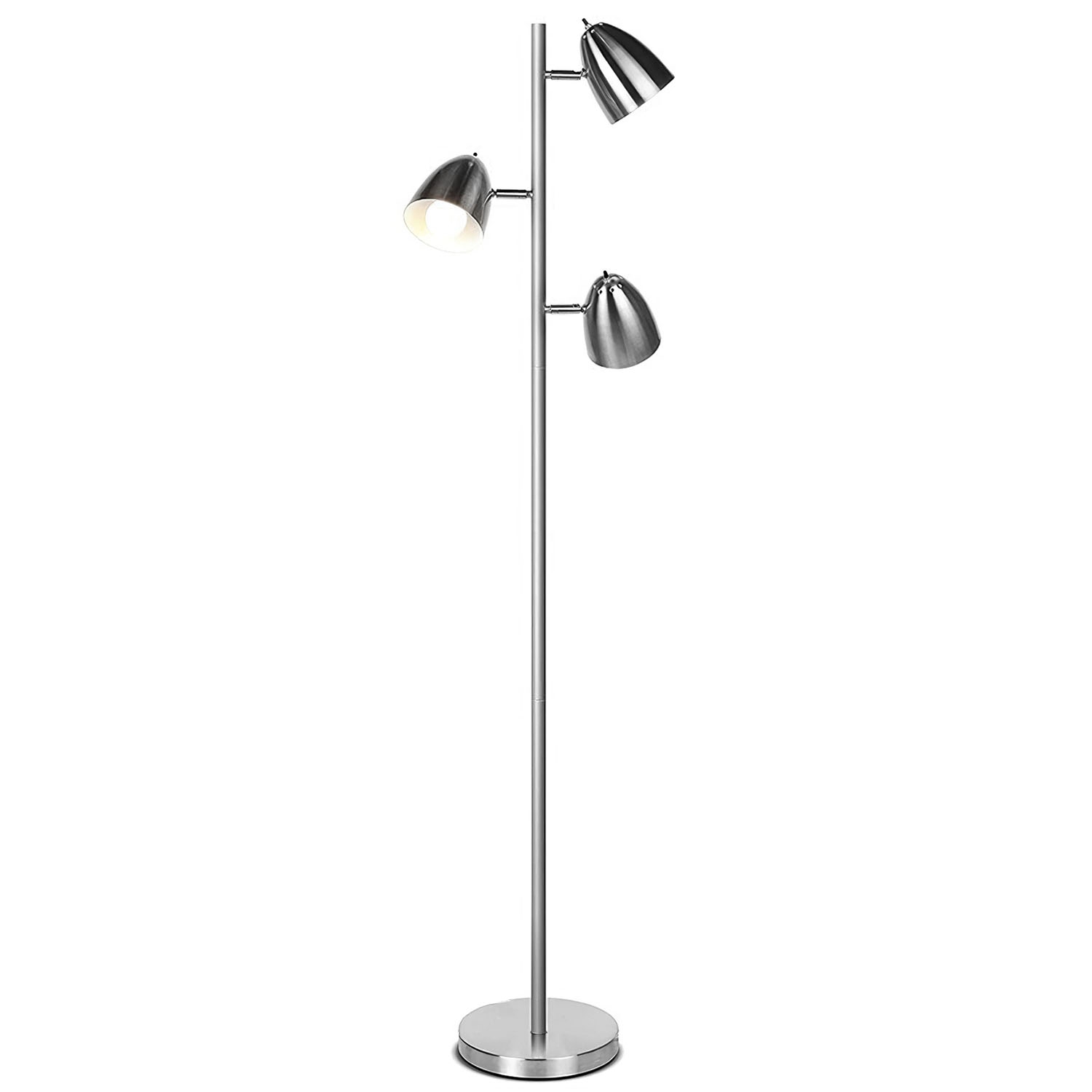 Tree Floor Lamp with 3 Color TeqHome Standing light Lamps for Living Room Bedroom Office, Reading Stand up light with 360° Adjustable Arms Individual Separate Switch, Silver (LED A19 Bulbs)