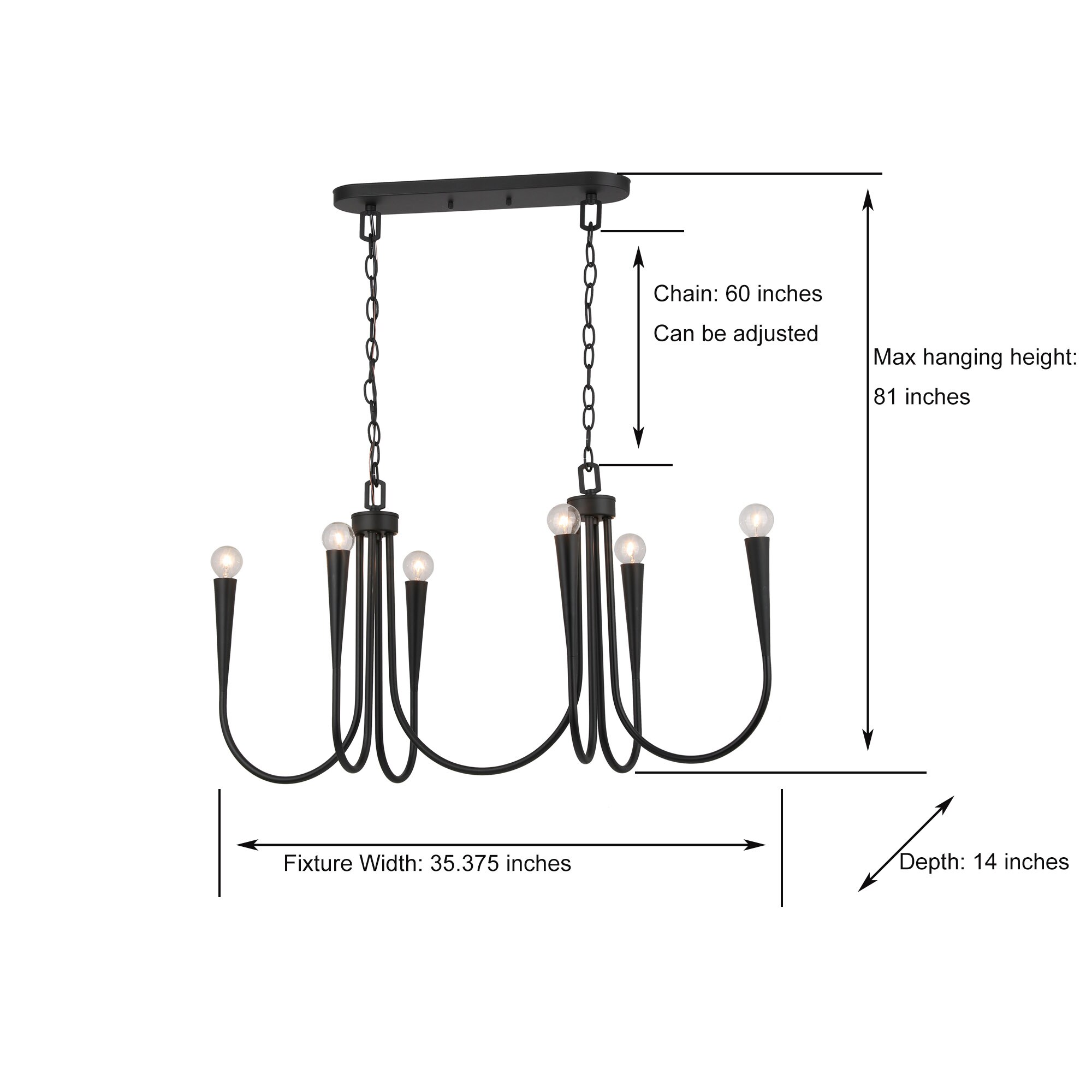 This black linear Chandelier from Trenton collection, matte black canopy offers a timeless look, six bare bulbs will lighter your room very well, it is very suitable for the morden/contemporary style. We recommend using this fixture in various settings. You can either install it to decorate your living room, bedroom, entryway, kitchen island,or set it as foyer lighting.