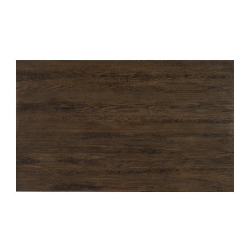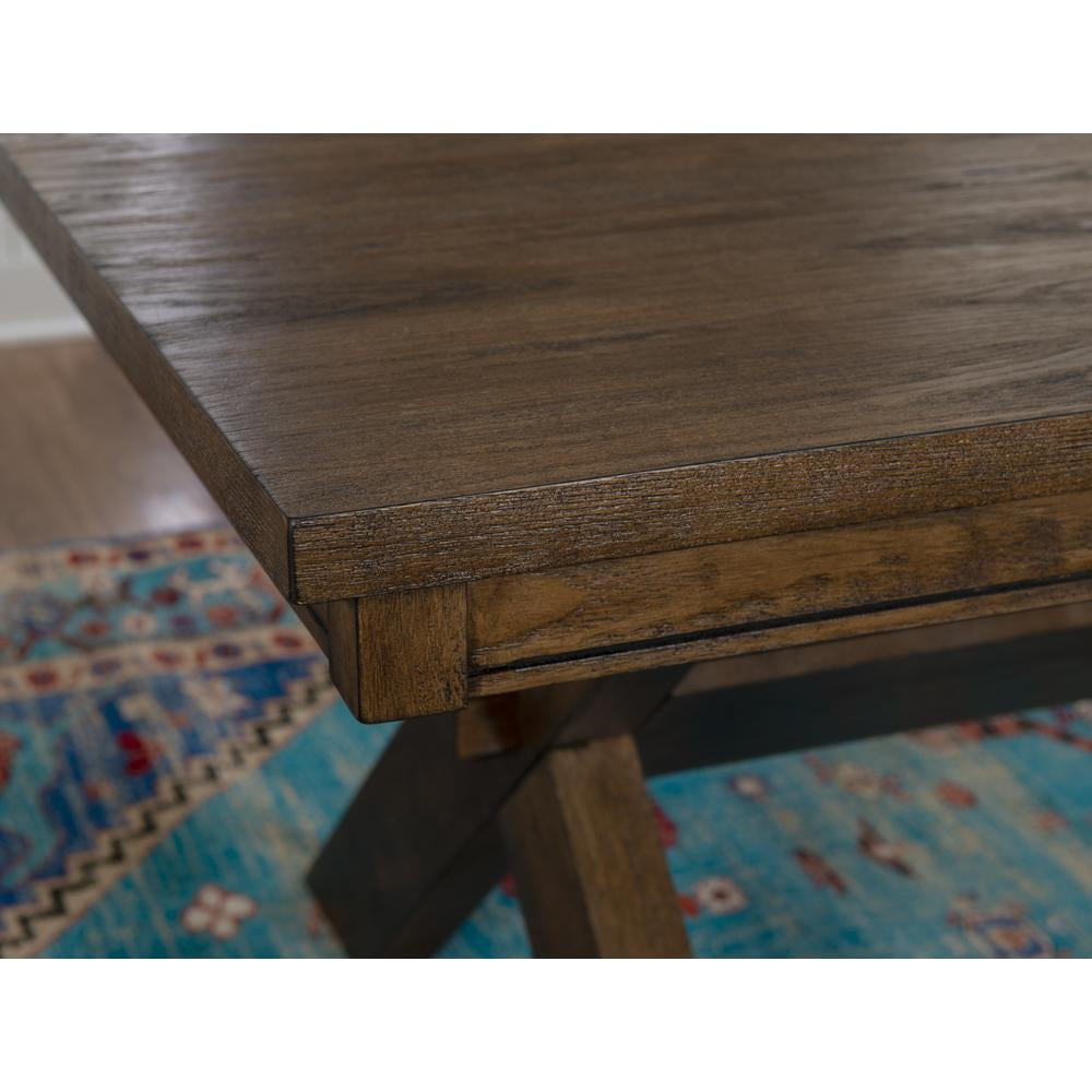 Classic trestle design Rubberwood frame Rustic umber finish Storage shelf built into trestle