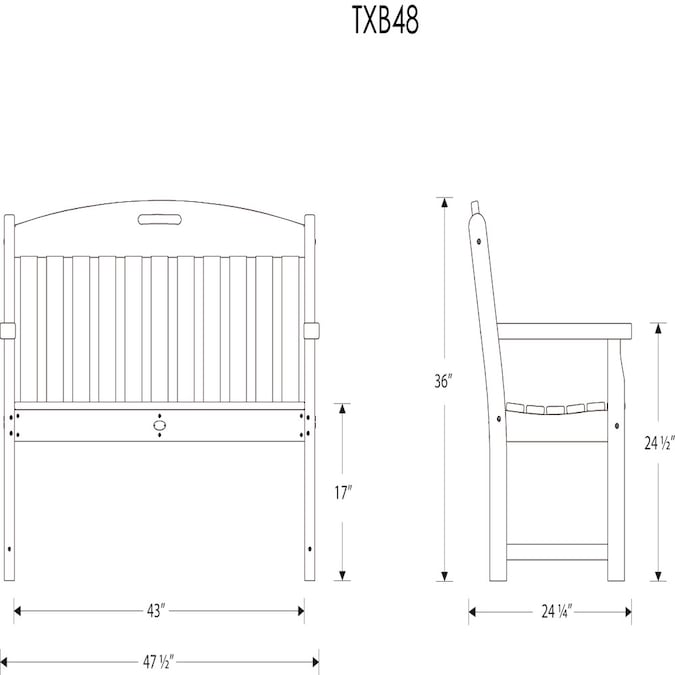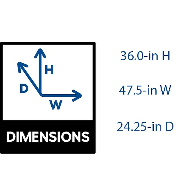 - Overall dimensions measure 47.5-in x 36-in x 24.25-in (WxHxD)