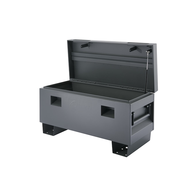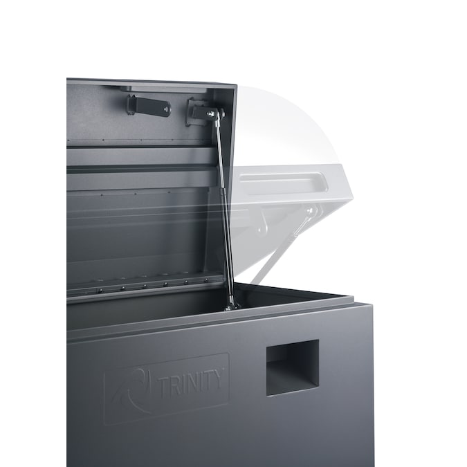 TRINITY’s Job Site Box is rugged enough for any job site. Available in 36″ or 45″ wide options, this jobsite box is made from heavily reinforced steel with a matte rust-resistant powder coated finish. This box features recessed carrying handles, a tamper-proof locking system, and gas lift(s). The Box can be mounted to a truck bed, or a jobsite, and is also forklift and crane accessible.