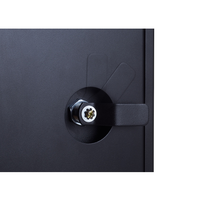 • Magnetic door latches | Lockable door to keep your items safe | Easy access cable management location at the bottom of the cabinet
