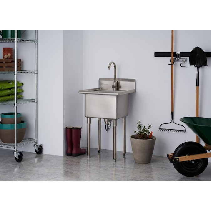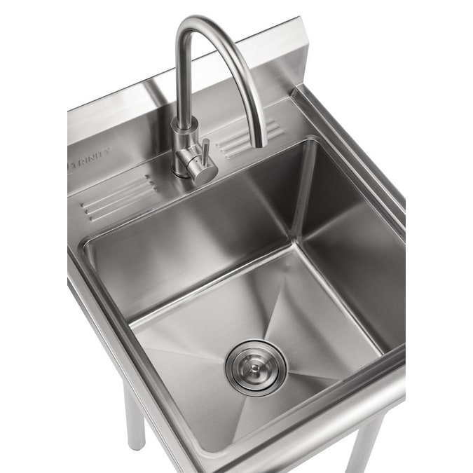 TRINITY EcoStorage® NSF certified stainless steel utility sink blends quality, function, and value. This versatile sink is ideal for any kitchen, laundry, mudroom, or garage and is perfect for any food-related business. The 16-gauge, 304 stainless steel sink accommodates many items that need a wash, and its durable construction ensures long life in any environment. Mounting hardware, drain assembly and adjustable feet levelers included.