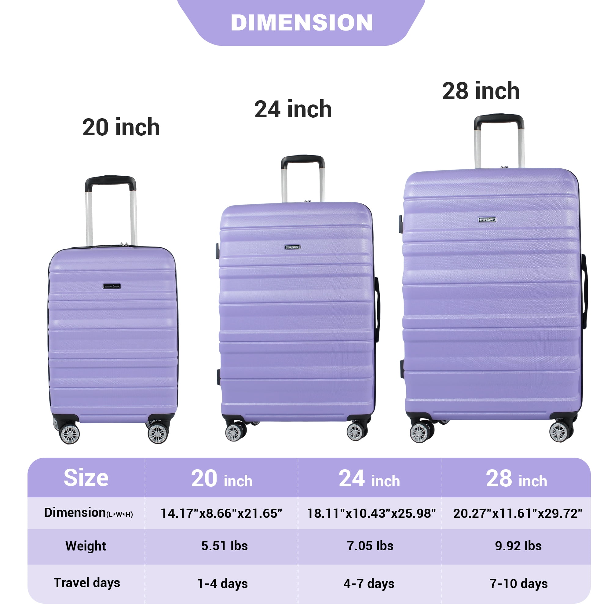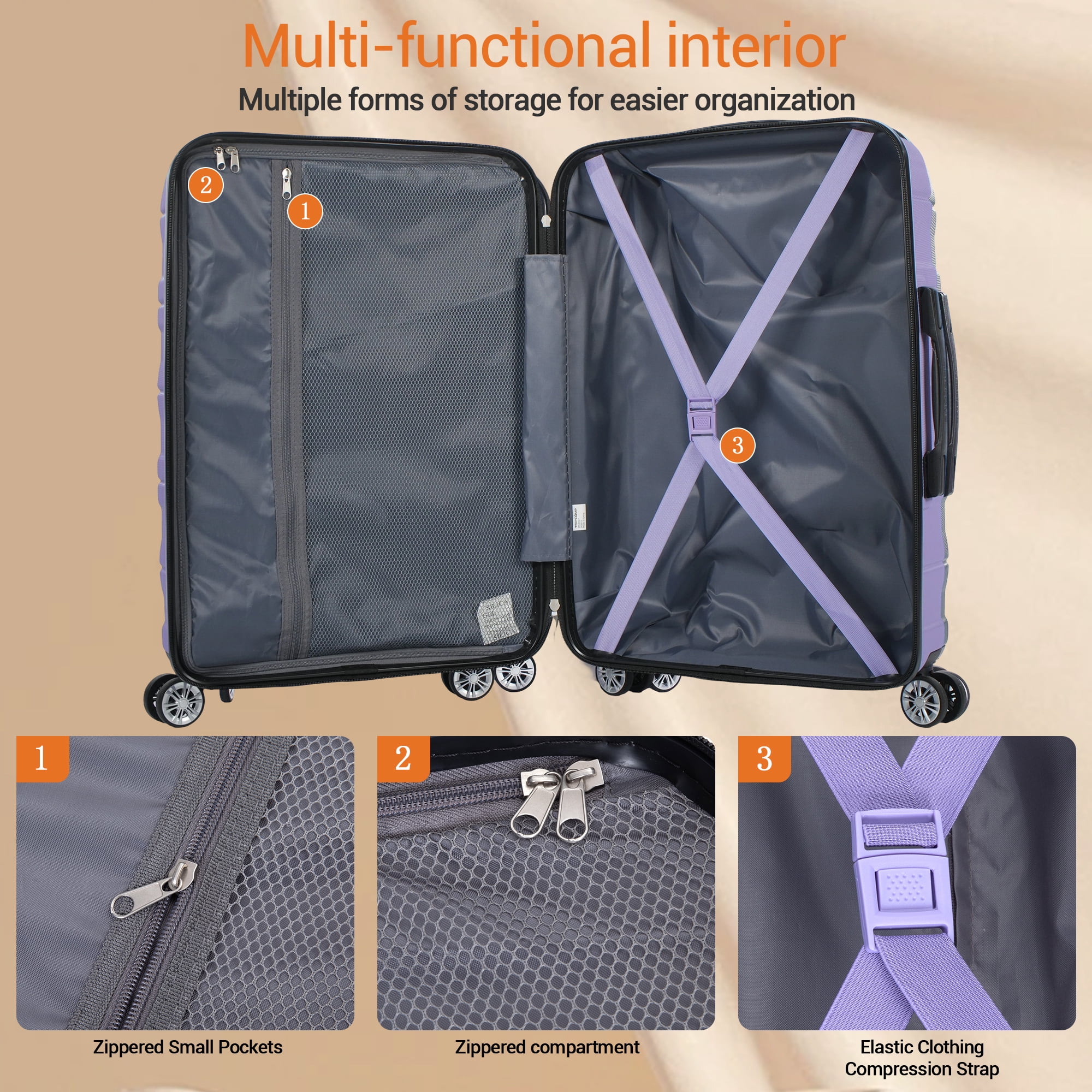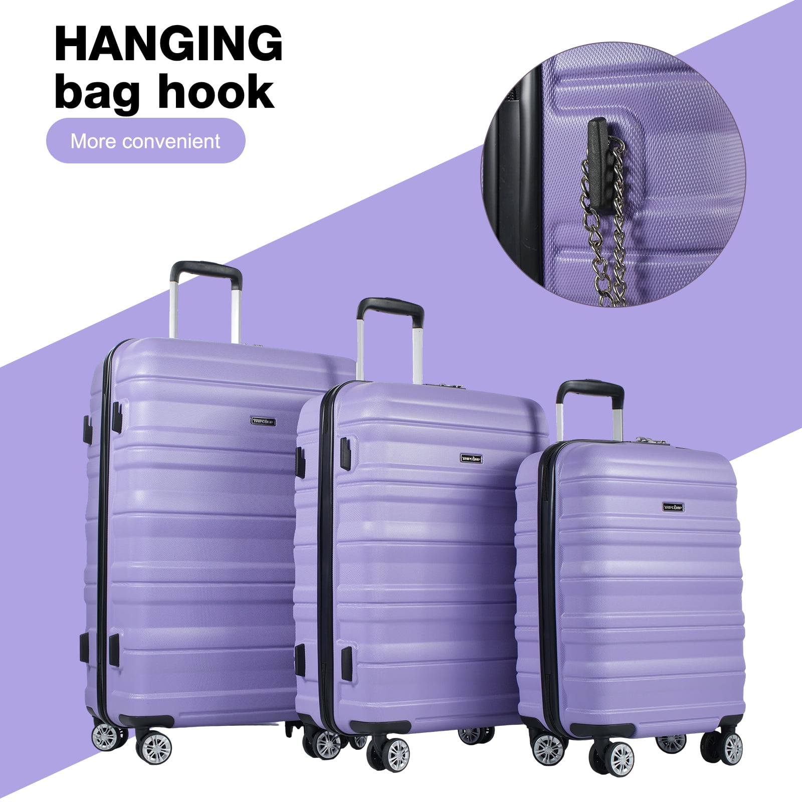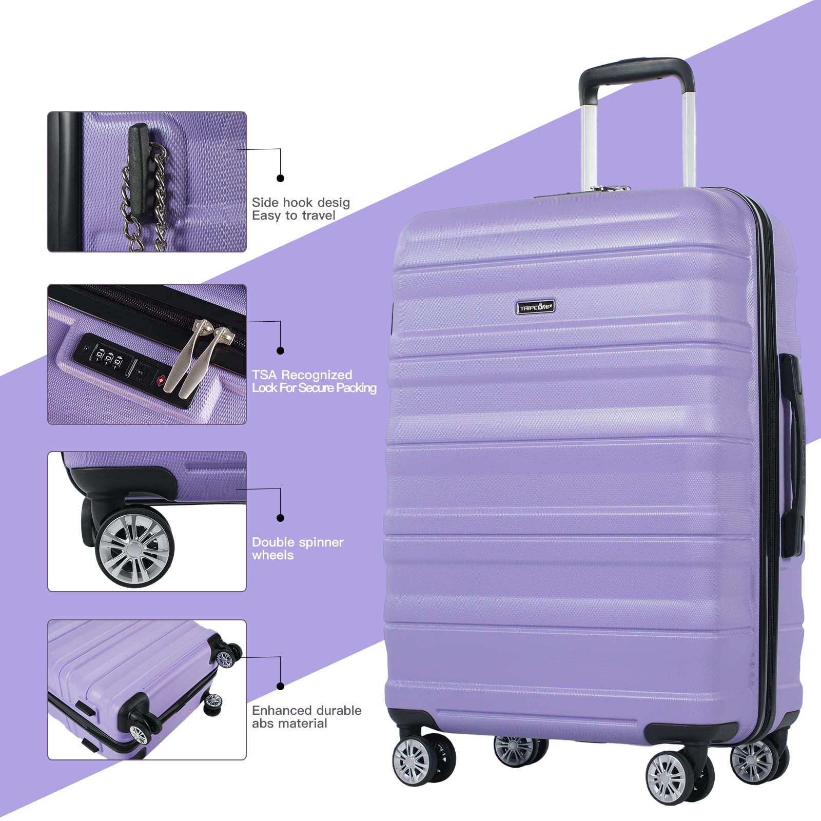 Tripcomp Hardside Luggage Set 3-Piece Set (21/25/29) Lightweight Suitcase 4-Wheeled Suitcase Set(Purple)