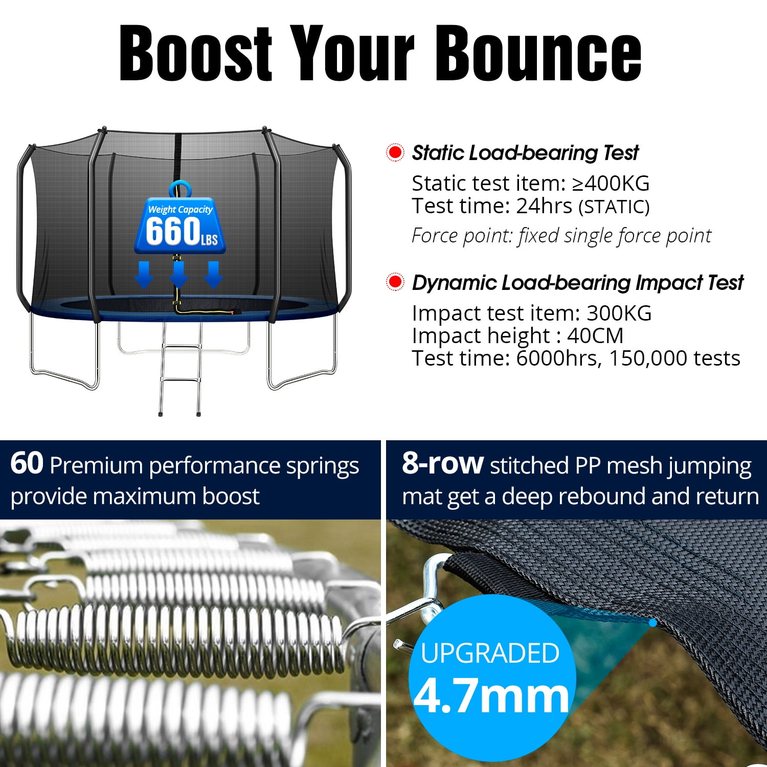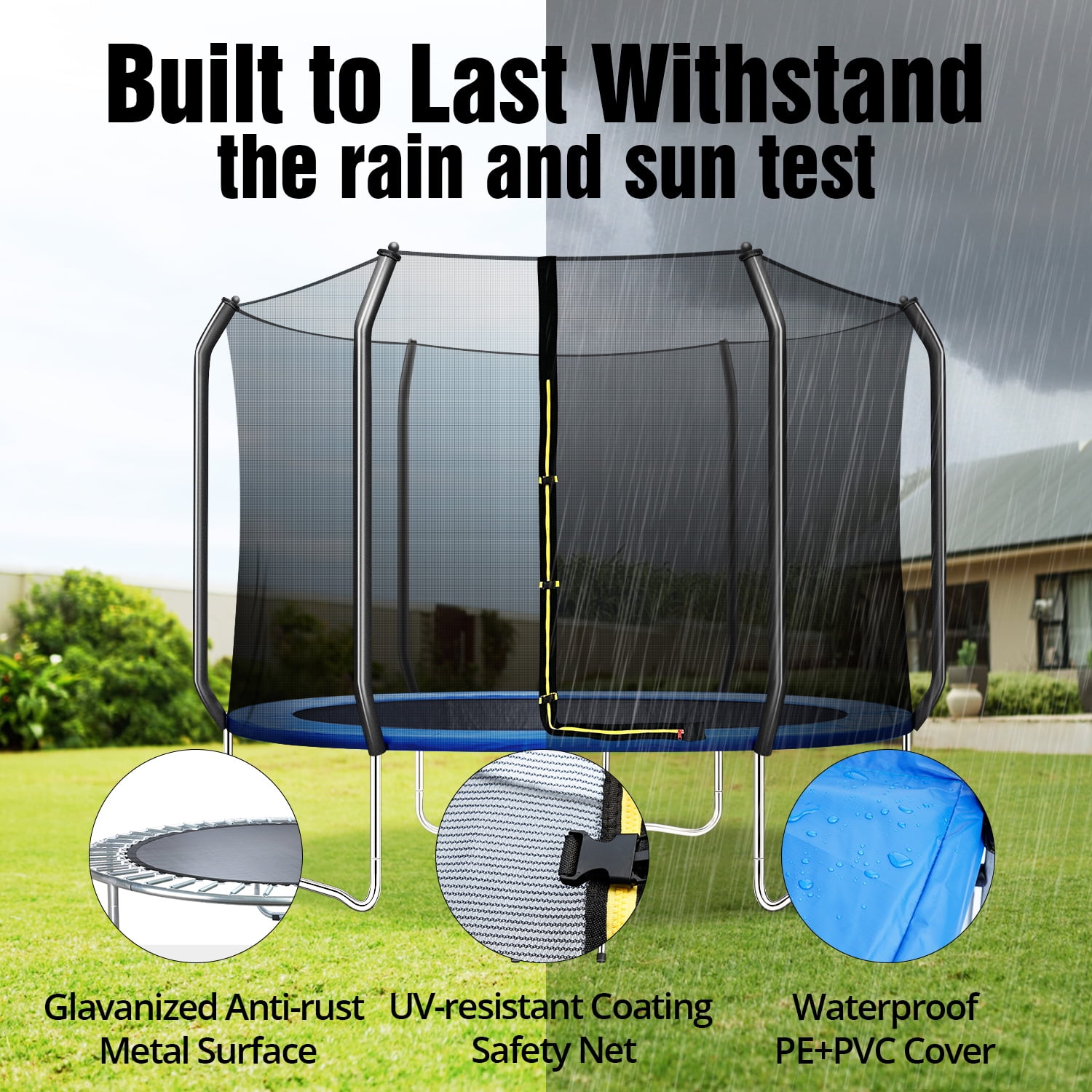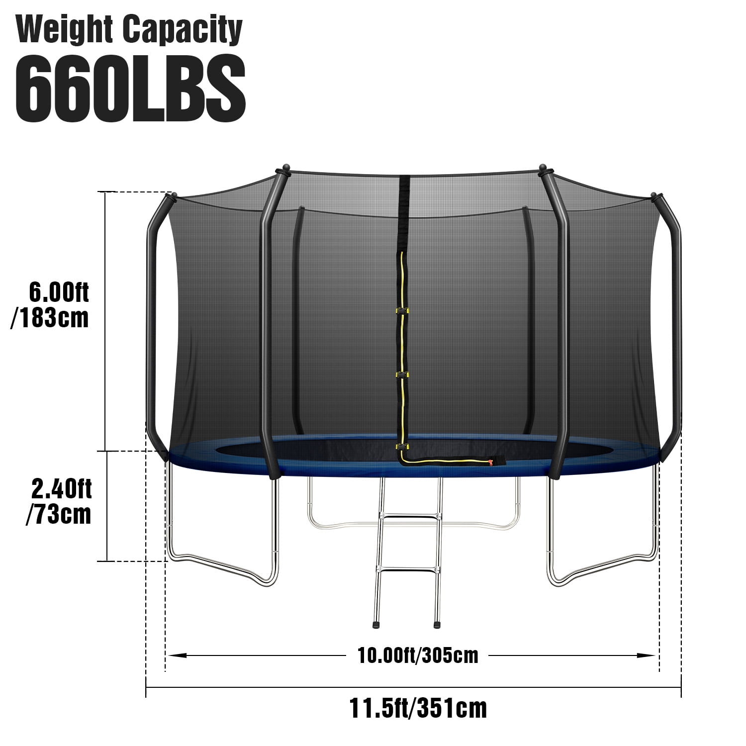 TRIPLE TREE 10 FT Trampoline with Safe Enclosure Net, 660 lbs Capacity for 3 Kids, Outdoor Fitness Trampoline with Waterproof Jump Mat Ladder for Indoor Park Kindergarten Toddler Trampolines