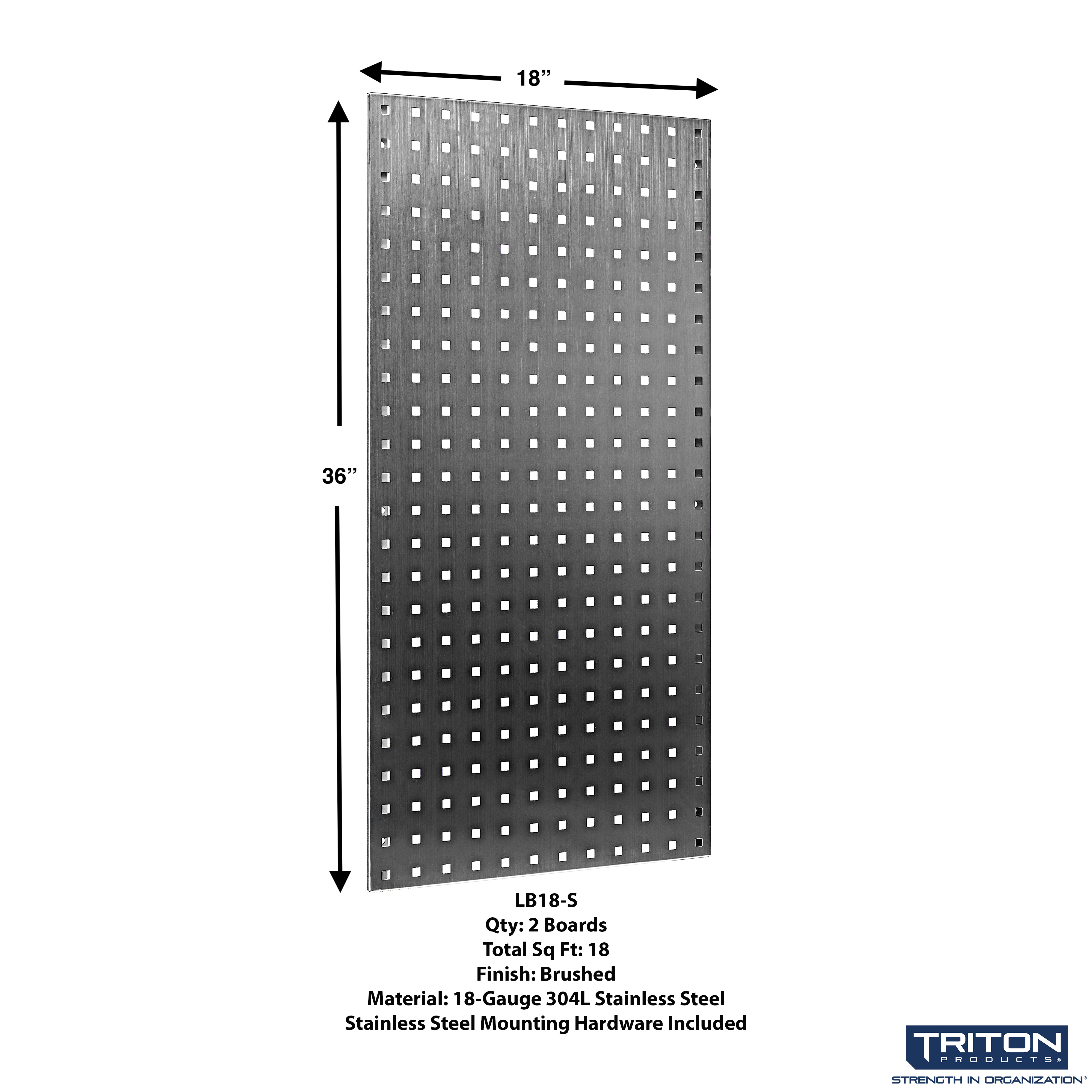 Triton Products® (2) 18 In. W x 36 In. H x 9/16 In. D 304 Stainless Steel Square Hole Pegboards with 32 pc. Stainless LocHook Assortment & (3) Plastic Hanging Bins
