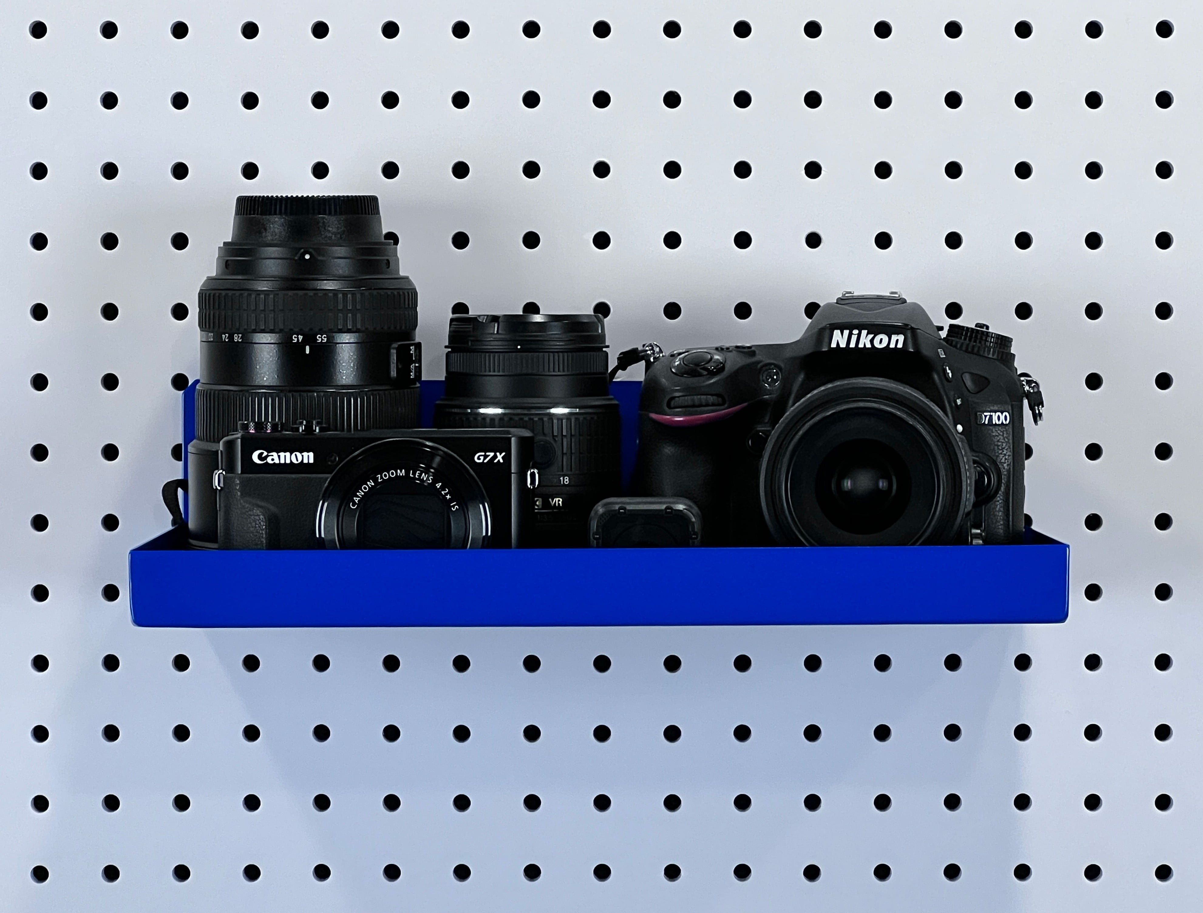 DuraHook 12″W x 6″ Deep Blue Epoxy Coated Steel Shelf for DuraBoard or 1/8″ and 1/4″ Pegboard: Used with any standard pegboard size or DuraBoard Mobile Tool Cart Provides a flat surface shelf storage solution for bottles, cans, tools, instruments and many other items Use on any 1/8″ or 1/4″ pegboard or tool board Use in multiple sets as requirements increase for items not usually stored on a pegboard Unique fastener system that attaches and locks the shelf securely to the pegboard, ensuring no dropped items