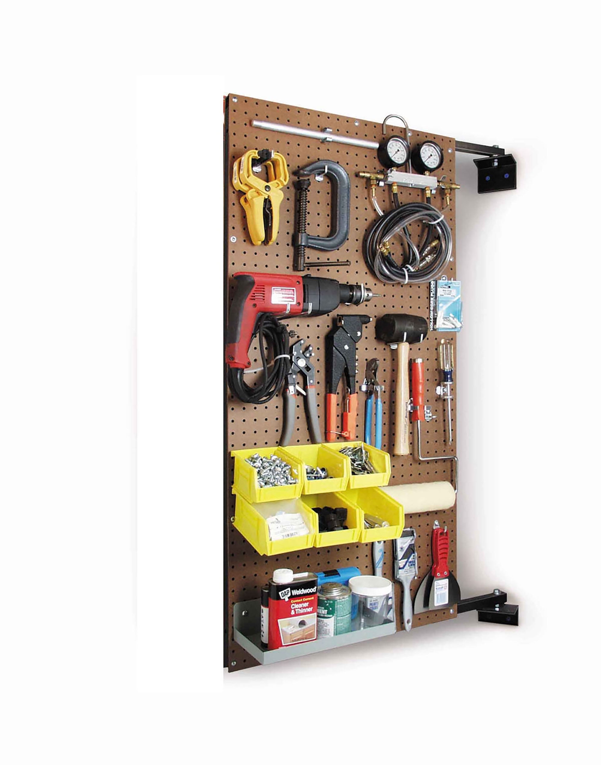 Pegboard Swing Panel, Panel Hole Shape Round, Overall Height 48 In., Overall Width 24 In., Overall Depth 1-1/2 In., Load Capacity 275 lb., Tool Storage Space 16 sq. ft., Swing Radius 33 In., Panel Hole Size 9/32 In., Panel Hole Spacing 1 In., Material Hardwood, Color Brown, Number of Panels 1, Number of Hooks 0, Powder Coated Finish, Includes (1) 24 In. x 48 In. Panel, Wall Mounting Bracket and HardwareFeaturesPanel Hole Spacing: 1″Number of Panels: 1Tool Storage Space: 16 sq. ft.Storage: 16 sq. ft.Panel Hole Size: 9/32″Includes: (1) 24″ x 48″ Panel, Wall Mounting Bracket and HardwareNumber of Hooks: 0Load Capacity: 275 lb.Height: 48″Hole Shape: RoundMaterial: HardwoodFinish: Powder CoatedThickness: 1-1/2″Overall Height: 48″Item: Pegboard Swing PanelHole Spacing: 1″Width: 24″Overall Depth: 1-1/2″Hole Size: 9/32″Swing Radius: 33″Panel Hole Shape: RoundOverall Width: 24″Color: BrownItem – Pegboards: Pegboard Swing PanelLoad Rating: 275 lb.