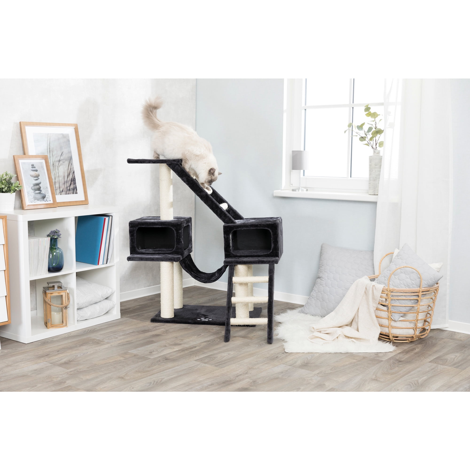 TRIXIE Malaga Sisal 3-Level 43″ Cat Tree with Scratching Posts, Condos & Ladders, Gray