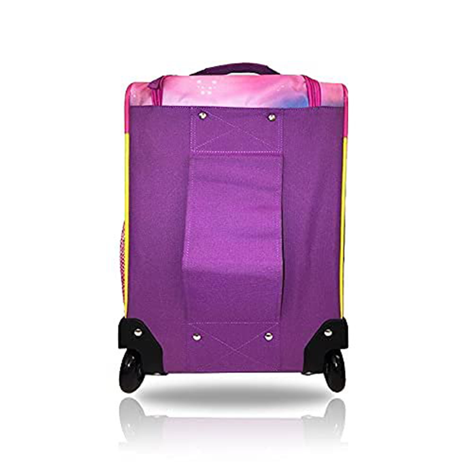 MATERIAL: This softside carry-on luggage made of high-quality materials such as PVC SIZE & WEIGHT: Dimensions 18 x 9 x 12 inches, Weight: 4.65 lbs; It should be manageable for most kids COLOR: Exclusive color combination with all over prints makes an eye catching look for kids Lightweight: Lightweight and spacious that makes this backpack easy to carry and organize for any child MORE INFO: Perfect for travel. Kids will love to have this luggage for their travel purpose