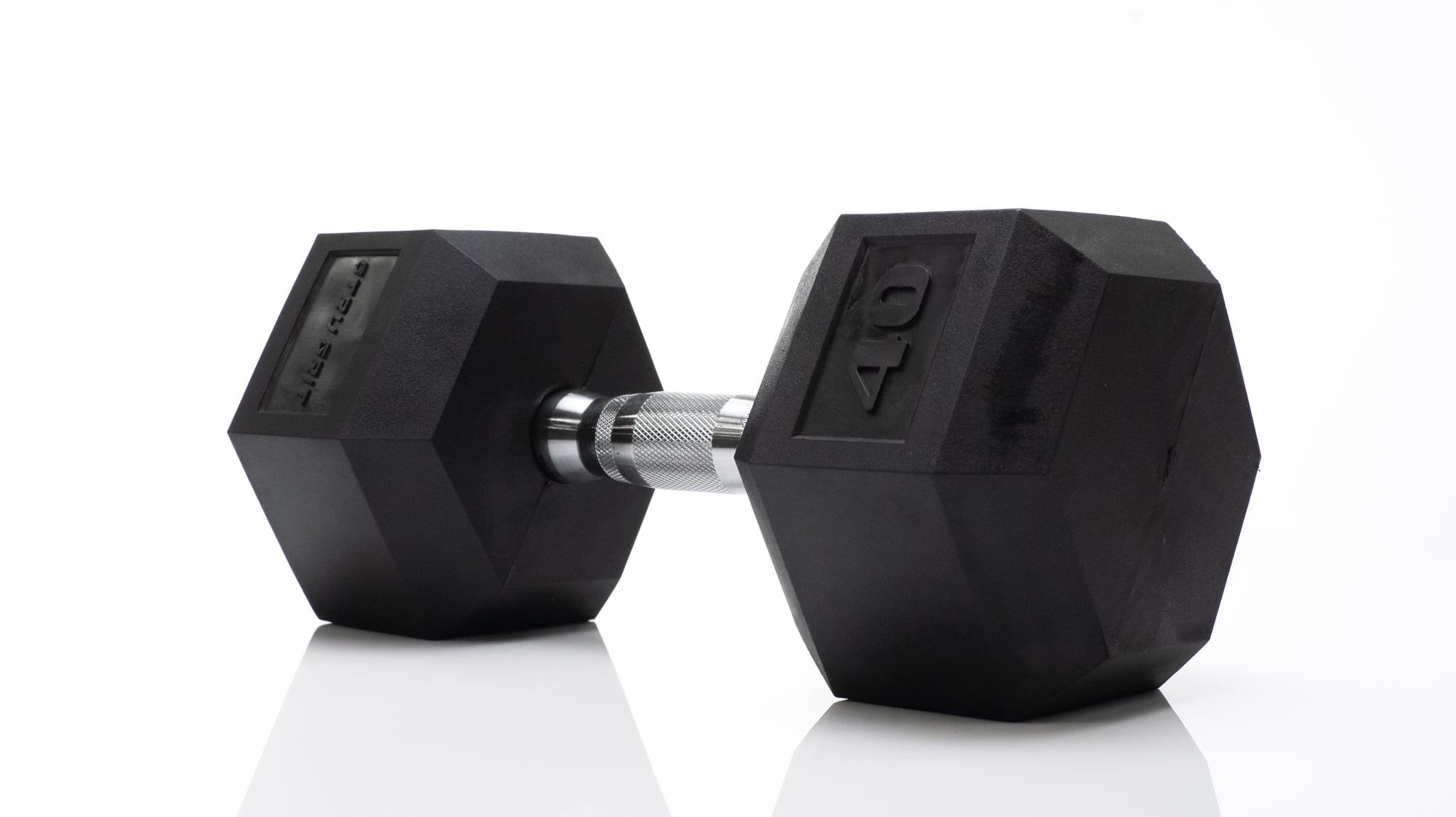 Tru Grit Fitness 40LB Black Rubber Hex Dumbbells Made with heavy-duty rubber heads to minimize noise and mitigate typical wear and tear to the equipment and your floor Chrome plated handle that is ergonomically designed for any grip style or hand. Small dumbbells up to 10 LB feature a unique 25 MM diameter handle Heavier dumbbells from 12.5 LB and up have a larger 35 MM diameter handle for added comfort and grip diameter. Dumbbell for resistance training—great for arms, chest, back, core, and legs Solid cast-iron core for reliable strength; will not bend or break after repeated use Hexagon-shaped rubber-encased ends help prevent rolling and promote stay-in-place storage Contoured, textured, chrome handle for a comfortable, secure grip Weight Ranges – 2.5lb dumbbells through 95lb dumbbells Handle Diameters – 25MM up to 10lb hex dumbbells; 35MM for 12.5lb hex dumbbells and up Tolerance: +/- 3% Small dumbbells up to 10lb rubber coated dumbbells feature a unique 25MM diameter handle Heavier 12.5lb dumbbells and up have a larger 35MM diameter handle for added comfort and grip diameter Dumbbell for resistance training—great for arms, chest, back, core, and legs Solid cast-iron core for reliable strength; will not bend or break after repeated use Hexagon-shaped rubber-encased ends help prevent rolling and promote stay-in-place storage Contoured, textured, chrome handle for a comfortable, secure grip