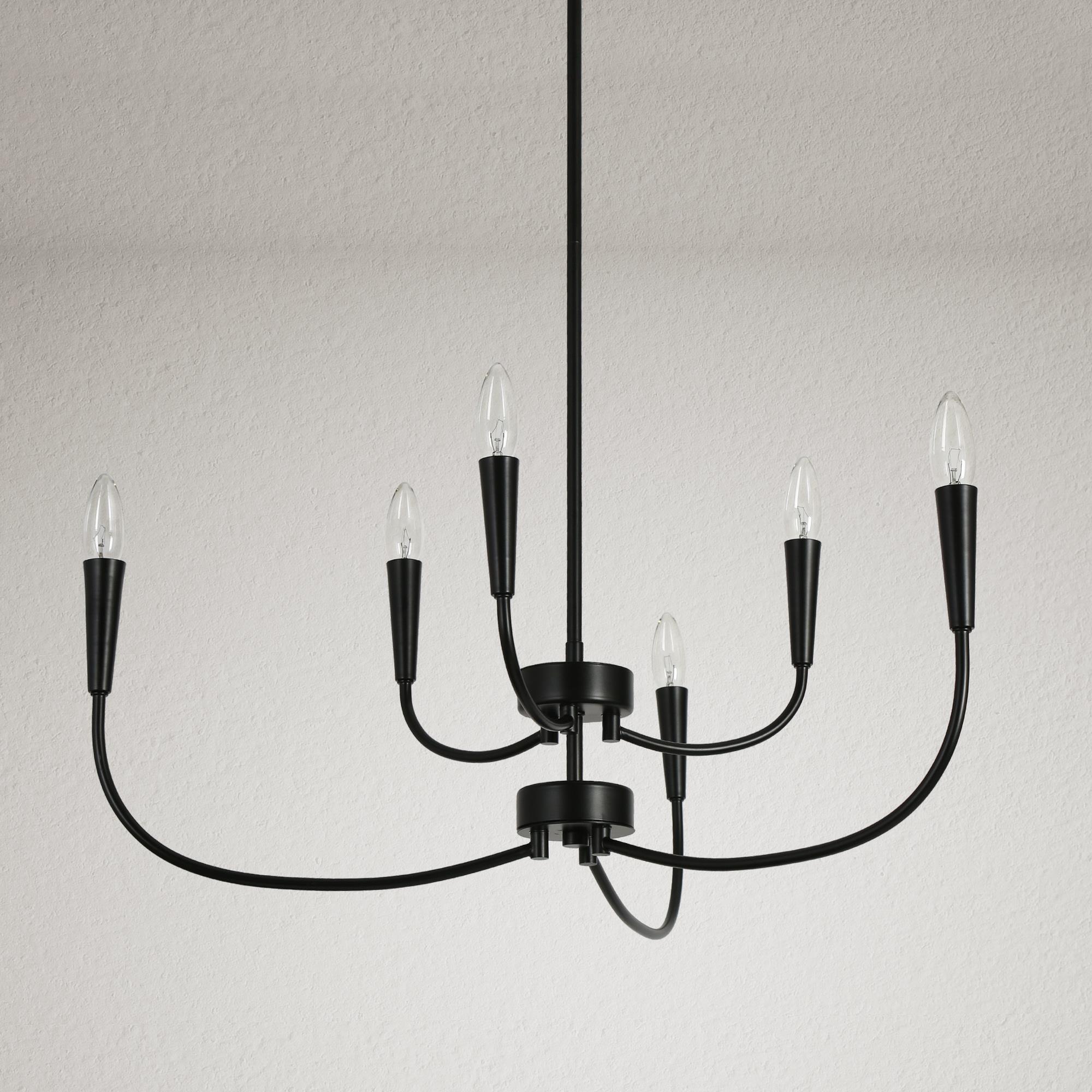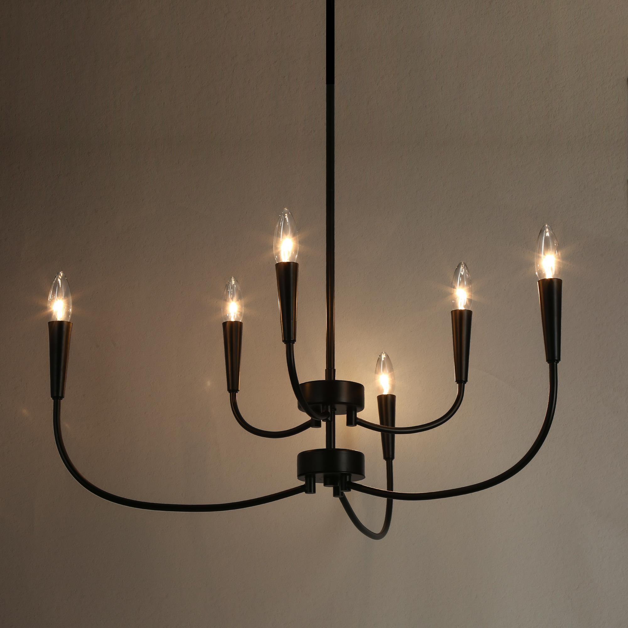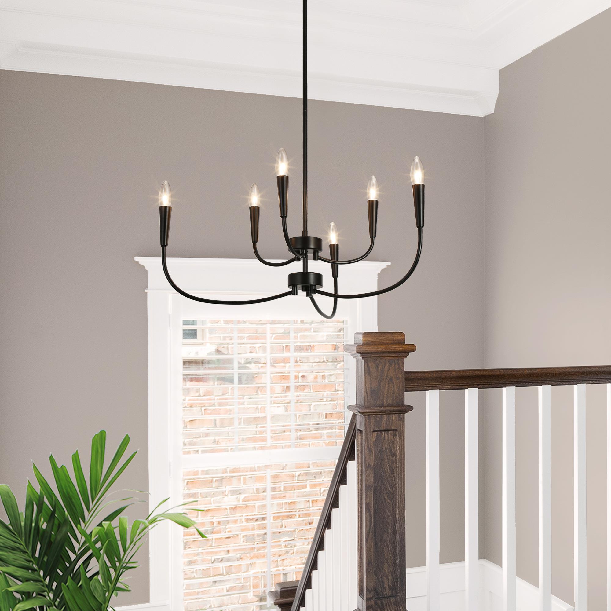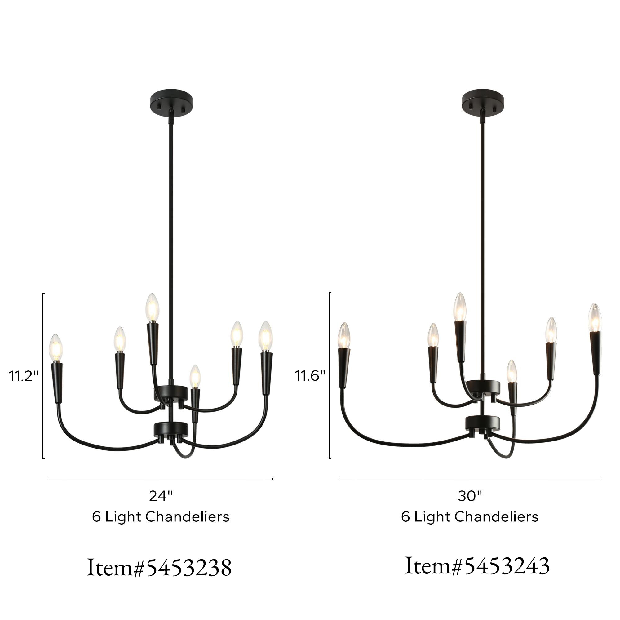 Introducing the LNC Modern 29.9 in. 6-Light Black Chandelier with Linear Candlestick Design – a blend of modern aesthetics and functionality. Crafted from high-quality metal, it ensures durability. The black finish and candlestick-inspired design suit various interior styles. Its linear arrangement adds sophistication, and the adjustable height feature allows customized lighting. This chandelier requires 6 x E12 base bulbs (not included), supporting LED bulbs for energy efficiency. Ideal for bedrooms, living rooms, and dining areas, its sleek design, adjustable height, and dimmable functionality make it perfect for both homes and commercial spaces.