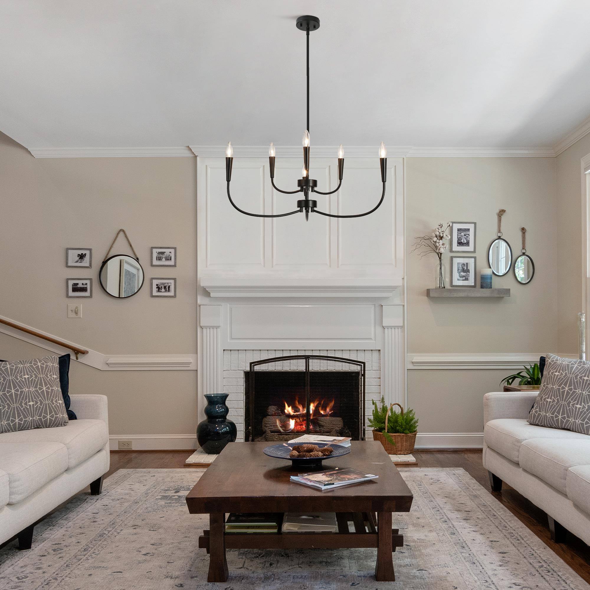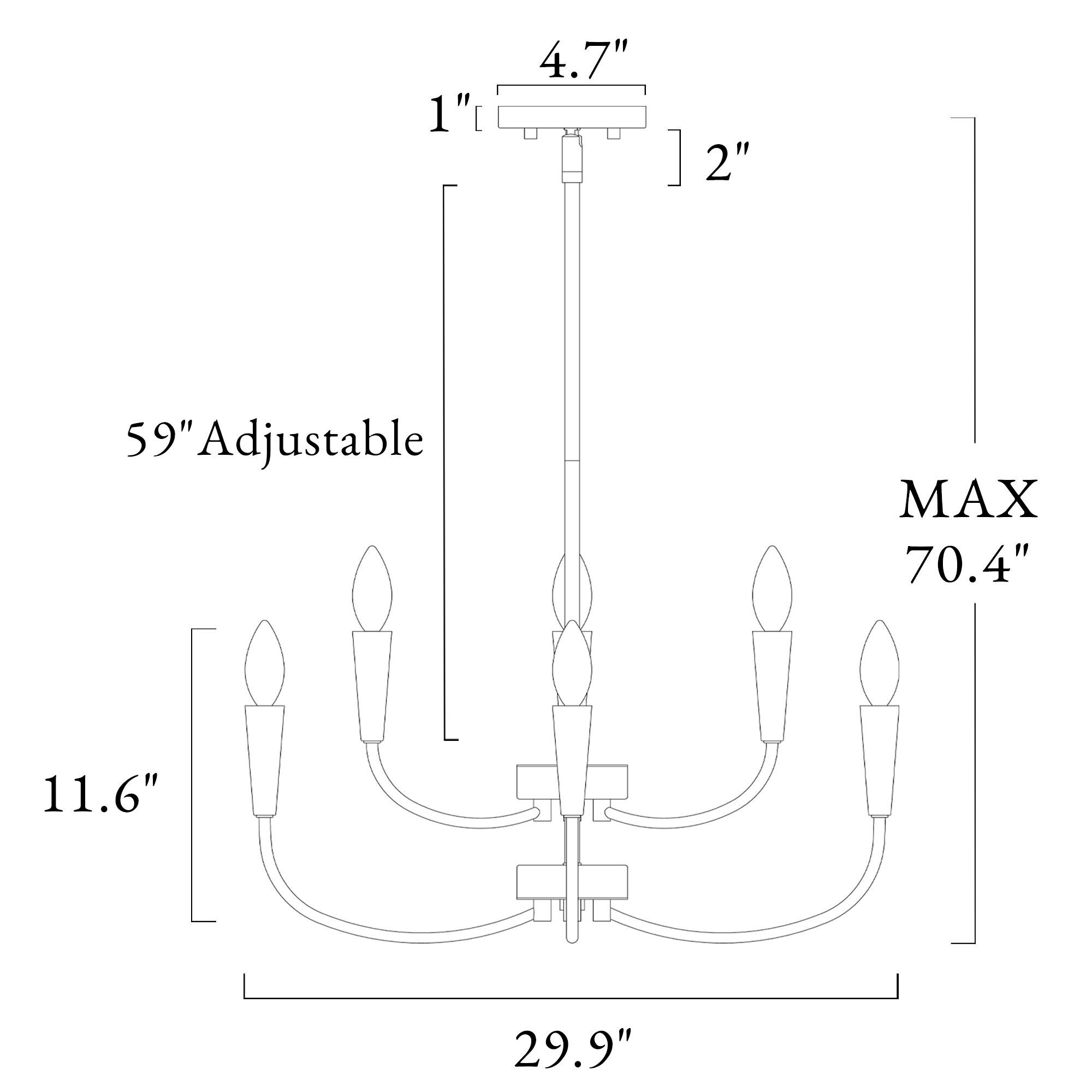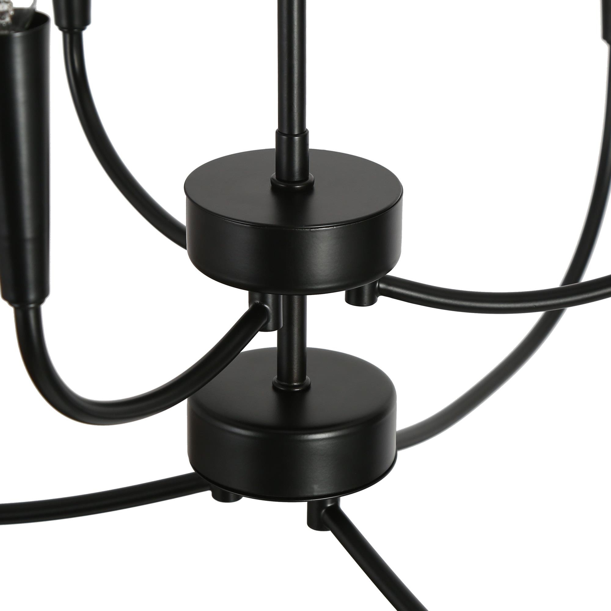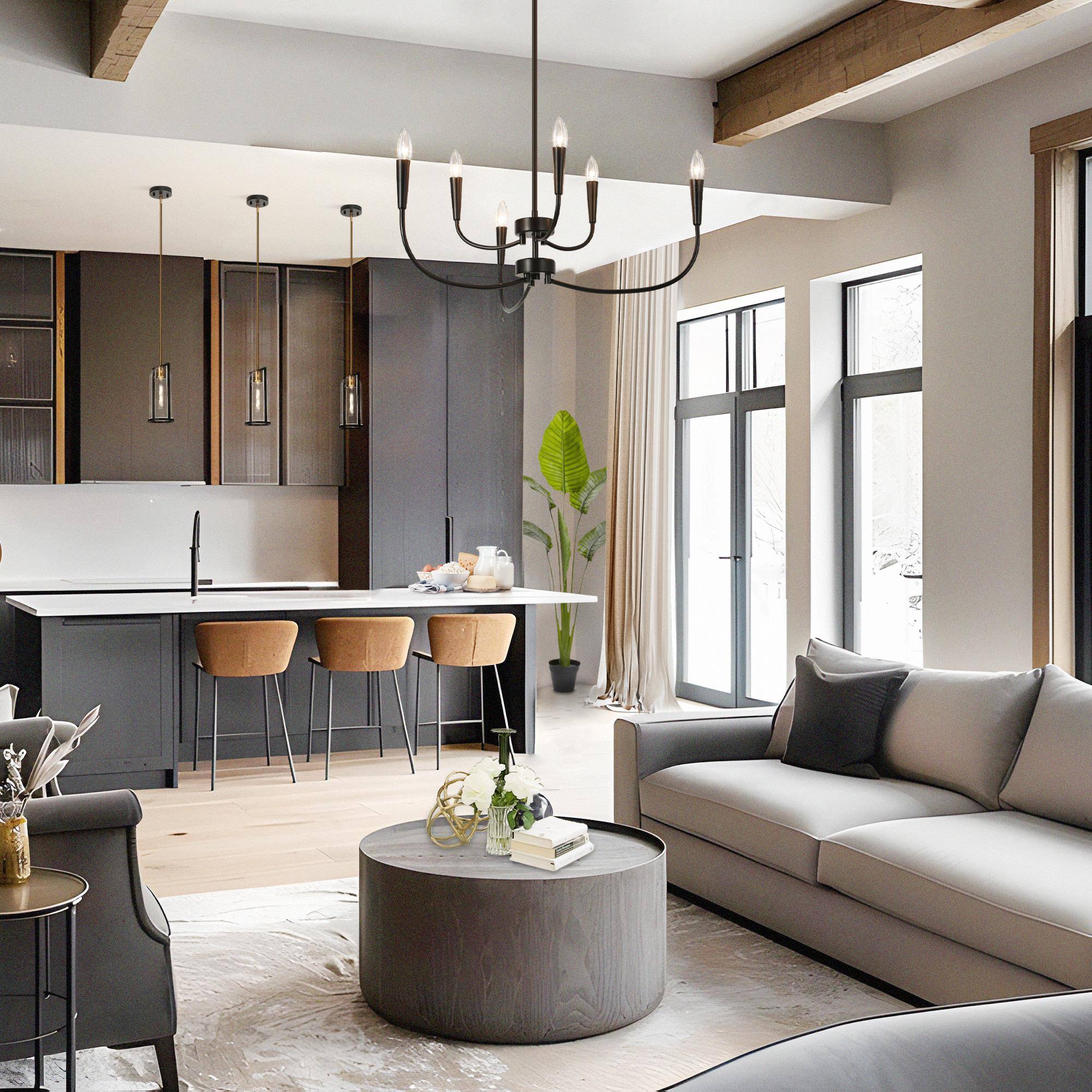 Introducing the LNC Modern 29.9 in. 6-Light Black Chandelier with Linear Candlestick Design – a blend of modern aesthetics and functionality. Crafted from high-quality metal, it ensures durability. The black finish and candlestick-inspired design suit various interior styles. Its linear arrangement adds sophistication, and the adjustable height feature allows customized lighting. This chandelier requires 6 x E12 base bulbs (not included), supporting LED bulbs for energy efficiency. Ideal for bedrooms, living rooms, and dining areas, its sleek design, adjustable height, and dimmable functionality make it perfect for both homes and commercial spaces.
