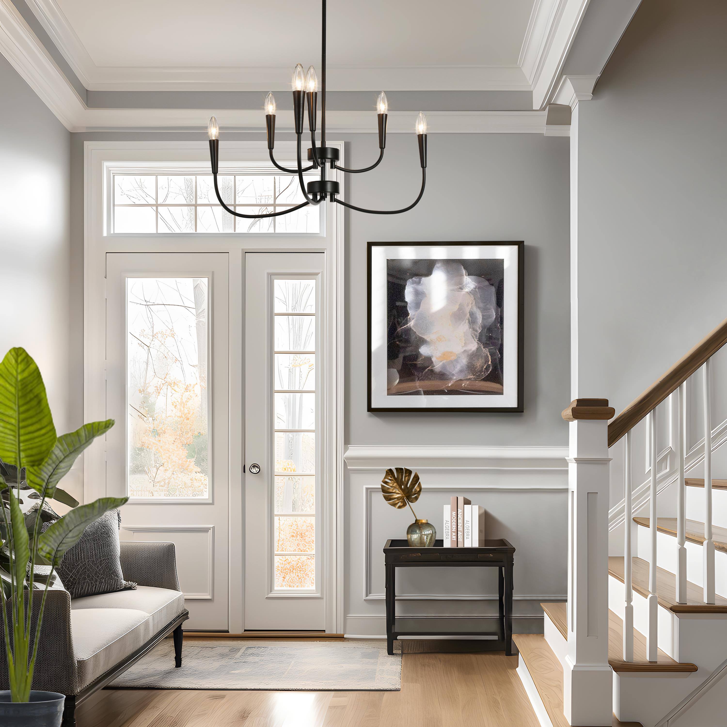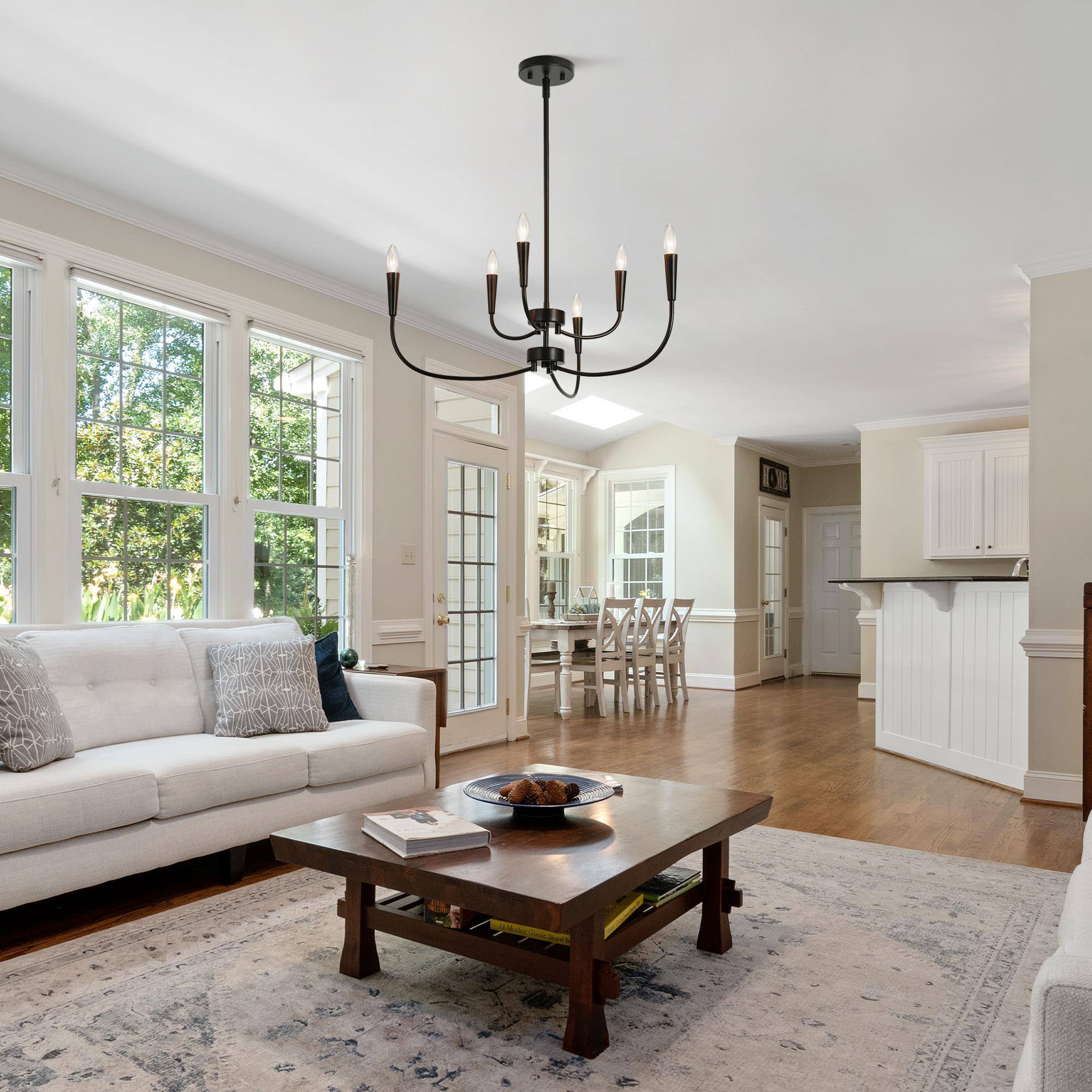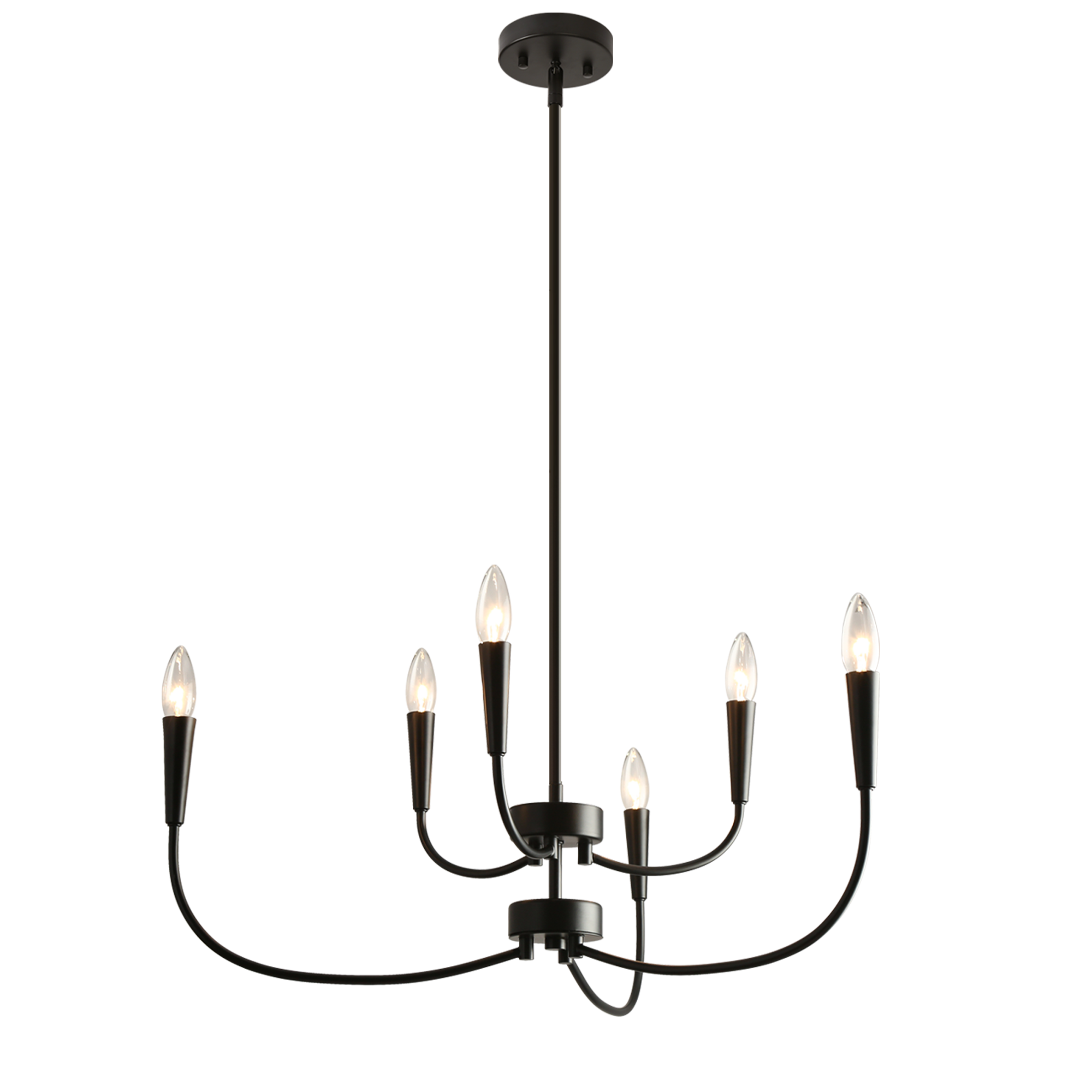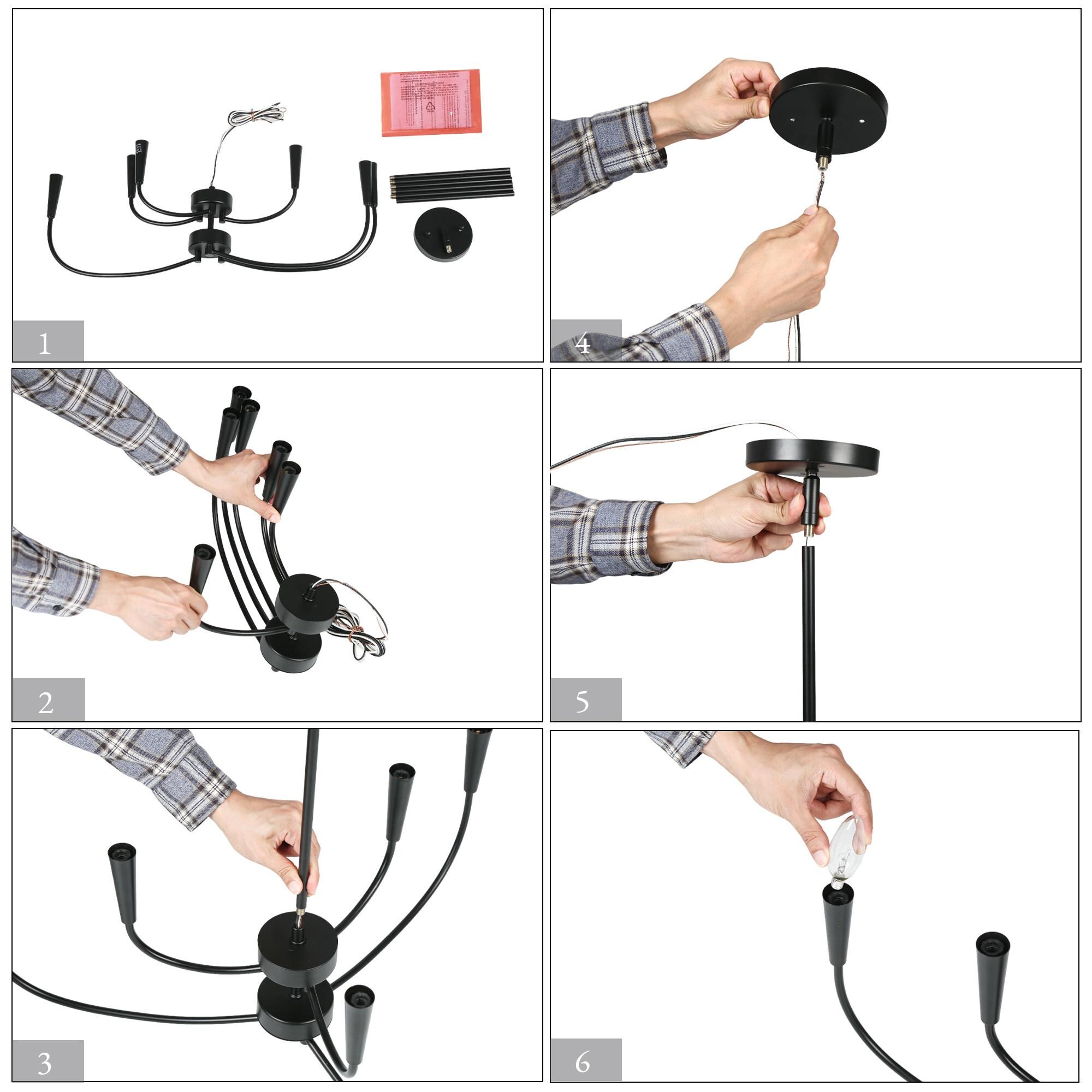Introducing the LNC Modern 29.9 in. 6-Light Black Chandelier with Linear Candlestick Design – a blend of modern aesthetics and functionality. Crafted from high-quality metal, it ensures durability. The black finish and candlestick-inspired design suit various interior styles. Its linear arrangement adds sophistication, and the adjustable height feature allows customized lighting. This chandelier requires 6 x E12 base bulbs (not included), supporting LED bulbs for energy efficiency. Ideal for bedrooms, living rooms, and dining areas, its sleek design, adjustable height, and dimmable functionality make it perfect for both homes and commercial spaces.