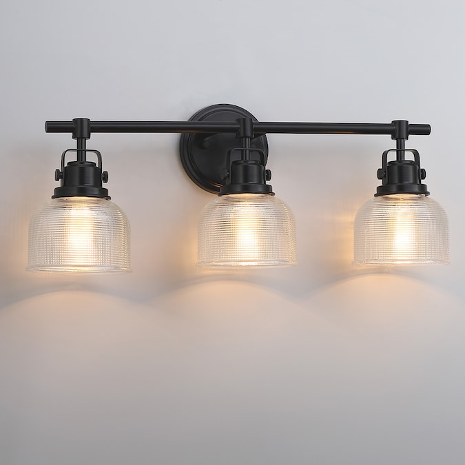 The transitional black 3 light bathroom vanity light fixture by True Fine is inspired from the modern vintage trend that beautifully blends rustic, industrial, coastal and traditional elements. The double prismatic clear dome glass shades and matte black finish make this modern fixture great for rooms with transitional decor. Vintage style Edison bulbs (not included) are recommended for this vintage-industrial style light fixture which is an ideal selection for vanity, powder room, bathroom etc. This three-light fixture can be installed with the glass facing up or down to suit your preference.