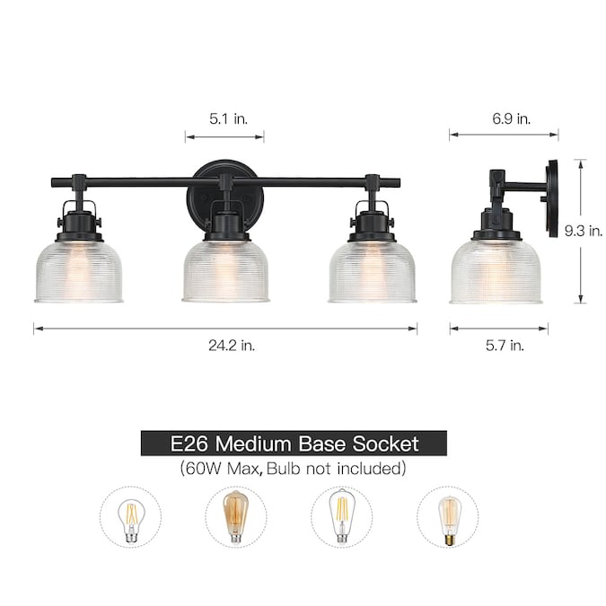 - E26 medium base socket, (3) 60-Watt max, A19/ST58 vintage Edison bulb suggested(bulb not included) to enhance the rustic look, change the bulb, change the look