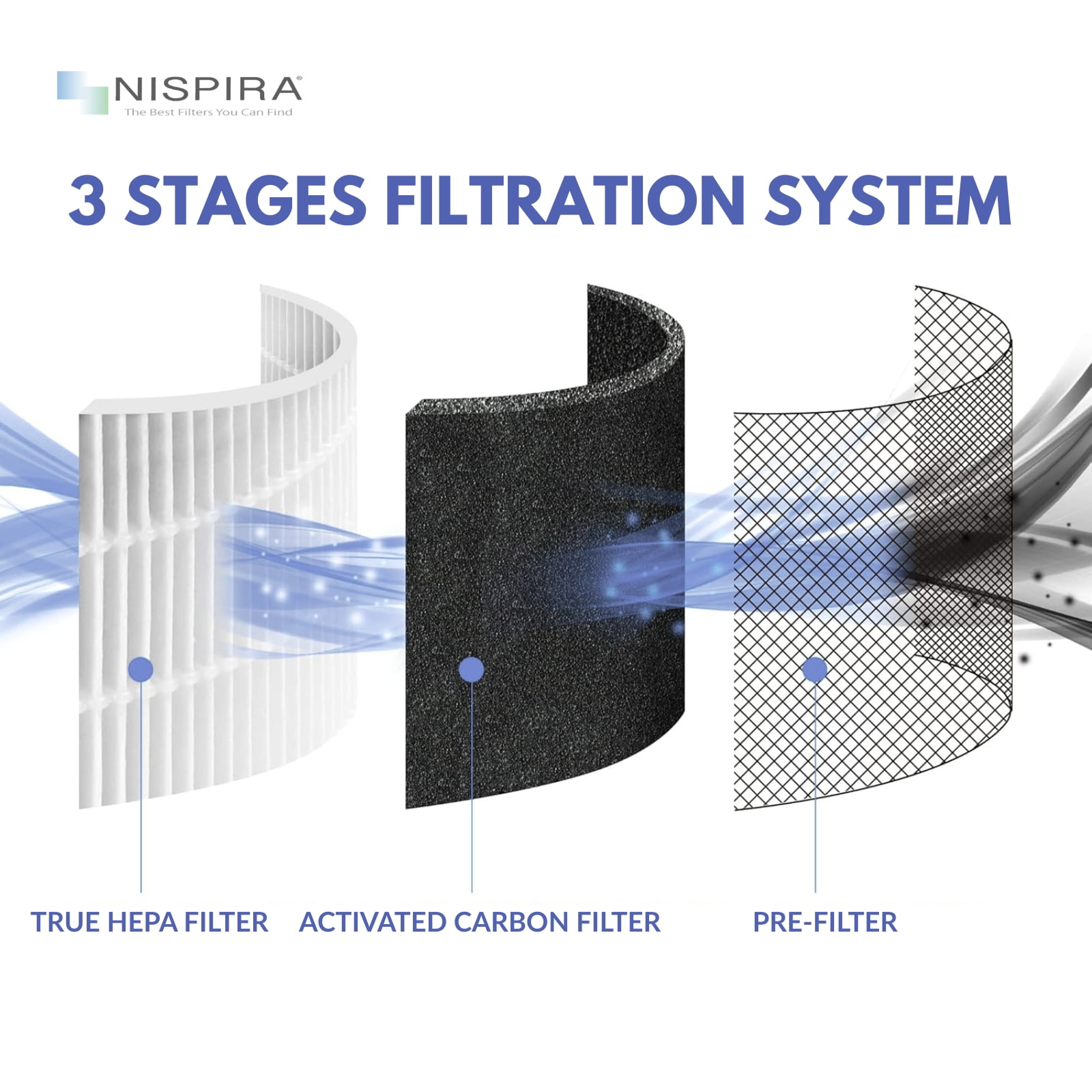 Nispira 3-in-1 premium HEPA filter replacement compatible with TaoTronics air purifier model TT-AP001HEPA filter removes up to 99.97 percent of airborne particles as small as 0.3 microns. It also helps helping remove odors caused by pets, cooking and mildewActivated carbon removes odors caused by pets, cooking and mildew4 Filters included. Filter size dimension: 5.91 x 5.91 x 4.33 inchesSuggested to replace every 6 months or depending on the usage. Quality meets or exceeds leading national brands.Taotronics® is a trademark™ or registered® trademark of its respective holder. This is not a Taotronics® OEM product. Use of it does not imply any affiliation with or endorsement by the holder. The trademark holder is not affiliated with Nispira and does not endorse this product. Any use of the name Taotronics® or model designation for this product is made solely for purposes of demonstrating compatibility.