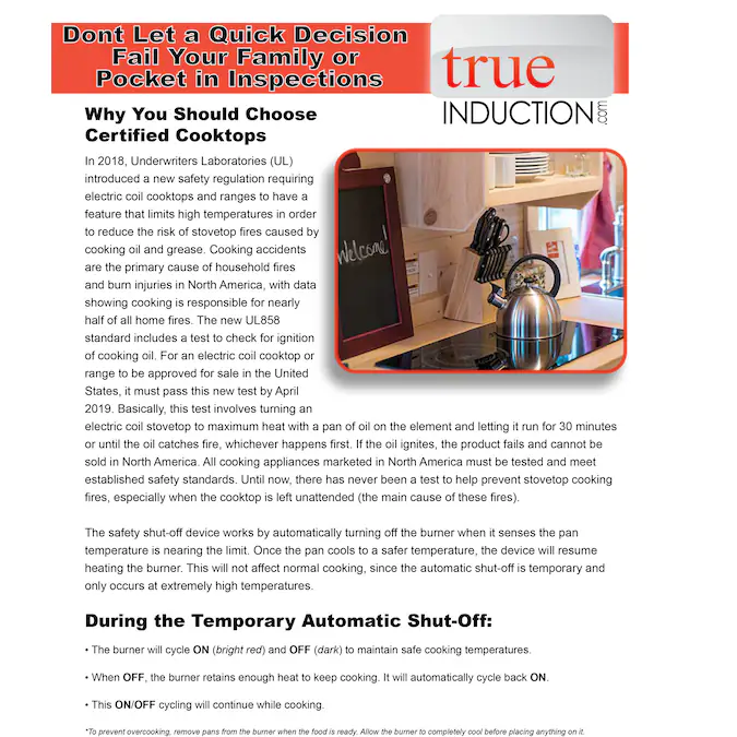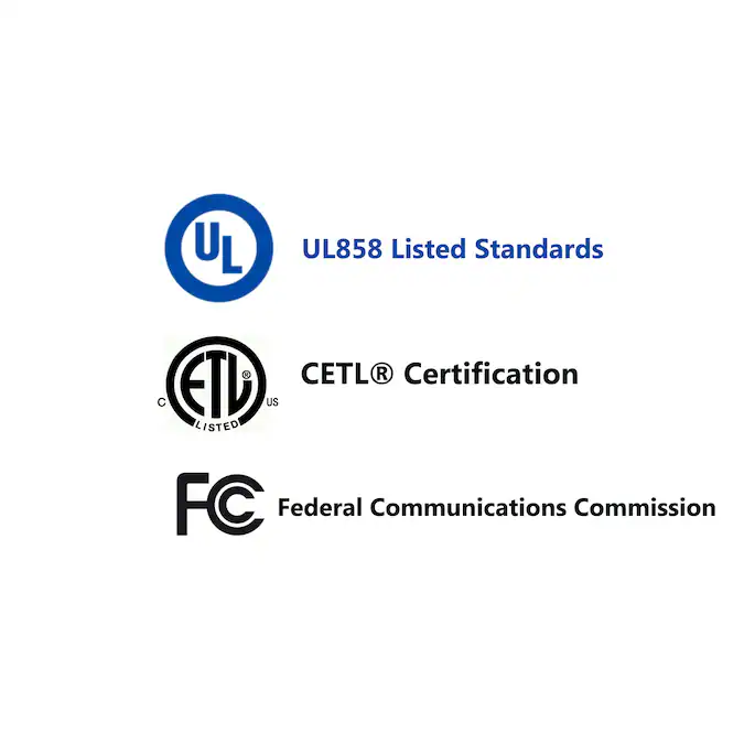 - 858UL, CETL, & FCC Certified •UL 858 limits electric range top temperatures to help prevent fires caused by overheating foods and liquids •FCC certification exists to make sure that electronic or mechanical devices only produce a safe level of radiofrequency radiation •cETL stands for Certified Education Technology Leader and represents the highest standards of excellence in the education technology industry.