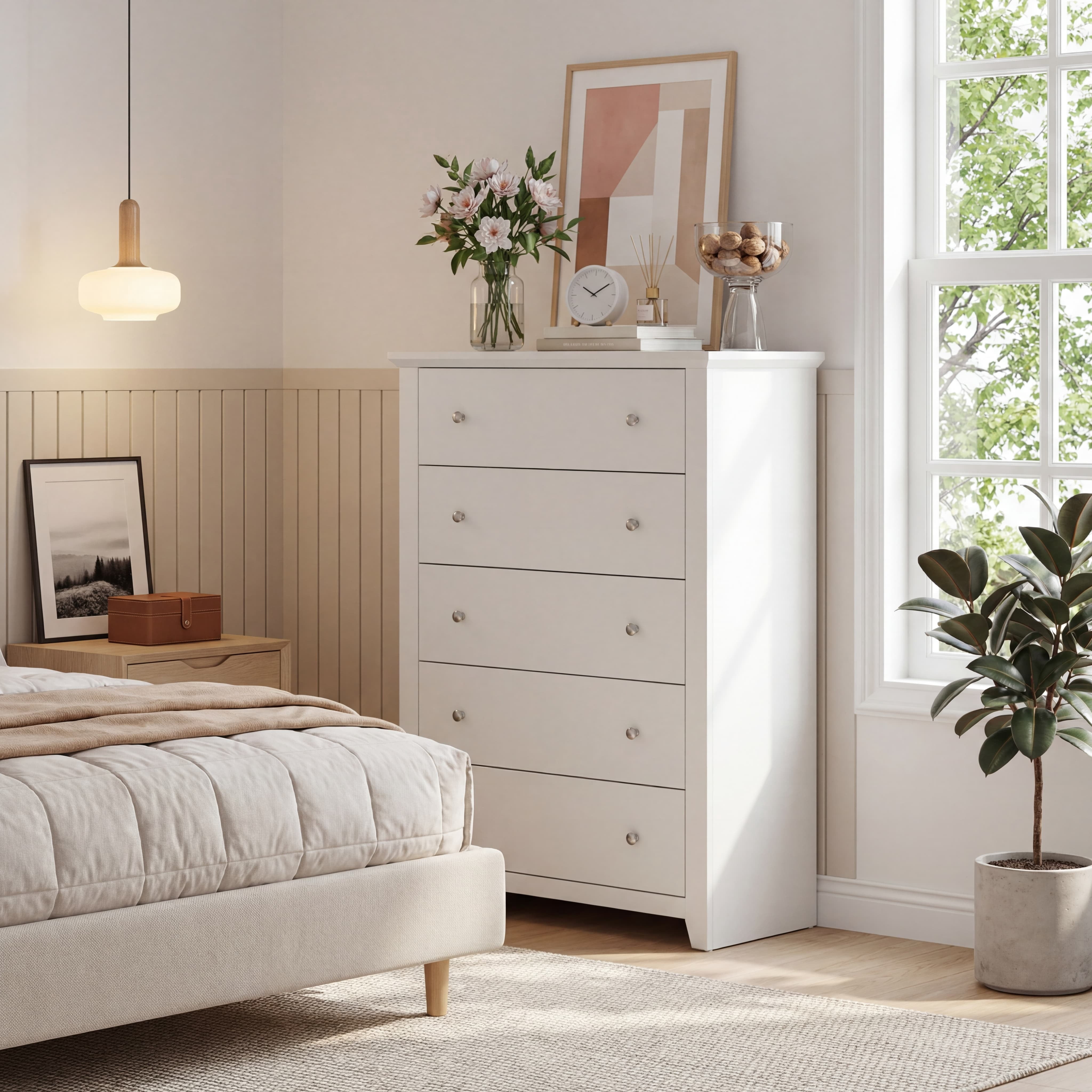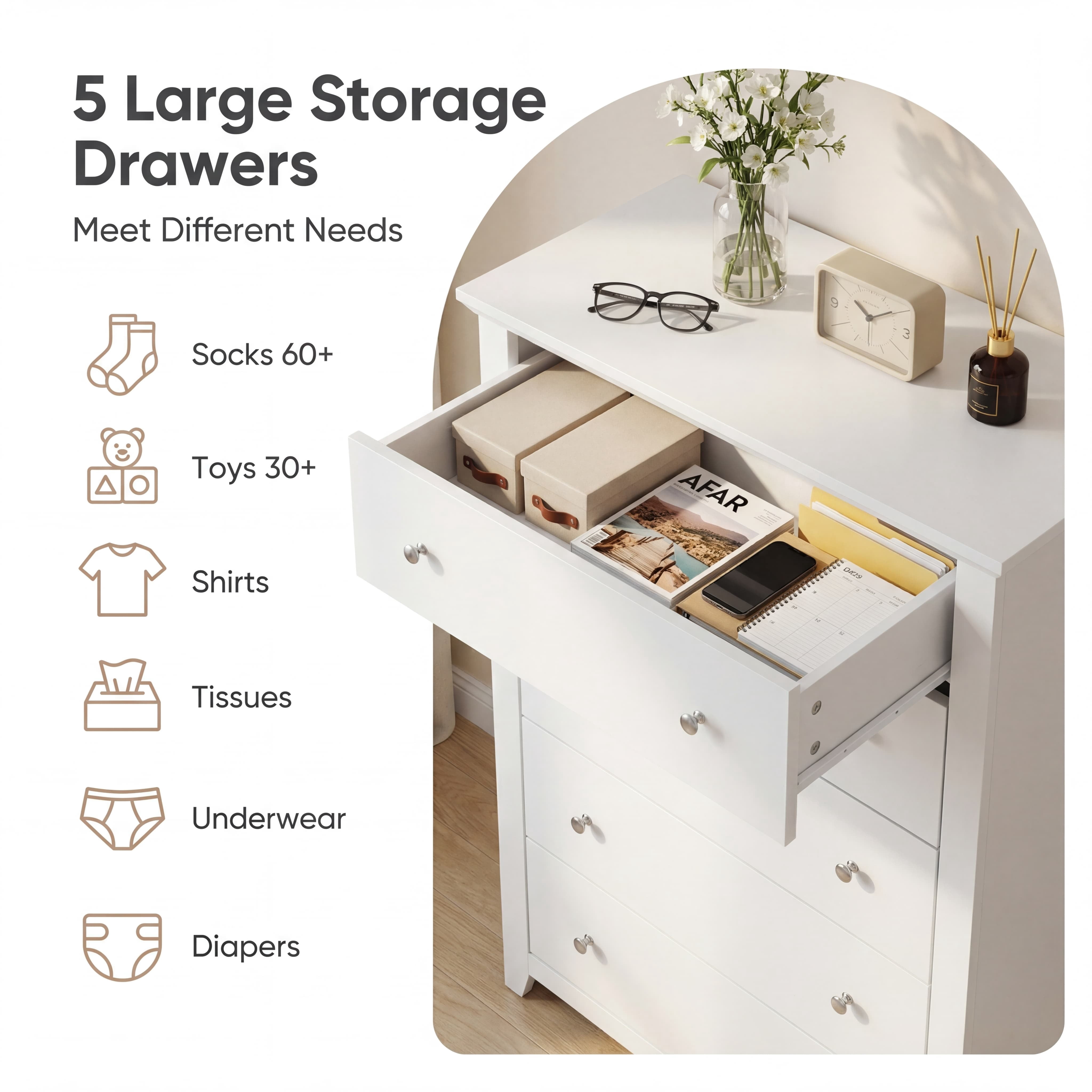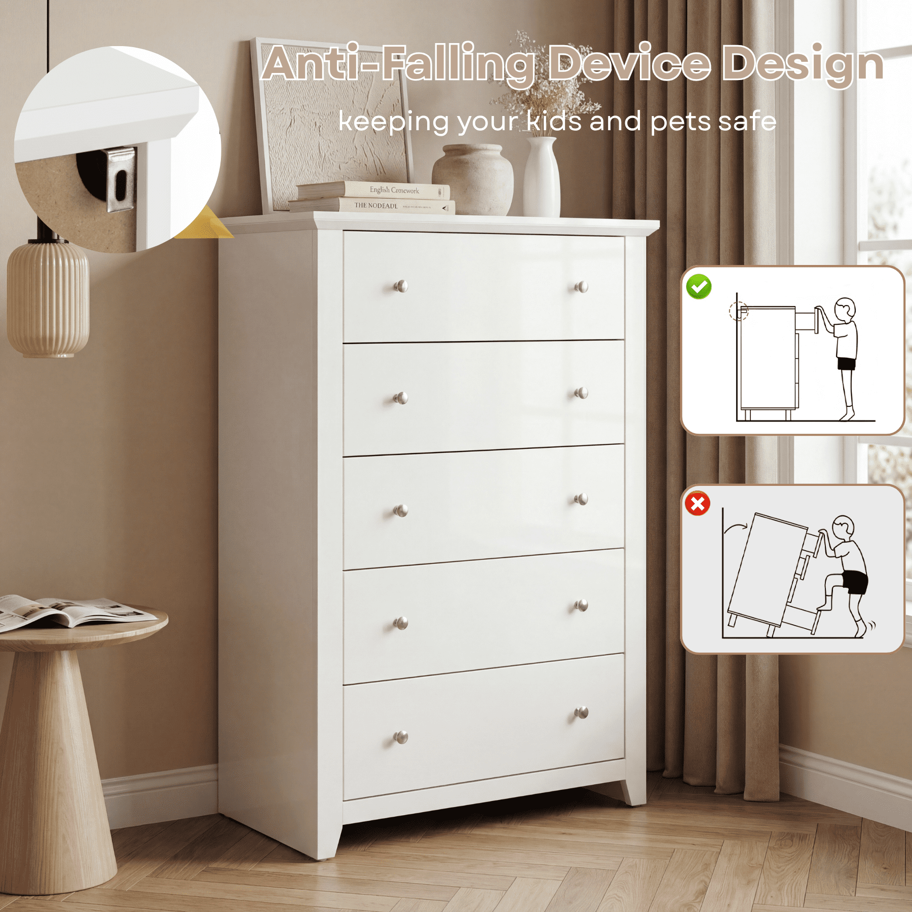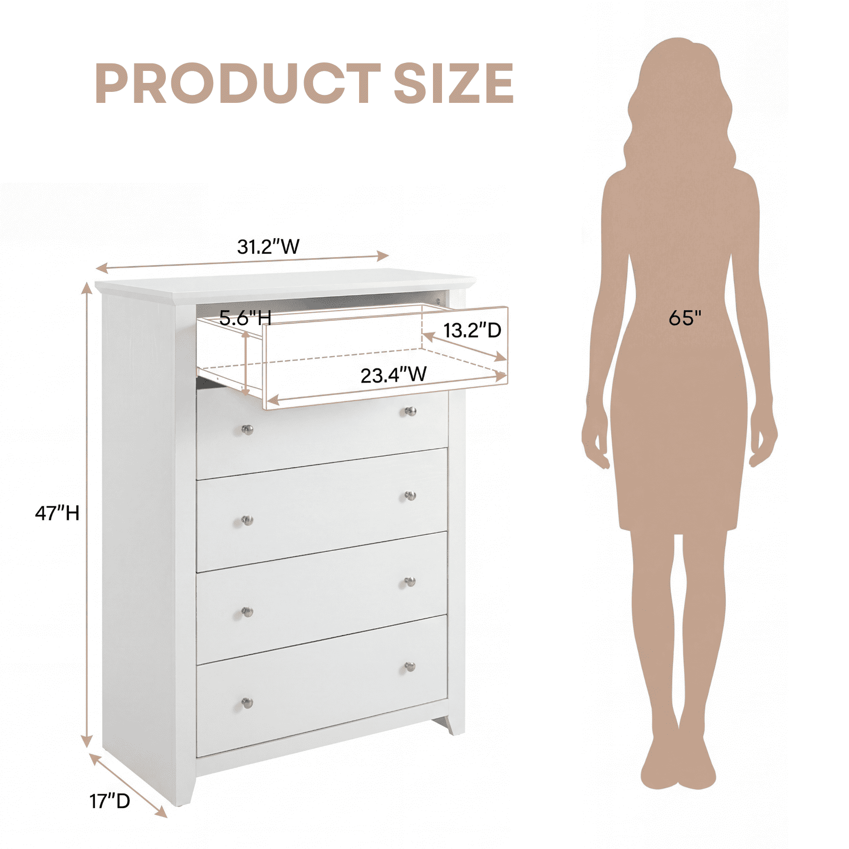 【Spacious Storage Space】With six large drawers, this white dresser provides ample space for classify clothes, cosmetics and other daily items, keeping your room tidy all the time. The spacious open tabletop serves as a great display area for decorative items and additional storage. 【Space-saving Design】The bedroom dressers are expertly crafted to provide generous storage solutions while maximizing floor space efficiency. The wooden dresser is 47″D x 17″W x 33″H, ideal for small spaces like apartments and dormitories. 【High Quality Materials for Long-lasting】This chest of drawers is made from high-quality particle board certified by CARB P2 and TSCA, featuring a sturdy MDF back panel for added strength. The sturdy wooden frame is scratch-resistant, waterproof, and easy to clean. No feet design increases the stability and load-bearing capacity of the cabinet. 【Versatile Drawer Dresser】The modern dresser features a smooth metal sliding system, allowing drawers to open and close easily and quietly. As a space-saving solution, it meets your storage needs in the bedroom, living room, closet, hallway, entryway and family room. 【Anti-Tippling Device】This 6 drawer dresser comes with anti-tipping accessories to ensure the safety of your family, so you can have peace of mind. For better stability and years of reliable use, place lighter items on top and heavier items on the bottom. 【Classic Minimalist Aesthetic】One of the easiest matching wood storage cabinet with lustrous silver knobs complement any home décor. The classic look of this modern dresser for bedroom never goes out of style. 【Effortless&Worry-Free Installation】 Click here link to watch the installation video! TrumanPick 6 Drawer Dresser White Installation Video Click here link to watch the installation manual! TrumanPick 6 Drawer Dresser White Installation Manual User-friendly instructions and labeled hardware make the dresser easy to assemble. For convenience and safety, we recommend that two people install this dresser together. Quality customer service: Should you have any questions regarding the installation, product itself or the pieces, we will help you solve it within 24 hours @TrumanPick 【Specification】 Material: E1 Grade MDF Wood, EPA-grade Particle Board, High-quality Metal Item Type: Versatile Dresser, Chest of Drawers, Bedroom Dresser, Wood Dresser Product Size: 47″L x 17″W x 33″H Drawer Dimension: 18.5″L x 13.3″W x 5.6″H Overall Product Weight: 88 lbs Package Contents: 1 x 6 White Drawer Dresser 1 x Accessory Kit 1 x Instructions Manual