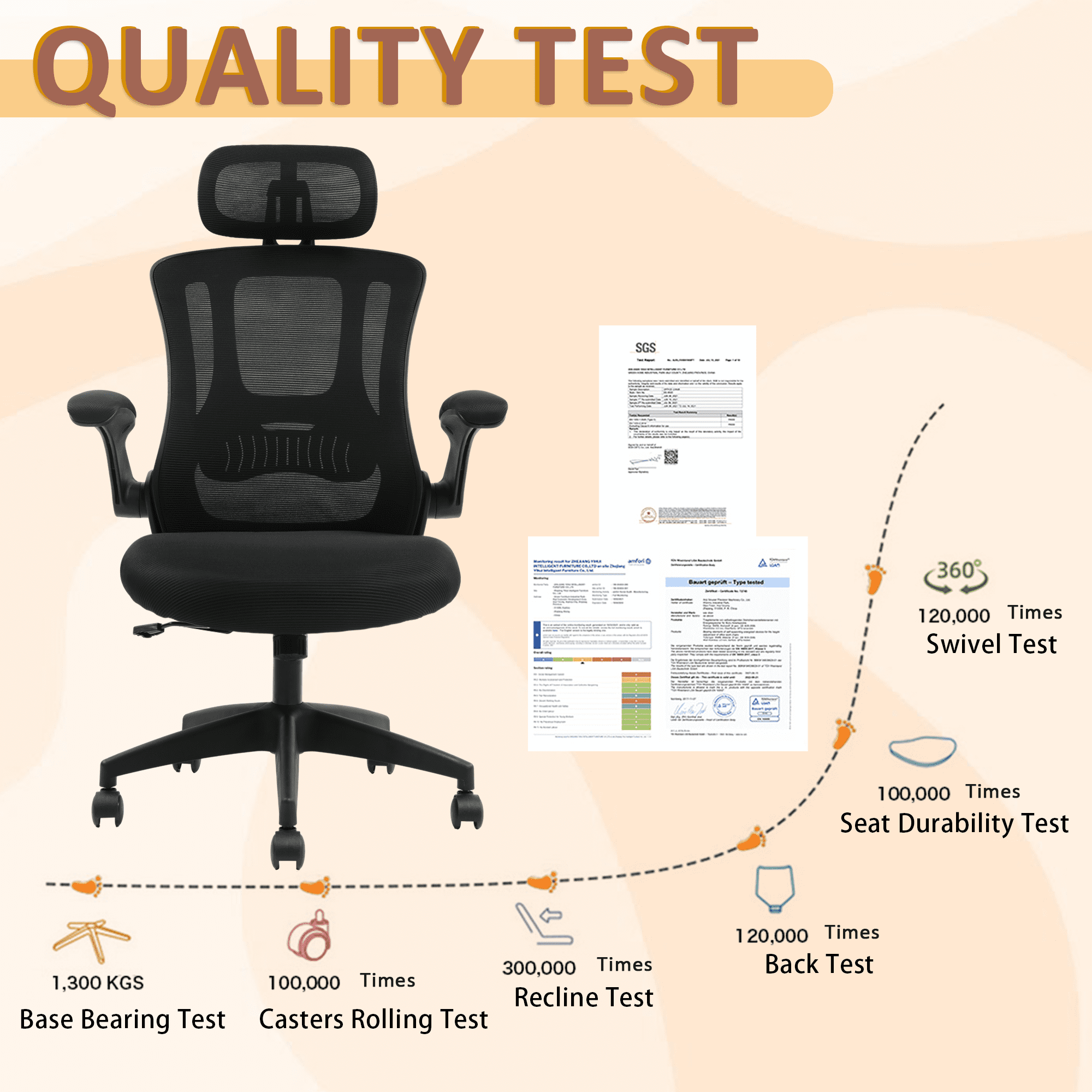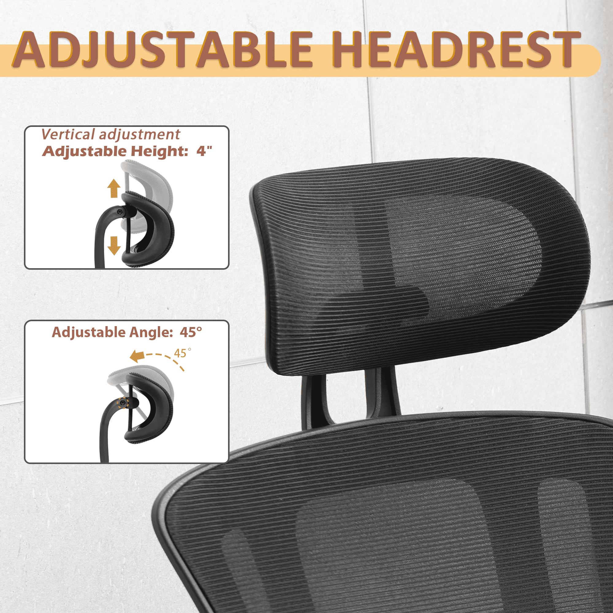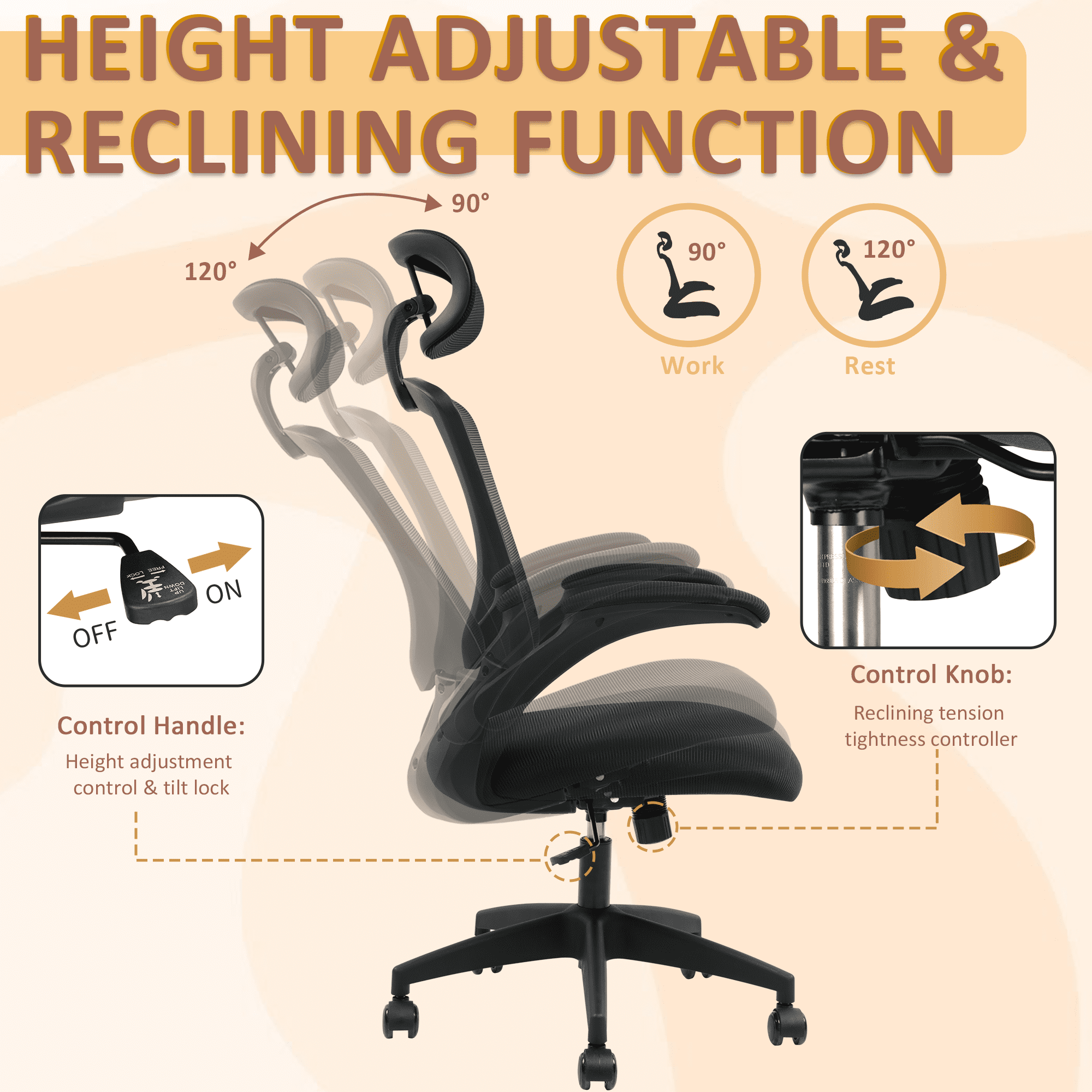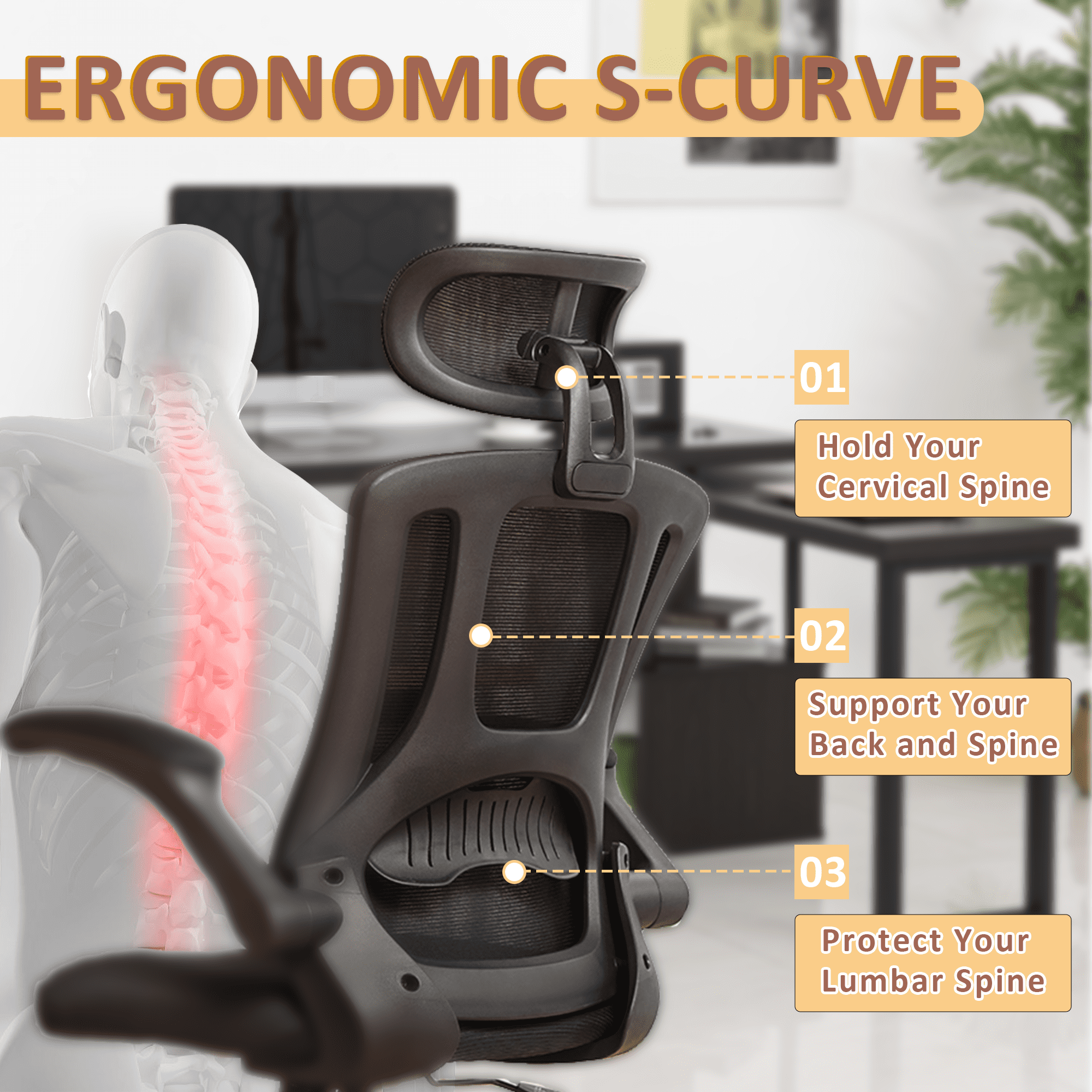 【Ergonomic office chair】The ergonomic computer chair provides 4 supporting points(head/ back/ hips/ hands) and a proper lumbar support. It’s easy to adjust seat height, headrest, backrest and flip-up arms to meet different needs, good for sitting long hours.The seat height is also adjustable, ranging from 18.1 inches to 21.3 inches, offering a suitable position for different desk heights and body types, suitable for people of about 5’5″ to 6’2″-350 lbs Load Capacity. 【Adjustable flip-uo armrest】The adjustable flip-up armrests allow you to customize your seating position, Folding the armrests up 45°, you can push the executive office chairs directly under the desk to save valuable space. 【Comfortable Breathable Mesh Seat】 He mesh back and mesh seat keep air circulation for extra comfy. High quality mesh resists abrasion and transformation, it makes the high back computer desk chairs good for sitting for 4 ~ 8 hours, perfect for a long day sitting.The recline function makes you tilt the backrest back (90~120°) or sit straight freely. 【Mute wheels】With its sturdy nylon base and smooth-rolling casters, The 360-degree swivel feature allows for easy maneuverability without any worries about tipping over or damaging your floor.while the adjustable 3D headrest provides personalized comfort and support for your neck and head, with the ability to tilt up to 45 degrees. 【Suitable for any scene】This home office desk chair also used as student & adults office chairs, computer chairs, ergonomic chairs, desk chairs, and gaming chairs. This office chair also suits office workers, home office workers. Wherever you are, This computer chair is a perfect match for.