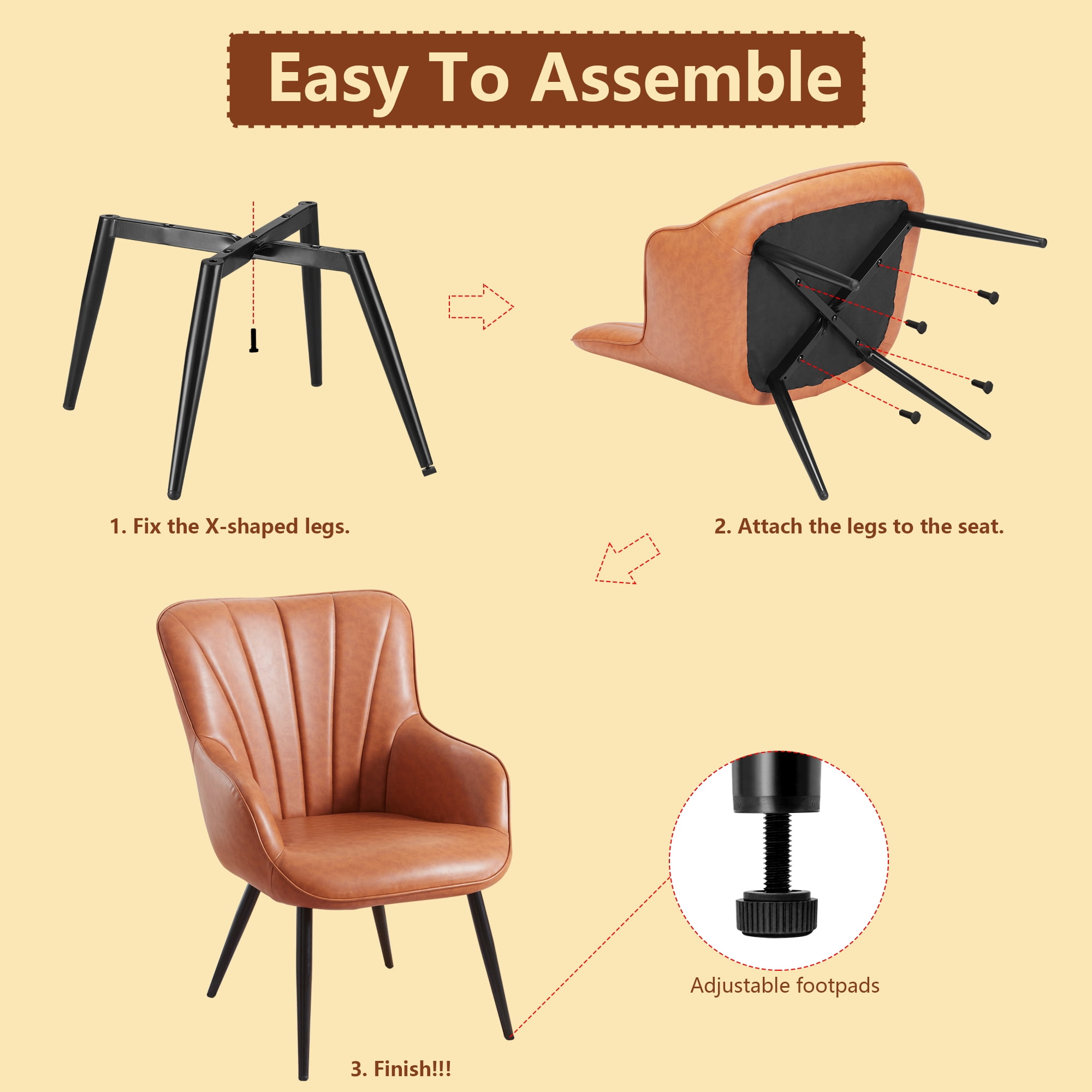 【DURABILITY ACCENT CHAIR】 -The Comfy Armchair is enveloped in premium faux leather, ensuring both durability and effortless cleaning. Supported by a sturdy wooden frame and powder-coated metal legs, it can withstand up to 330 lbs of weight. With a spacious 18-inch deep and wide seat, it accommodates most individuals comfortably. 【UTMOST COMFORT】- Crafted for ultimate relaxation and comfort, this wingback accent chair offers a spacious sitting area for a truly comfortable experience. Its wider and taller backrest ensures you stay refreshed and revitalized, whether you’re indulging in a quick nap or engaging in lengthy conversations . 【MULTIPLE APPLICATIONS】- Enhance any space in your home with this stylishly designed arm chair, elevating the ambiance of your living room, bedroom, dining room, kitchen, office, or guest room. Create a cozy corner for relaxation and entertainment, where you can curl up with a good book or unwind in front of the TV on our irresistibly comfortable accent chair. 【ELECTRIC POWER RECLINER】- With skin-friendly upholstery, rounded arms, and an ergonomically designed backrest adorned with elegant button tufting, this accent chair exudes a captivating medieval charm. Its versatile size makes it ideal for providing extra seating for guests, seamlessly complementing larger sofas. 【EASY ASSEMBLY】-Assembly is a breeze with partial assembly required, and following the manual instructions ensures you can complete it in just 15 minutes. With minimal maintenance required, cleaning is a cinch – simply vacuum the chair weekly to remove dust or lightly brush it for a quick refresh. Seat Length: 18 inch Size: 24.5″D x 24″W x 33″H Product Type: Set of 2 Accent Barrel Chair Modern Arm Chair for Adults Color: Brown Chair Design: Wingback Chair Swivel: No Arms Included: Yes Leg Color / Finish: Black Upholstered: Yes Pattern: Solid Color Arm Type: Round Arms Faux Leather Type: PU Upholstery Material: Faux Leather Frame Material: Manufactured Wood Fill Material: Foam Back Fill Material: Foam Leg Material: Metal Weight Capacity: 330 lb. Accent Pillow Included: No Water Resistant: Yes Durability: UV Resistant; Scratch Resistant; Waterproof Cleaning Code: Spot clean with dry, solvent-based cleaner Product Care: clean it with a damp cloth