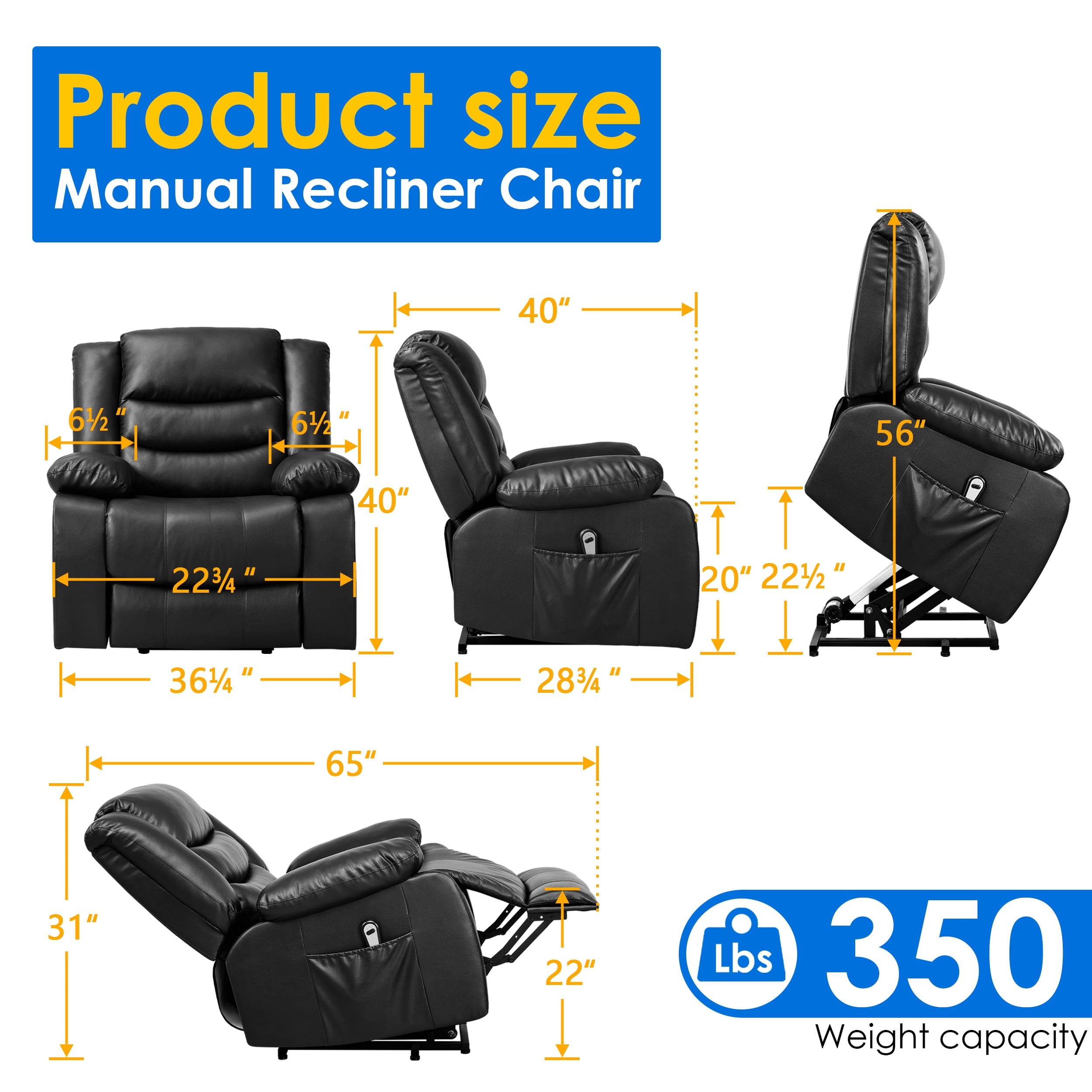 The TrumanPick Power Lift Electric Recliner Chair for the elderly – a perfect blend of comfort, functionality, and style. Designed with an oversized frame, this recliner prioritizes spaciousness and support, ensuring a truly indulgent experience for users. The generously widened seat and expansive backrest are meticulously crafted to accommodate individuals with a maximum weight capacity of 350 pounds, which fits most Big Man.Equipped with cutting-edge power lift technology, this chair offers a seamless transition between sitting and standing, making it an ideal choice for those with mobility challenges. Feature: 【POWERFUL LIFT ASSISTANCE】: Power lift function could push the entire recliner chair up from its base to help the senior to stand up easily without adding stress to back or knees, Just press the two buttons on the remote control to smoothly adjust the lifting or reclining position(max 150°), The s turdy alloy steel frame that has passed the SGS test enables a load-bearing capacity of up to 350lb. 【STURDY AND COMFORTABLE UPHOLSTERY】: Skin-friendly and breathable fabric is adopted to improve the sense of touch. This lounge chair indoor is filled with enough sponge to offer the user adequate back & lumbar support. Well crafted wooden structure inside and durable metal frame at the bottom ensures the user’s safety and also prolongs the life span. 【ERGONOMIC DESIGN】: This electric recliner chair features generously padded backrest, seat pads, and armrests for enhanced comfort. The backrest design provides separate support for your head and shoulder areas, ensuring optimal comfort and pain-free experience, even during extended periods of sitting. 【FRIENDLY MATERIALS】: The Power Lift Chairs for the Elderly are thoughtfully crafted with high-quality materials to prioritize comfort and health. The premium PU leather and sturdy construction ensure a comfortable and stable experience. We are dedicated to safeguarding the well-being of the elderly individuals who choose our power lift chairs. 【OVERSIZED RECLINER】: This oversized single reclining chair dimensions is 37″ W × 39″ D × 40″ H, seat dimensions – 23″ W x 22″ D x 19.7″ H. Dual side pockets for storing remote control or magazines, and front dual pocket for storing your phone or other small items which are all good design for your daily use. Description: