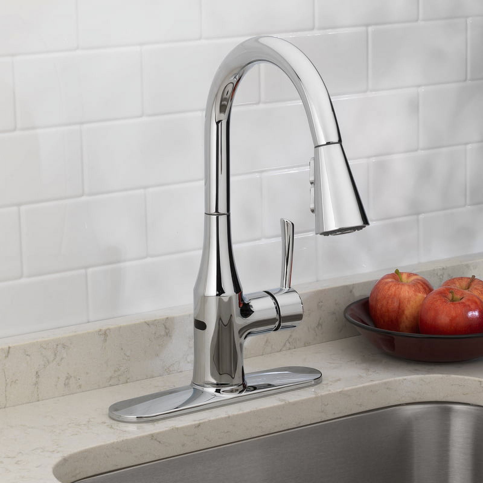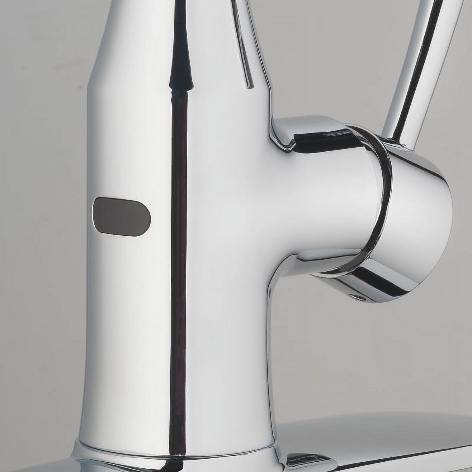Brand Name: OakBrook Sub Brand: Tucana Style: Motion Sensor Number of Faucet Handles: One Handle Finish: Chrome Product Type: Pulldown Kitchen Faucet Side Sprayer Included: No On Center Measurement: 8 Spout Type: High Arc Number of Installation Holes Required: 1or 3 Supply Lines Included: Yes Spout Reach: 8 in. Adjustable Flow Rate: No Handle Type: Lever Packaging Type: Boxed Flow Rate: 1.8 gpm Valve Material: Ceramic Built In Water Filter: No Soap Dispenser Included: No ADA Compliant: Yes Motion sensor allows for hands-free on/off operation Department – PLUMBING/HEATING mdseClass – FAUCETS prodGroup – KITCHEN FAUCETS