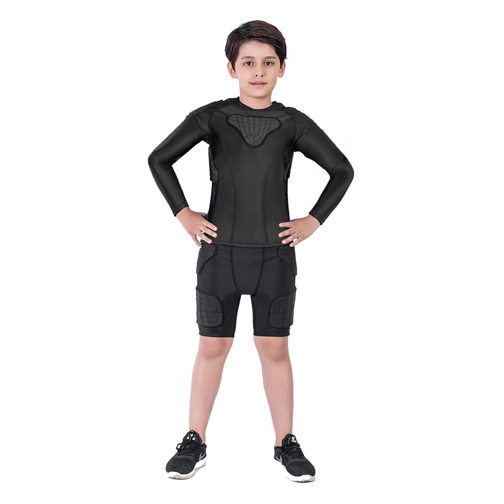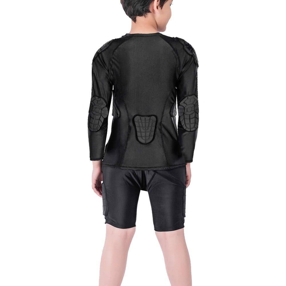This youth long sleeve compression shirt is armored with industrial-leading padding technology that absorbs up to 95% of impact. Total 8pcs thick pads covering on your shoulders, elbow, lower back, chest and ribs. Can provide stable protection for your kids. Great for football padded shirt, paintball long-sleeve shirt, chest armor, baseball catcher chest protector! TUOY YOUTH PADDED COMPRESSION LONGSLEEVES SHIRT For Youth / Kids / Boys – Safer, Stronger, Faster 90% Polyester + 10% Spandex Strong Padding: 10mm professional foam padding integrated with breathable nylon fabric. Padding Area: Chest, Rib, Elbow, Shoulder & Lower Back. Shirt Size(Chest): S= 25-26.5 inch, M= 26.5-28.5 inch, L= 28.5-30 inch, XL= 30-32 inch. Moisture wicking Machine wash and dry Elastic and breathable Unique Padding System This padded shirt provides the ultimate combination of protection and flexibility, High-compression, Polyester/Spandex, Quick Dry, moisture management fabric. Wrap well around padding offers great protection to main area, allows full range of motion and comfort. Sternum/ Heart Protection Foam Padding coverage in key sternum area 16*11 cm chest pad. Rib Protector Great for rib protector shirt, padded football shirt & paintball shirt. 16*11 cm rib pad on both sides. Shoulder & Elbow Pads Improved Padding Tech to protect shoulder and elbow with a snug fit.10*14 cm pads. Back / Spine Protector Protect main lower back spine.11*8 cm pad.