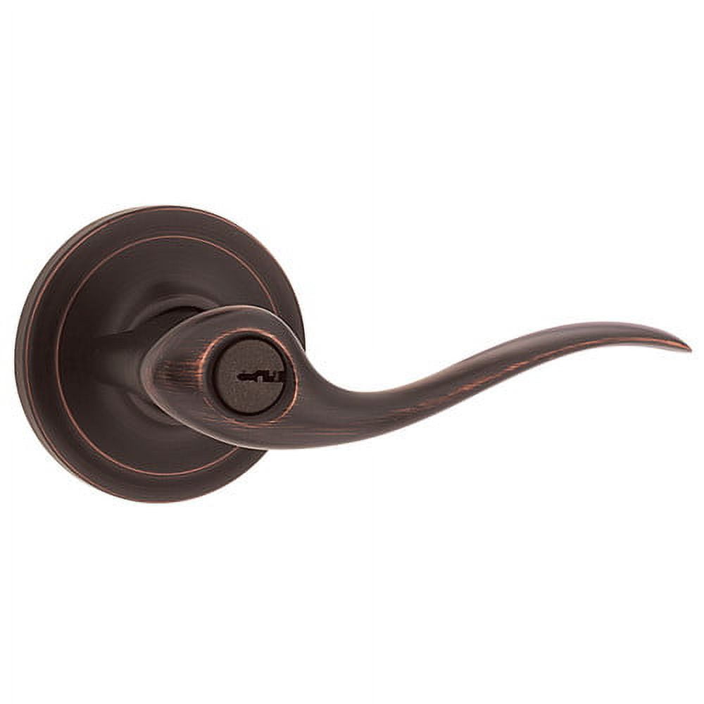 Kwikset Satin Nickel SmartKey Tustin Entry Lever: Fashionable and stylish entry lever Wave silhouette design Tustin collection Concealed screws Easy installation Both levers locked or unlocked by key outside or turnbutton inside Signature Series Lifetime mechanical, 10 year finish and 1 year electronic warranty SmartKey cylinder features include Bumpguard protection, drill resistance, rekeyable lock, locking bar, racks and pins are made out of stainless steel for increased strength and durability Meets 3 hour fire rating for all UL lever functions