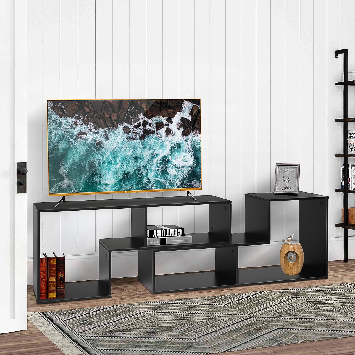 TV Stand for 40” – 80” TVs DIY Convertible Storage Bookcase Shelf Modern Entertainment Center Black for TVs Media Console TV Cabinet for Video Gaming Movies