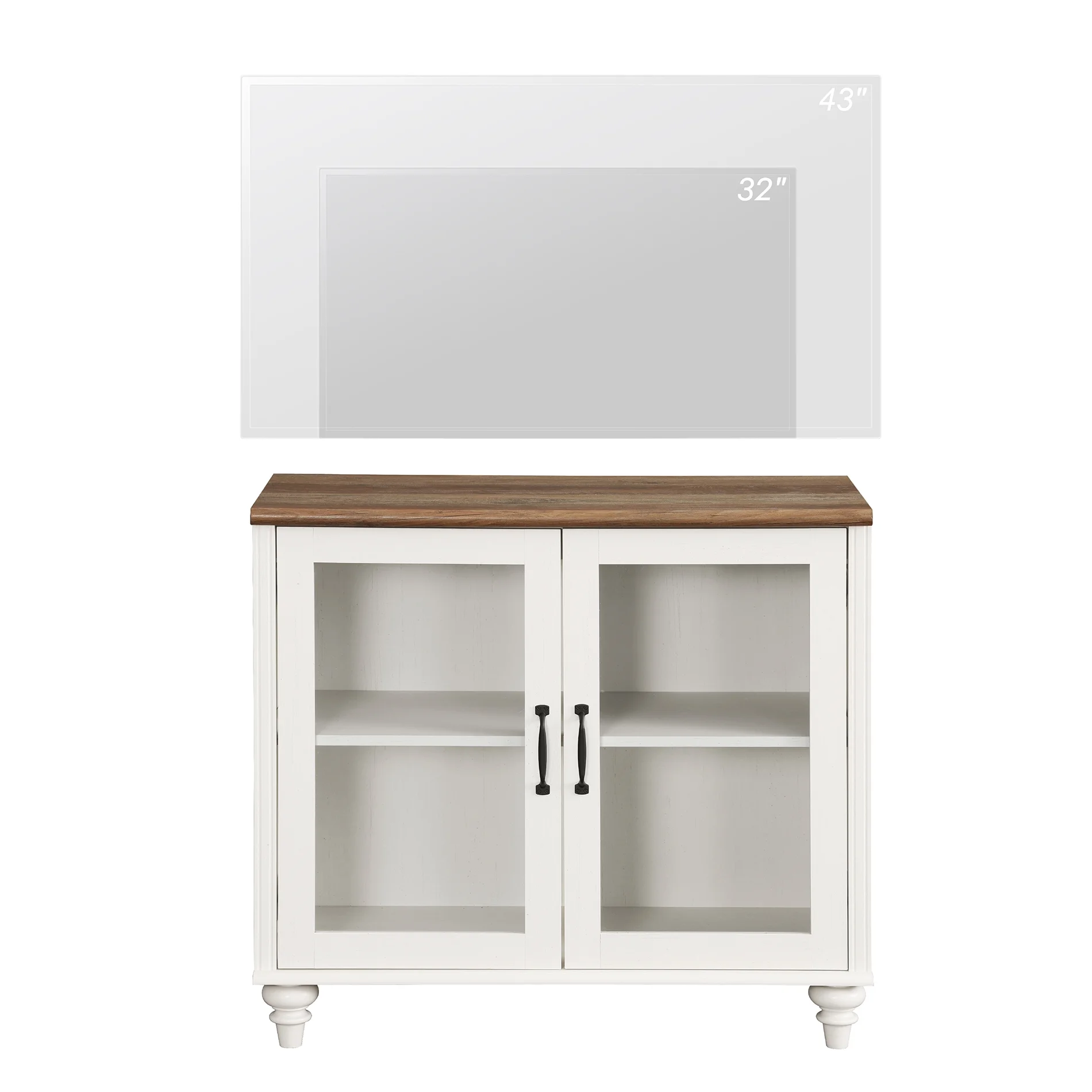 TV Stand for 43 Inch TV, Wood Entertainment Center with Glass Door and 2 Storage for Living Room,White/Oak
