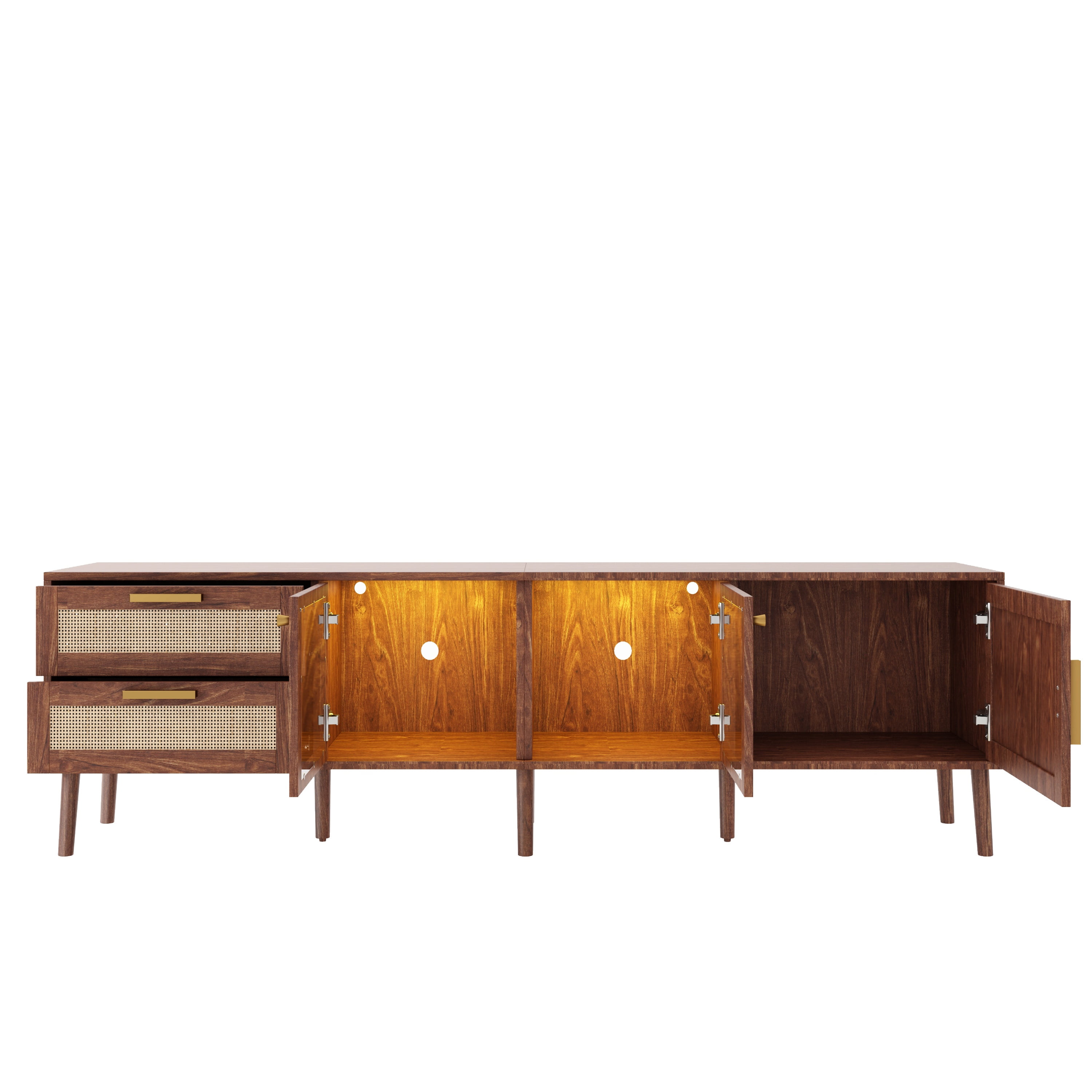 LED TV Stand for TVs up to 80” with LED Lights, 70″ Large Entertainment Center with 2 Drawers and 3 Cabinets, Media Console Table for Living Room with Cable Management, Brown