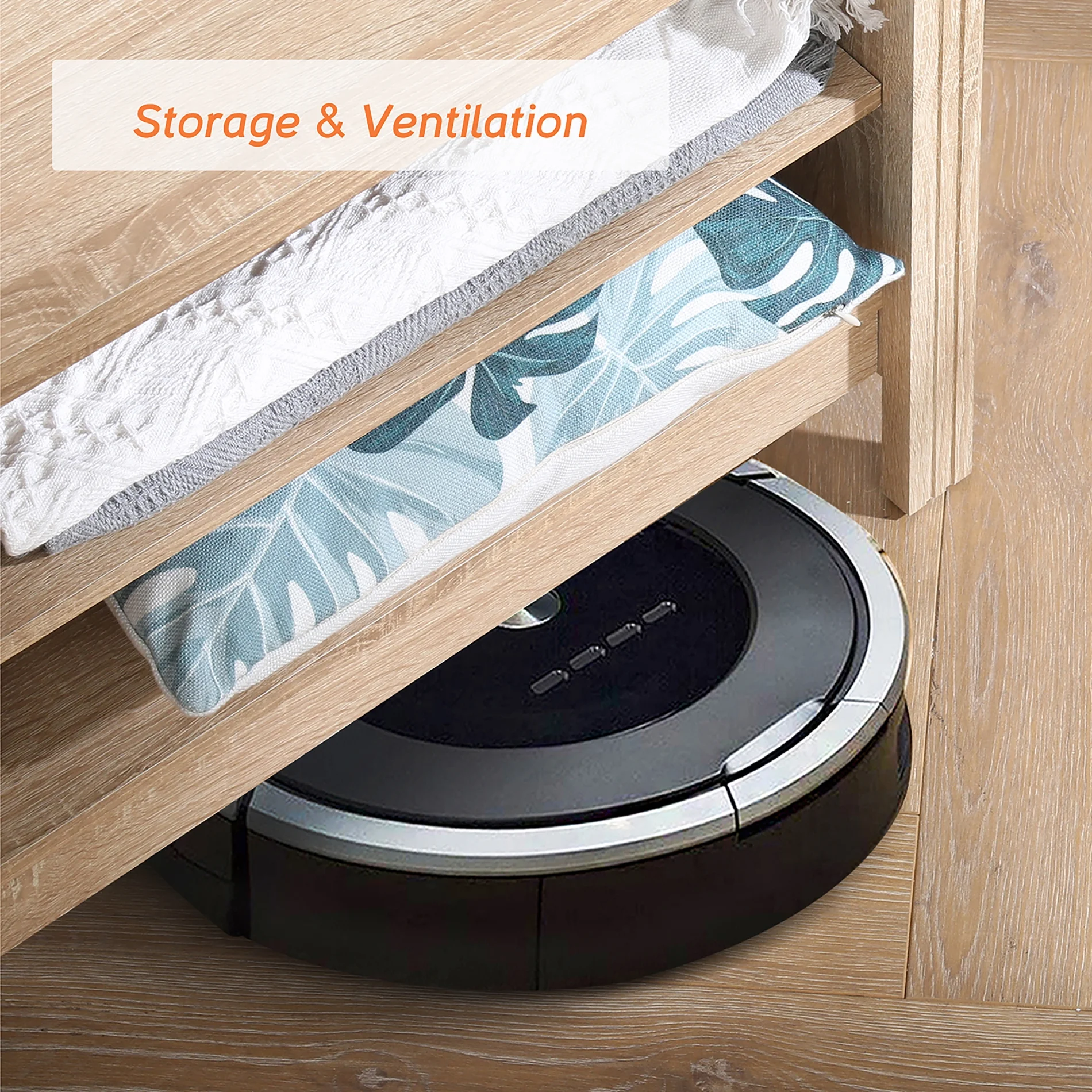 [Multifunctional Storage] This TV stand is perfect for TVs up to 75+ inches TV.6 open shelves with big capacity allow you to storage the books, magazines, CDs, remote controls, and any other media or gaming devices. [Accessible for Robot Vacuum Cleaner] The height off the ground is adequate, and your robot vacuum cleaner can pass freely. No more headaches from dust under the cabinet. [Classic Appearance] The oak wood grain and simple lines on this wampat TV cabinet make this TV stand look classic and elegant. It can be not only used as TV stand, also perfect for sofa table, hallway Table, entry table, entertainment center, media stand, storage console table, etc [Stable Structure& Easy To Clean] Constructed of high-quality material, our entertainment stand is more sturdy and durable for more years to use. Rich black wood grain finish is easy to clean. And clean surface with a soft cloth makes your life more simple and convenience.